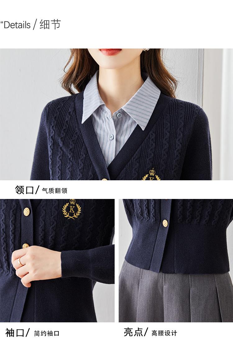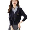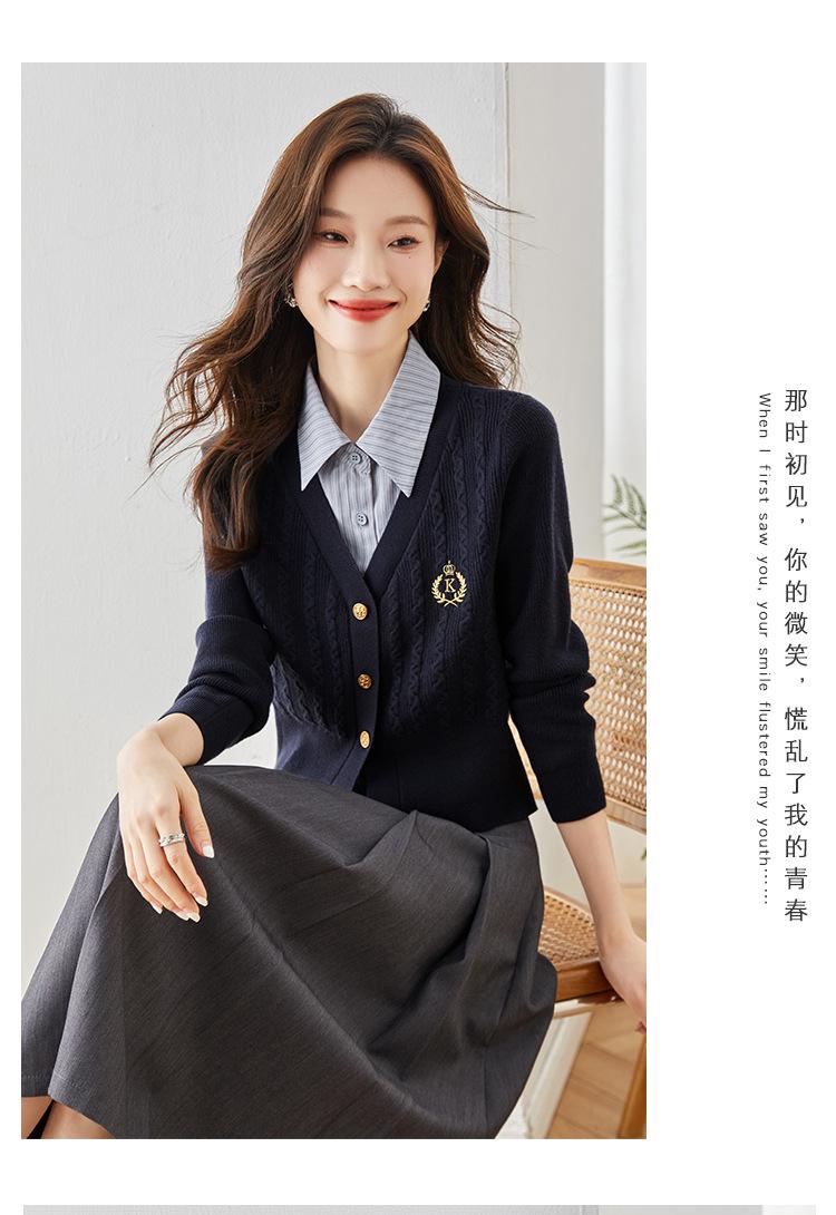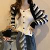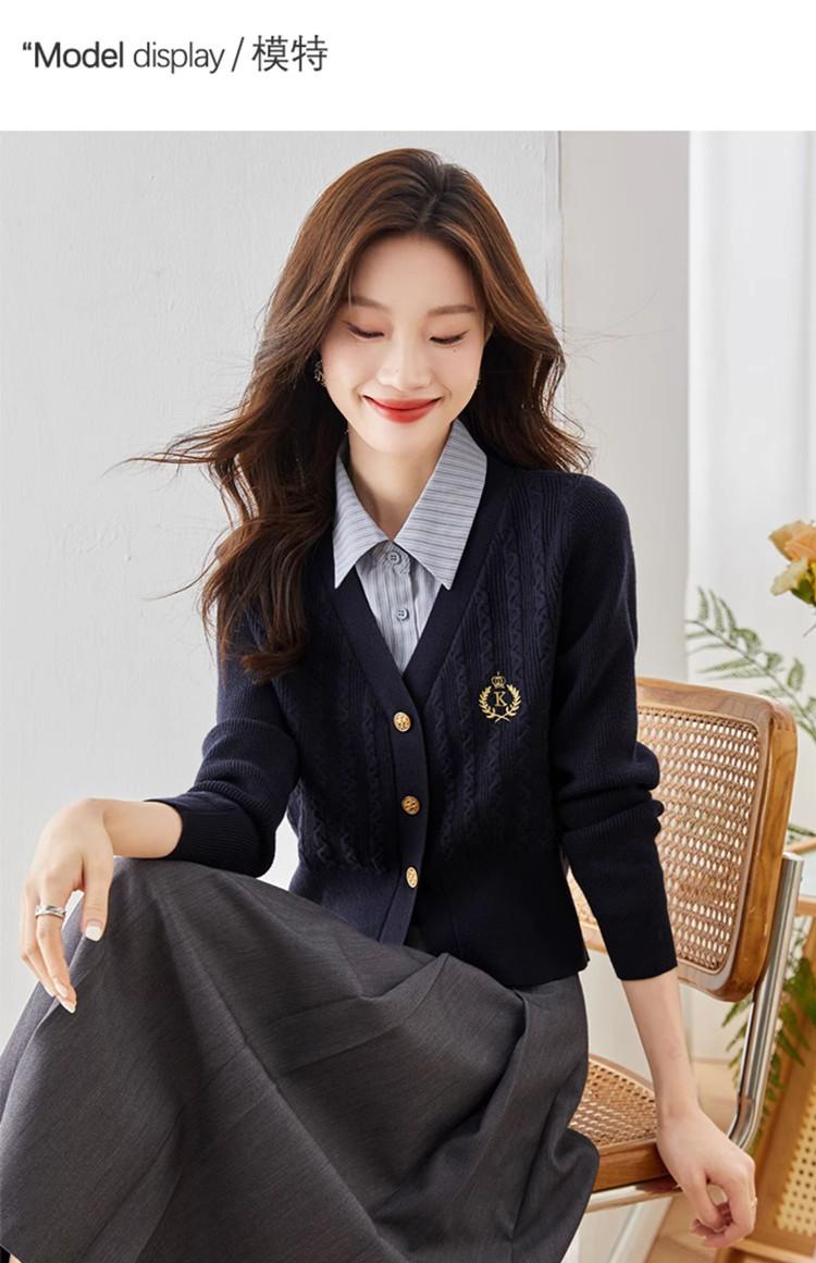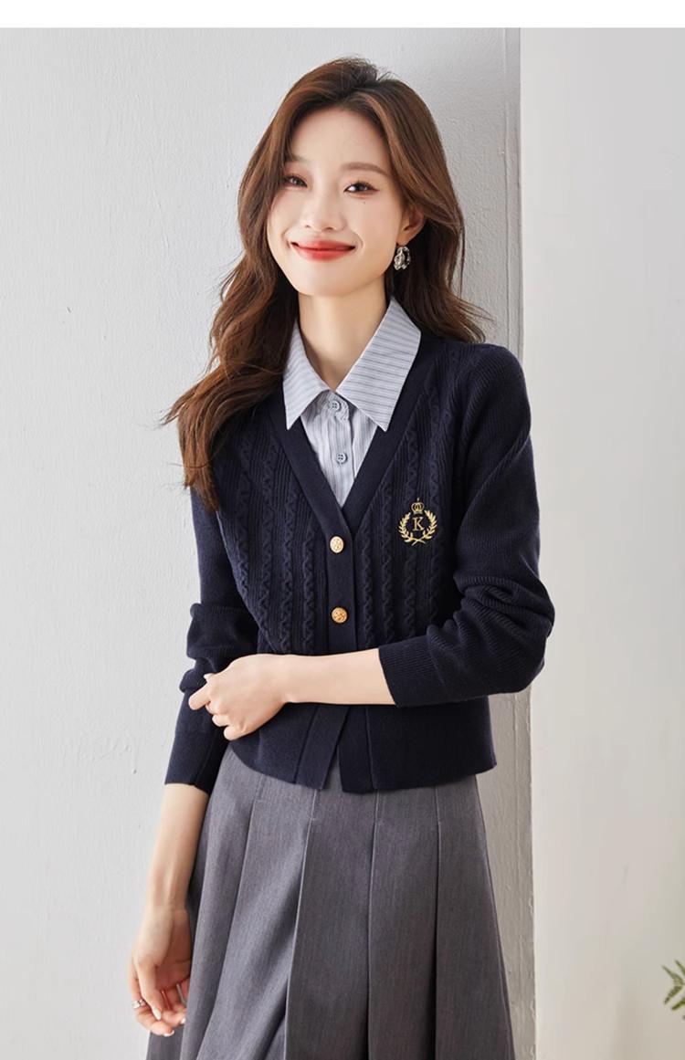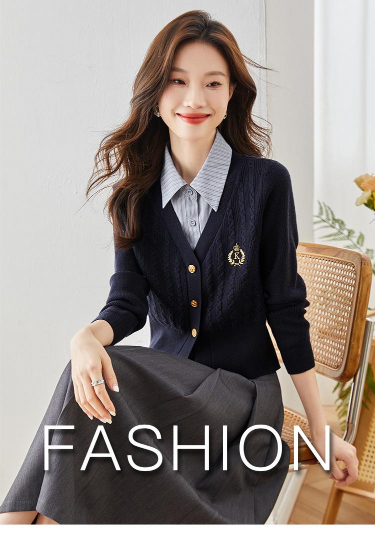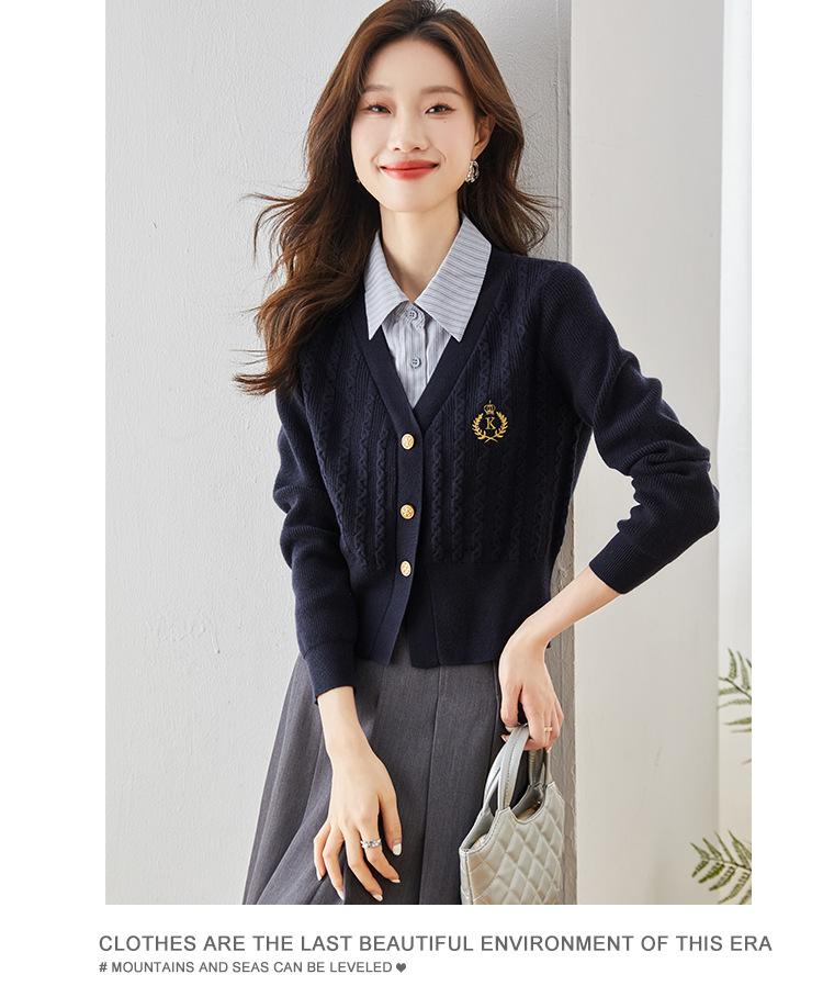 Tejido de punto para mujer, costuras a rayas, top falso de dos piezas, nuevo otoño 2024, manga larga, estilo universitario, suéter con cuello POLO