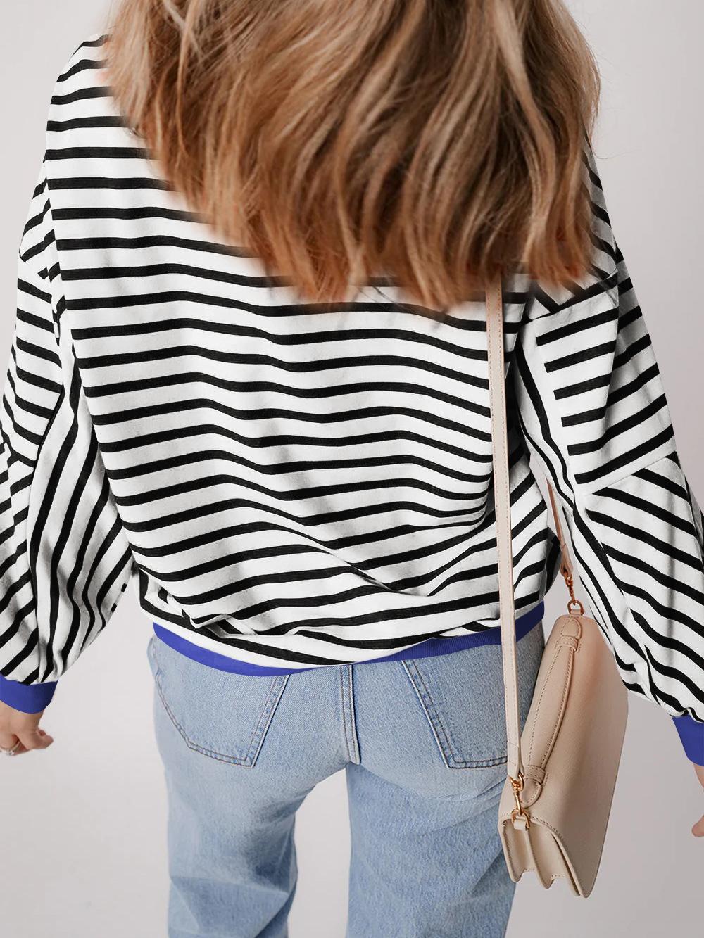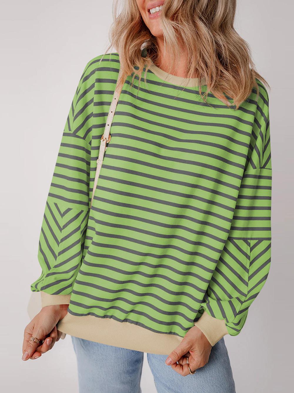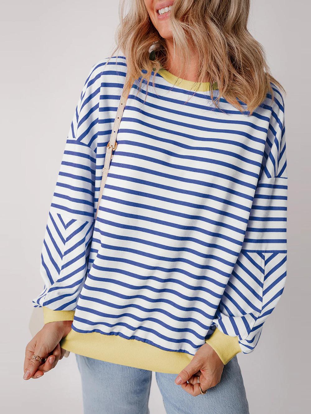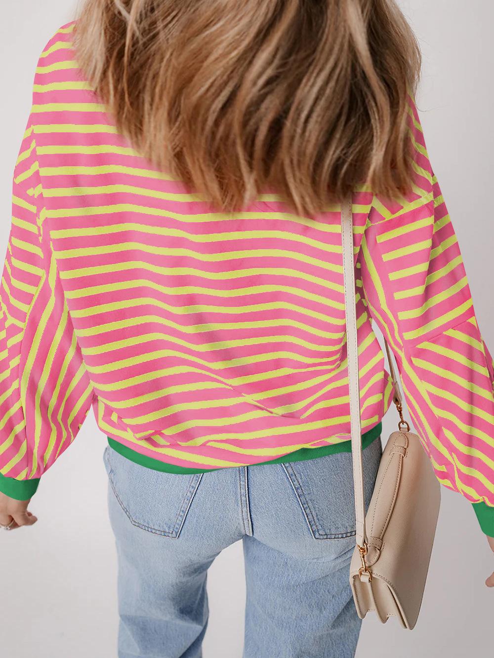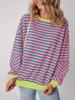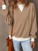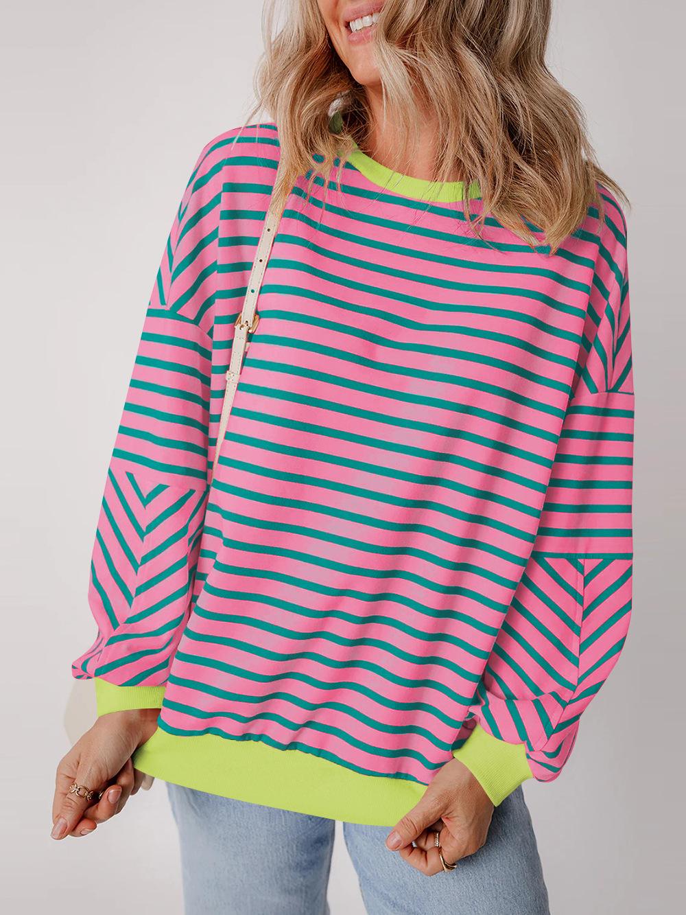 Sudadera de Punto de Cuello Redondo con Rayas en Contraste Transfronteriza Europea y Americana para Primavera y Otoño Diseño Holgado Estilo Casual Top Versátil de Manga Larga