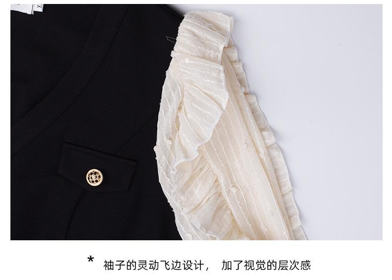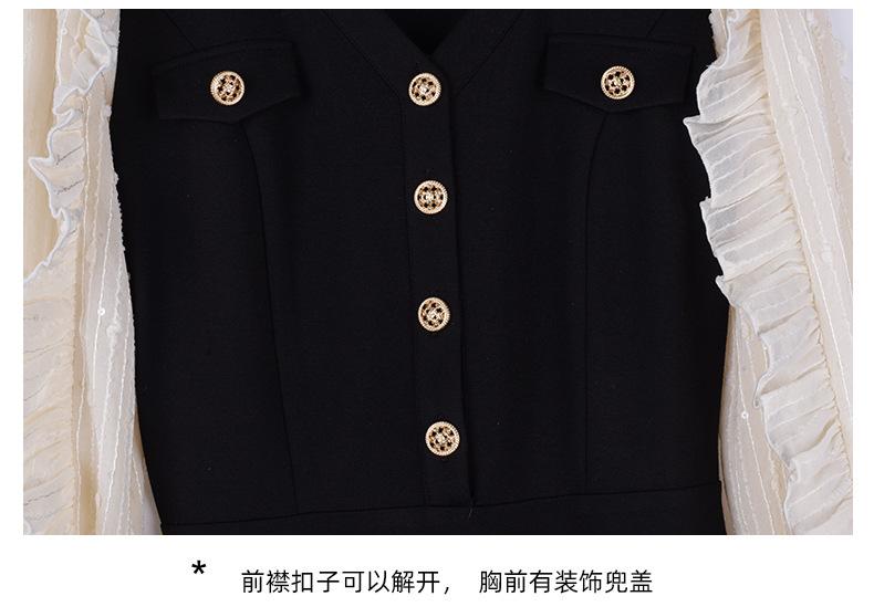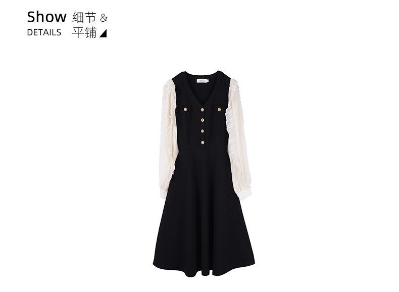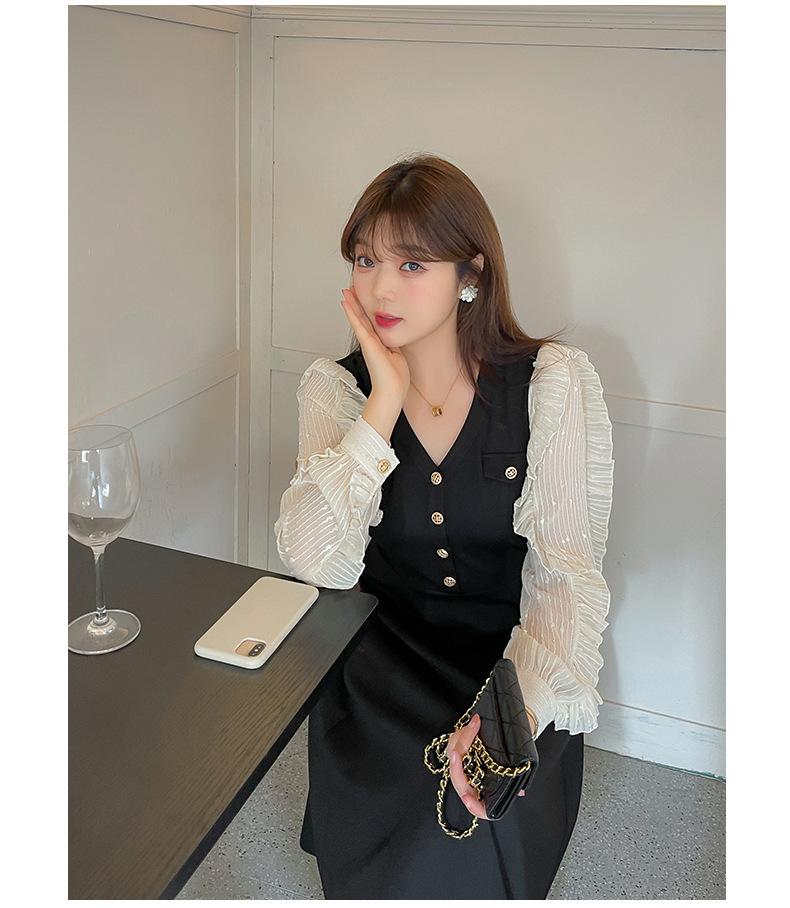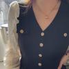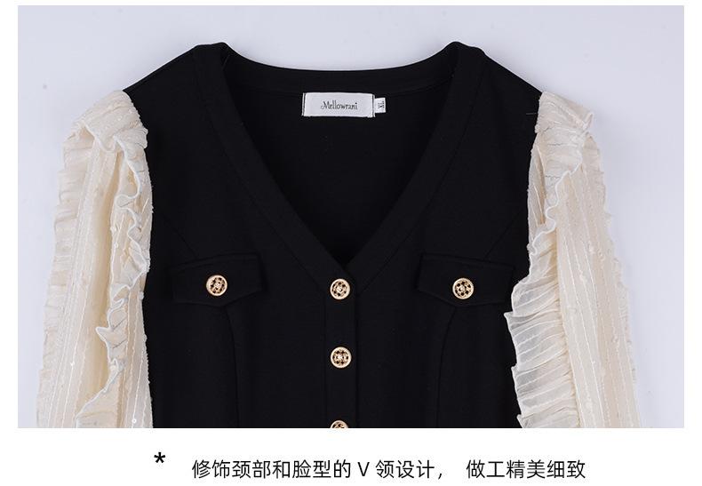El diseño de cuello en V modifica la forma del cuello y la cara, los botones delanteros se pueden desabrochar y hay una solapa de bolsillo decorativa en el pecho.