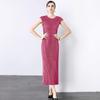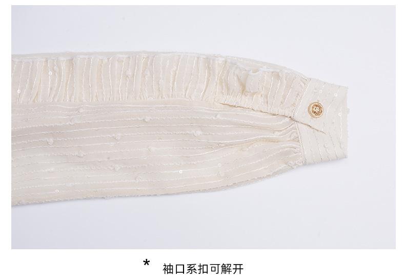Las mangas están hechas de tela de chifón bordado color albaricoque, que es suave y texturizada.