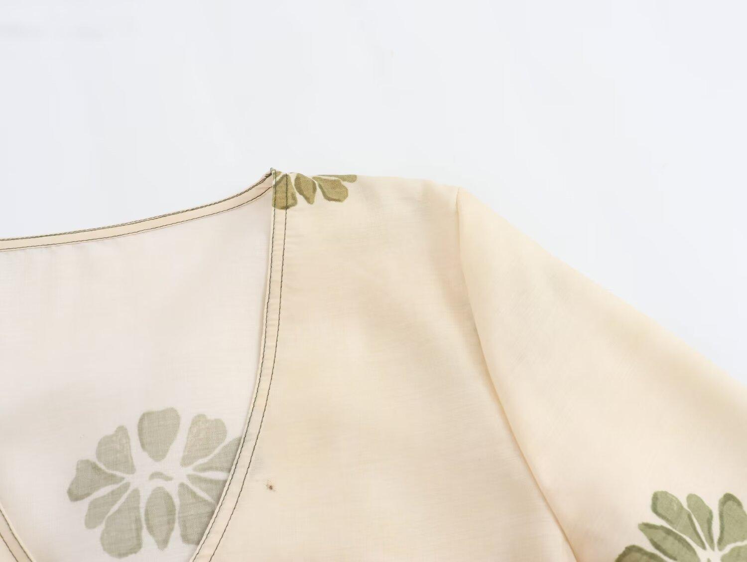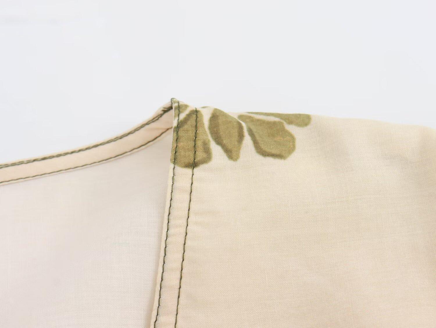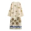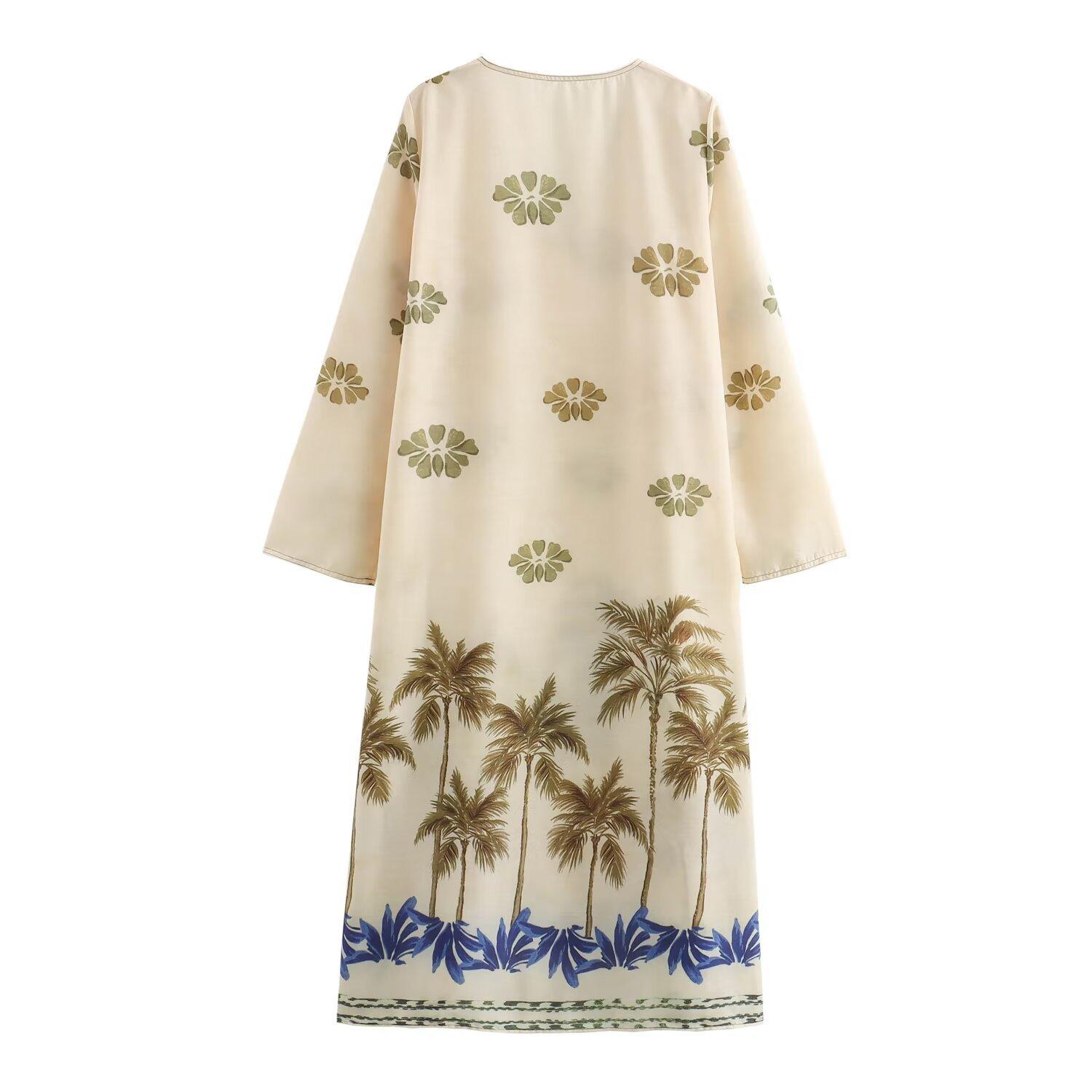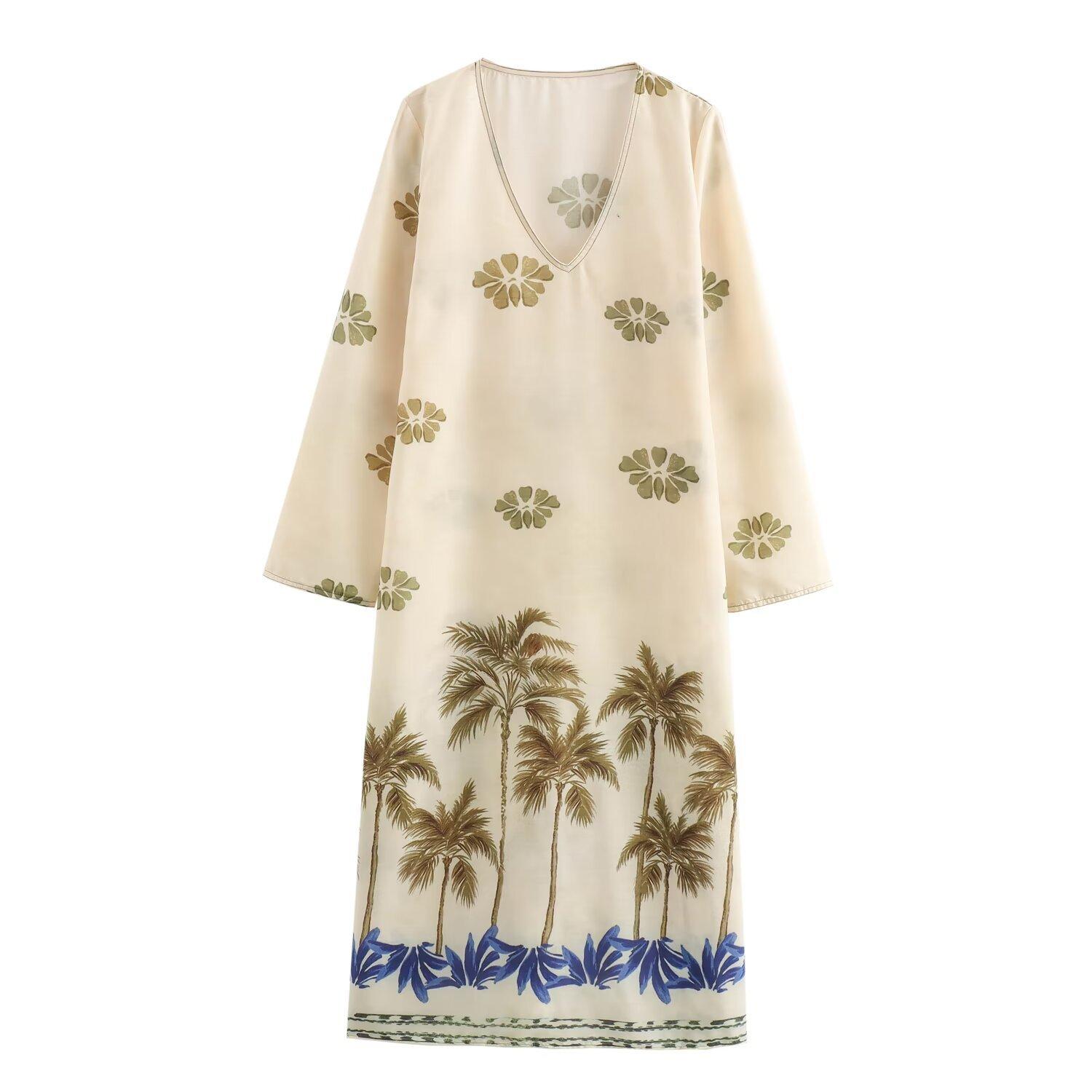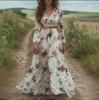 Europeo y Americano Transfronterizo 2024 Verano Vestido Largo de Moda con Cuello en V y Estampado de Plantas para Mujer Vestido Elegante de Manga Larga B481405