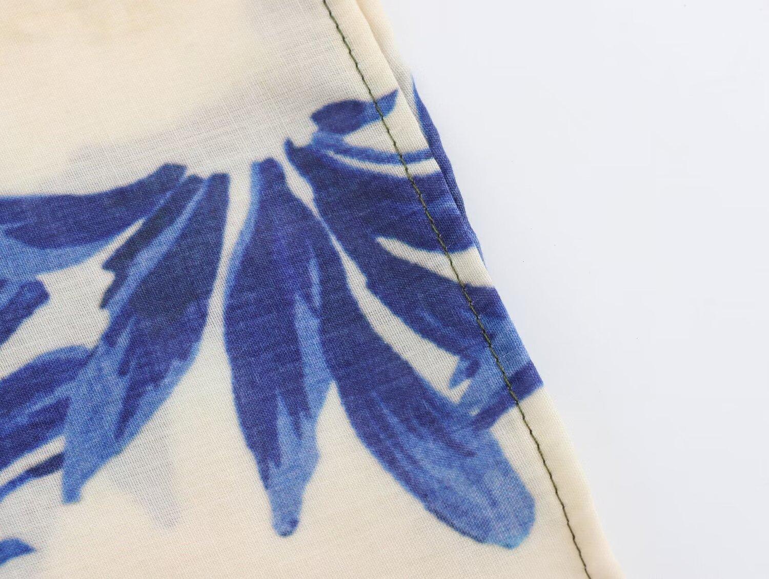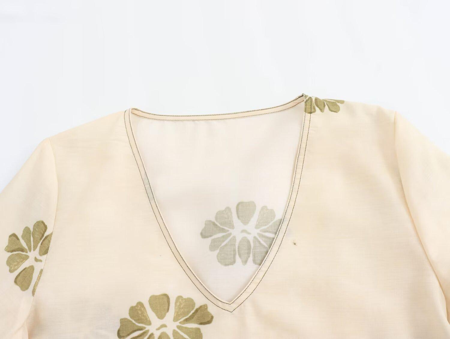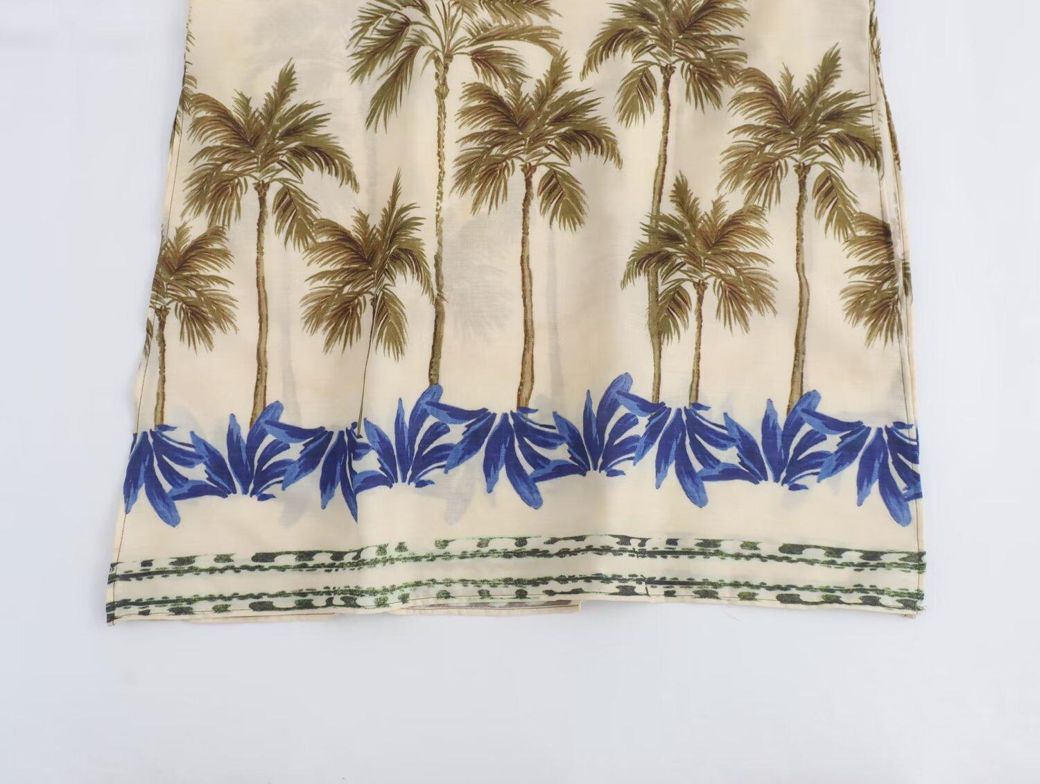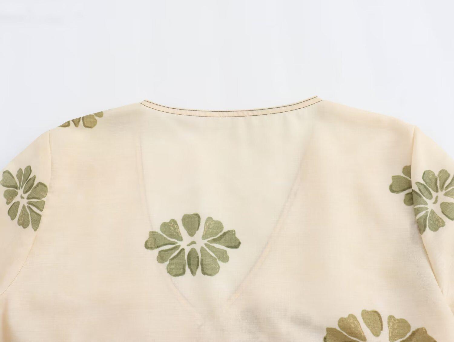 Europeo y Americano Transfronterizo 2024 Verano Vestido Largo de Moda con Cuello en V y Estampado de Plantas para Mujer Vestido Elegante de Manga Larga B481405