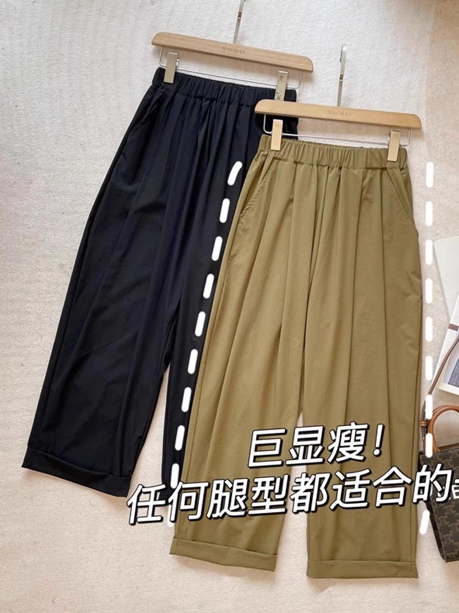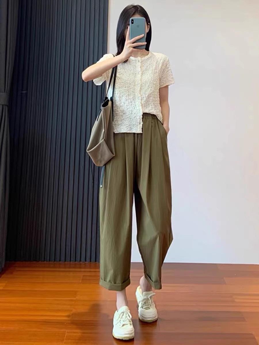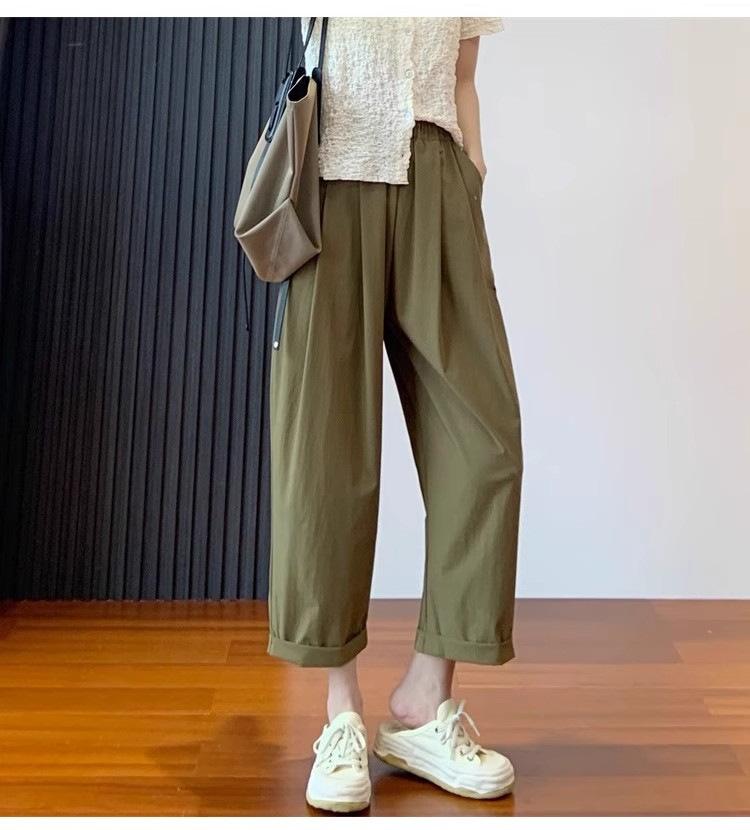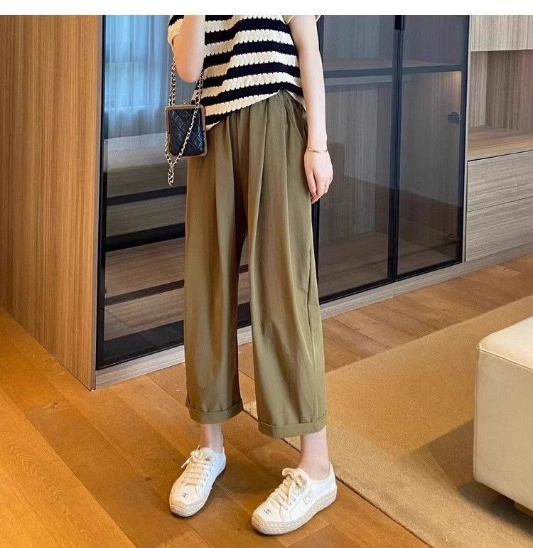 Pantalones Casuales de Color Sólido Combinables de Seda de Hielo 2024 Verano Delgados a la Moda Cintura Alta Adelgazantes Cortos de Secado Rápido Hasta el Tobillo para Mujer