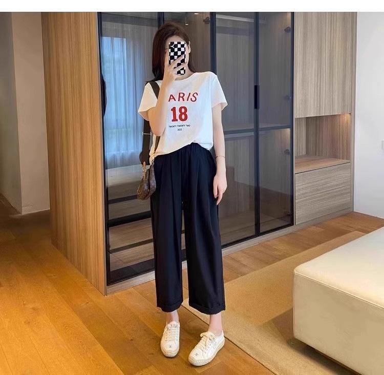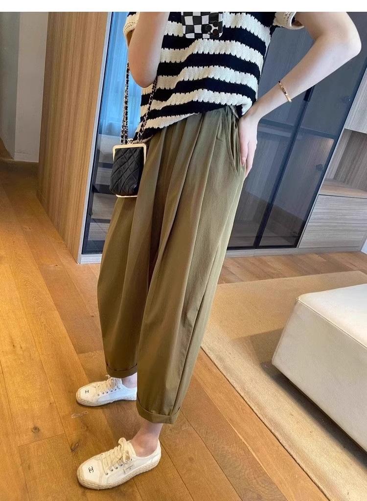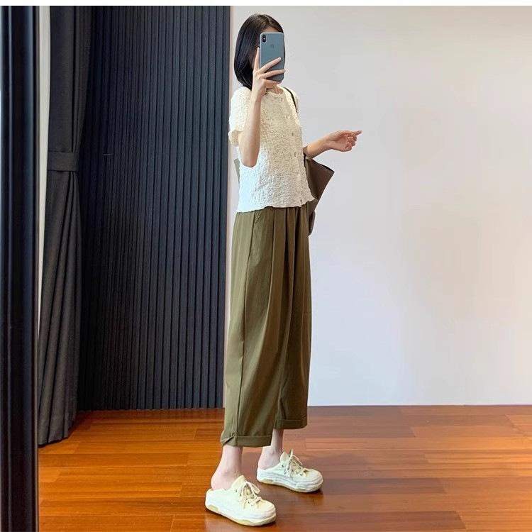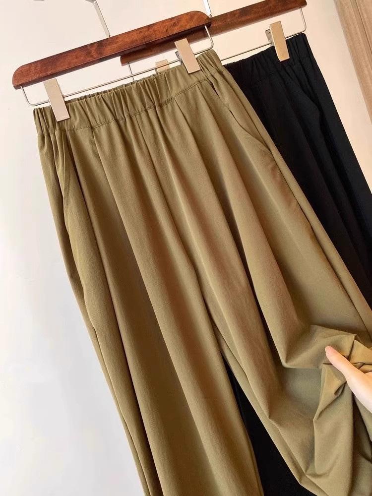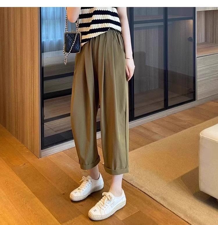 Pantalones Casuales de Color Sólido Combinables de Seda de Hielo 2024 Verano Delgados a la Moda Cintura Alta Adelgazantes Cortos de Secado Rápido Hasta el Tobillo para Mujer