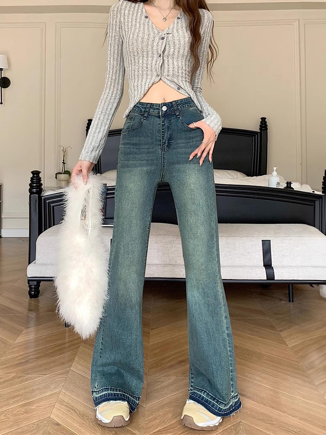 Jeans Acampanados Retro Americanos para Mujer 2025 Otoño Nuevo Hermana Gorda mm Cintura Alta Holgados Adelgazantes Pantalones Acampanados