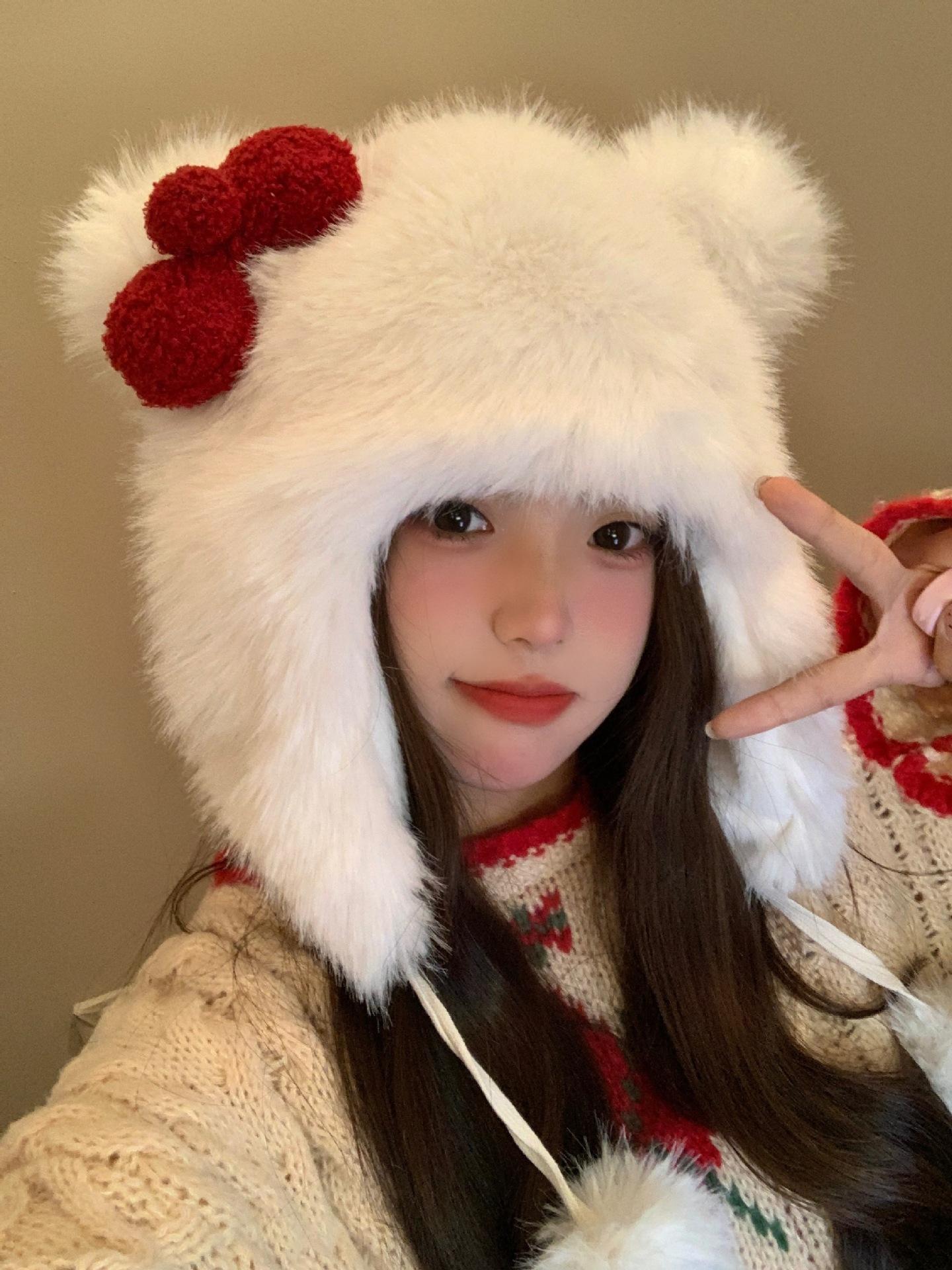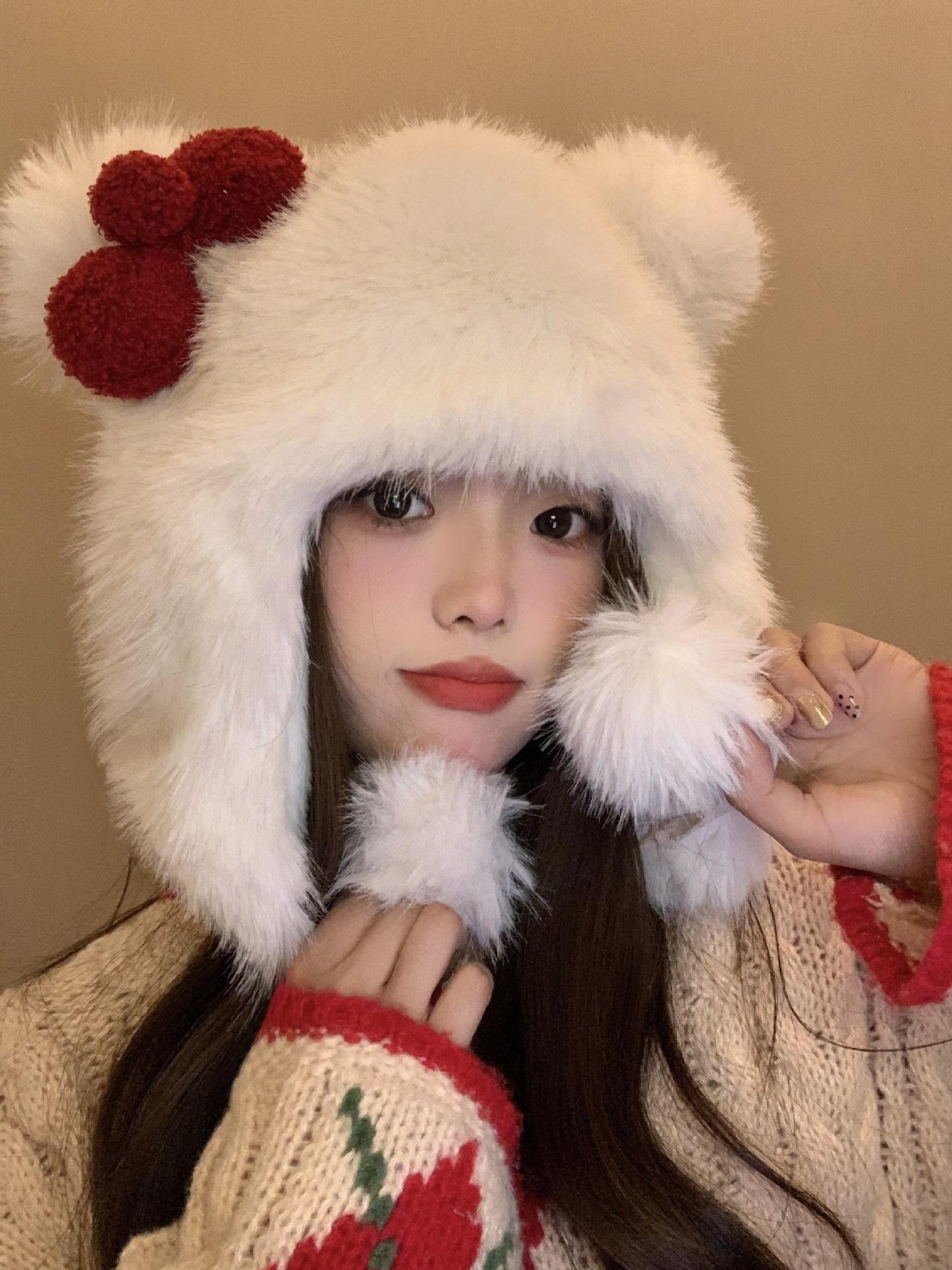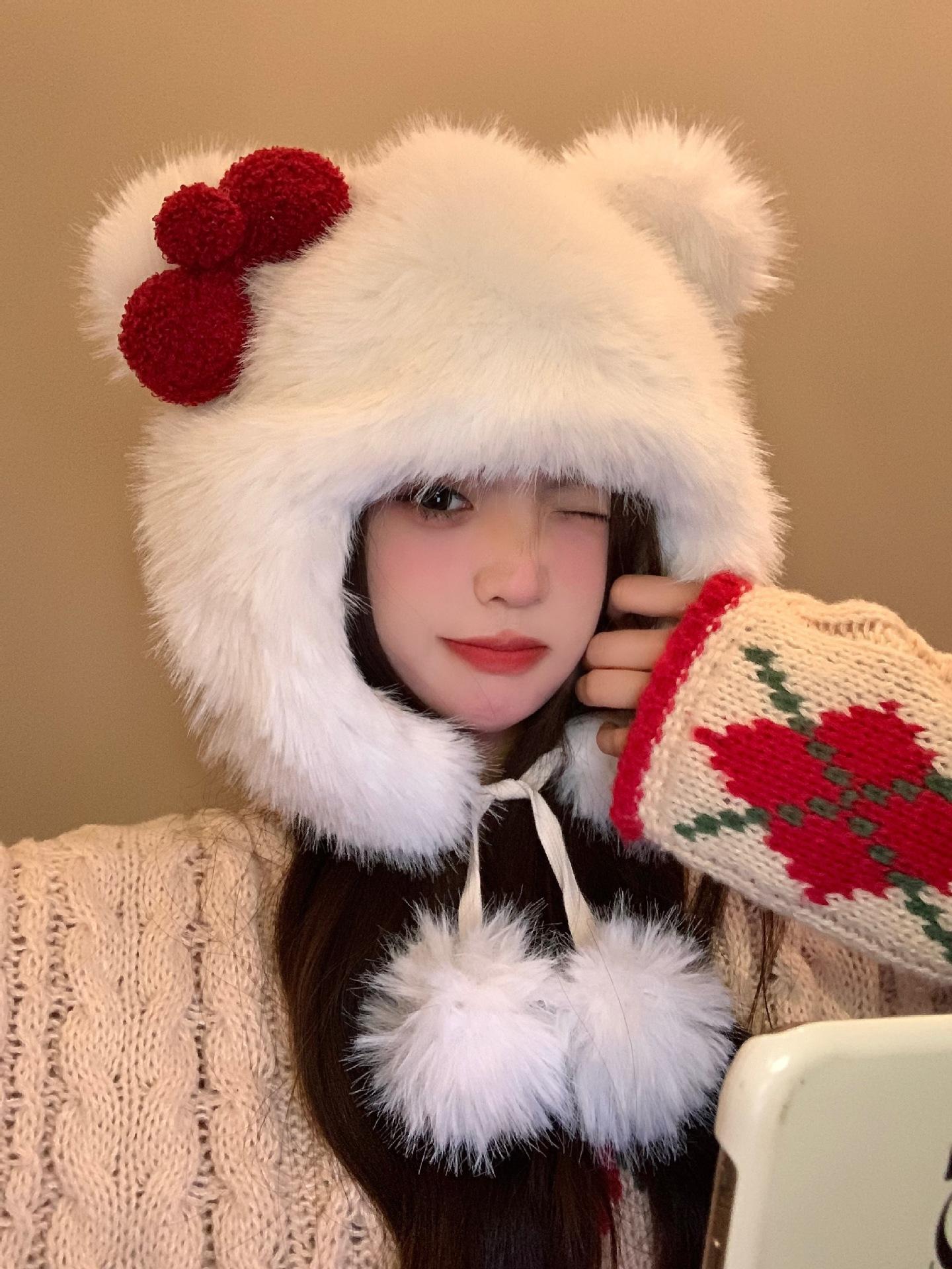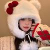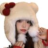 Sombrero Fluffy de Oso con Lazo para Mujer Invierno Estilo Coreano Lindo Grueso Cálido Protección para las Orejas Sombrero Ciclismo a Prueba de Frío Sombrero Lei Feng
