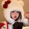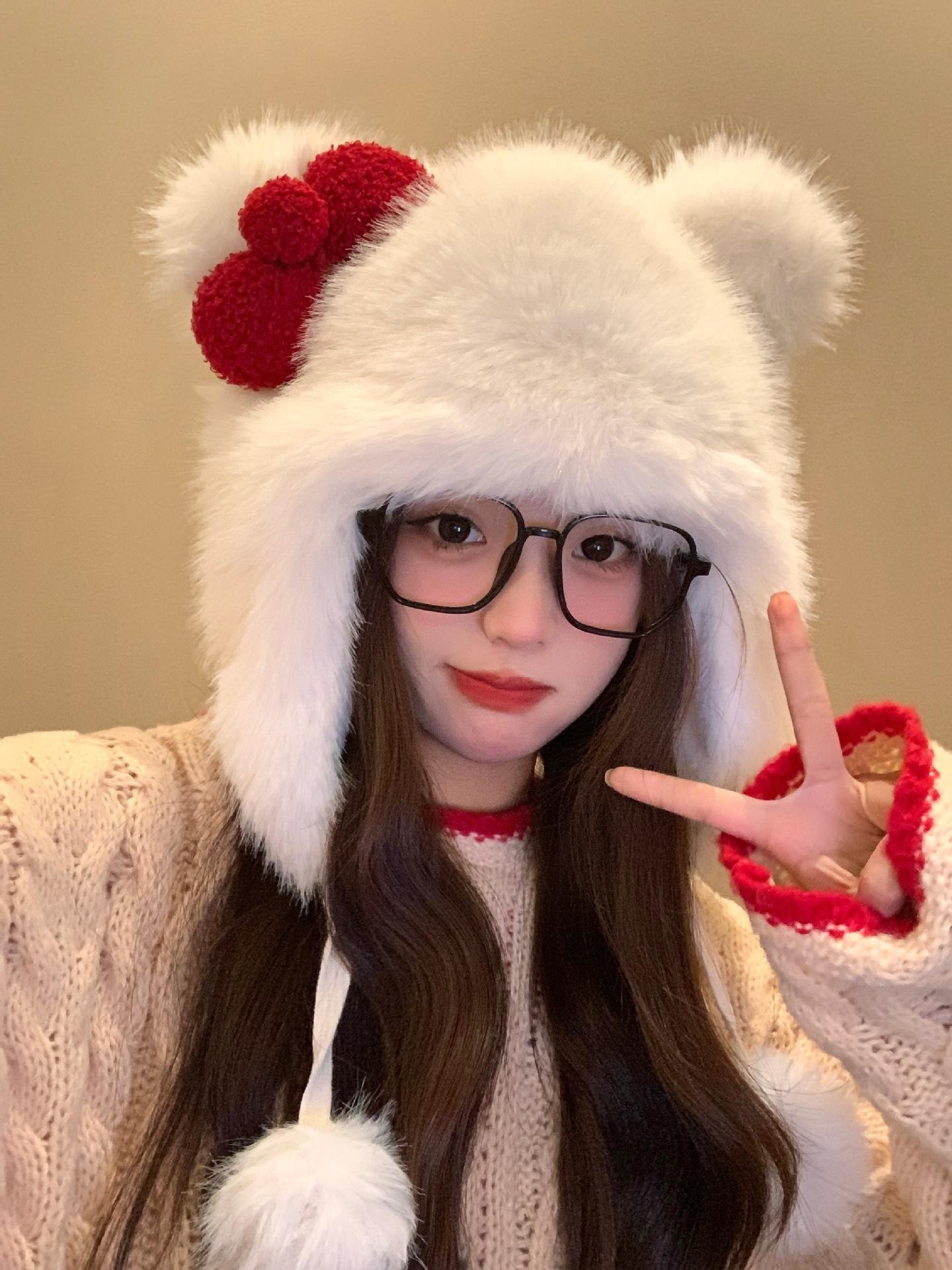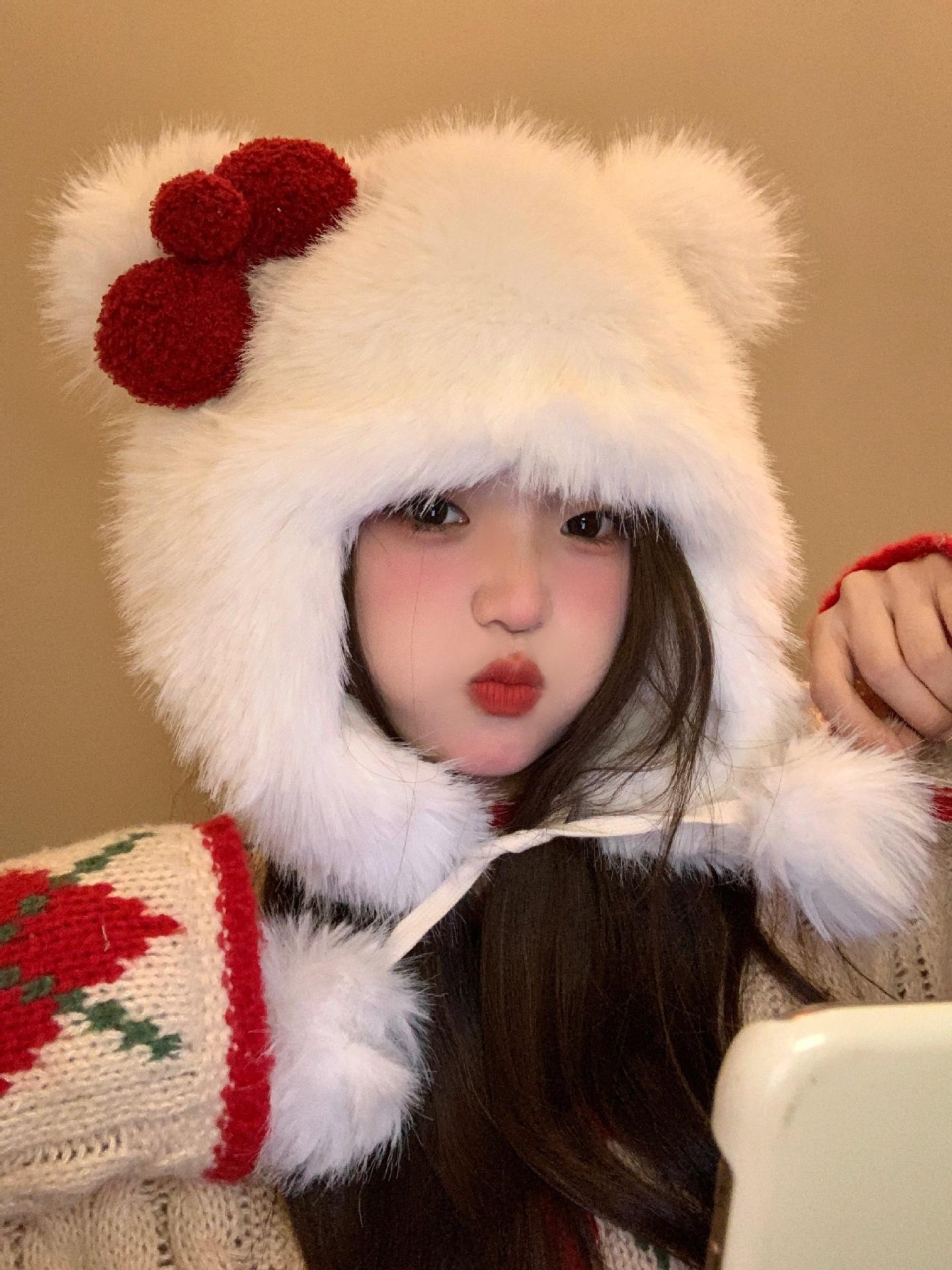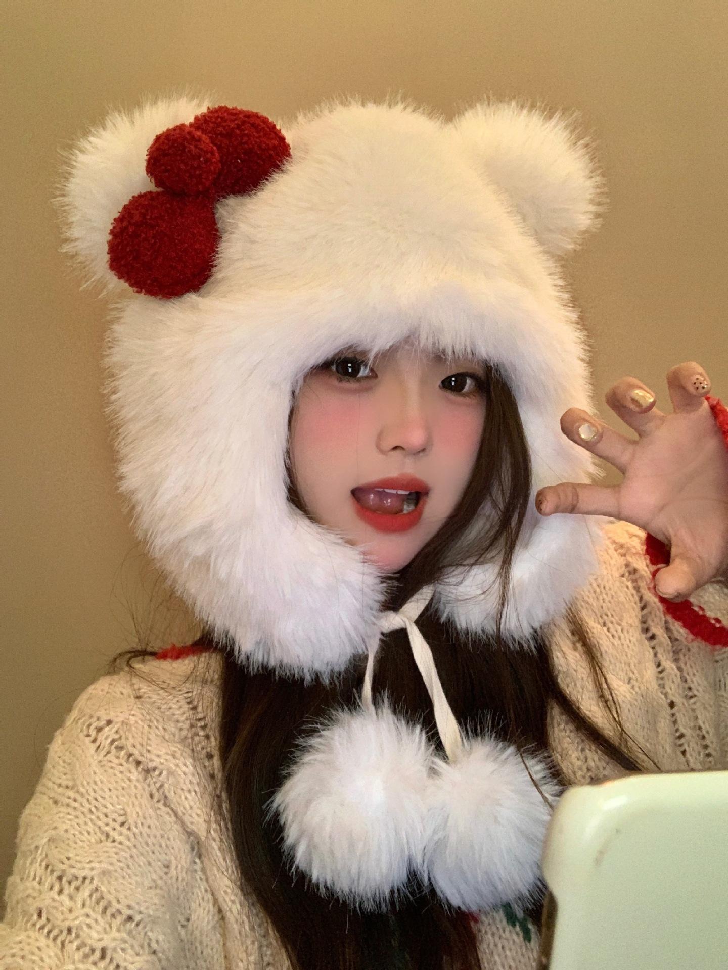 Sombrero Fluffy de Oso con Lazo para Mujer Invierno Estilo Coreano Lindo Grueso Cálido Protección para las Orejas Sombrero Ciclismo a Prueba de Frío Sombrero Lei Feng