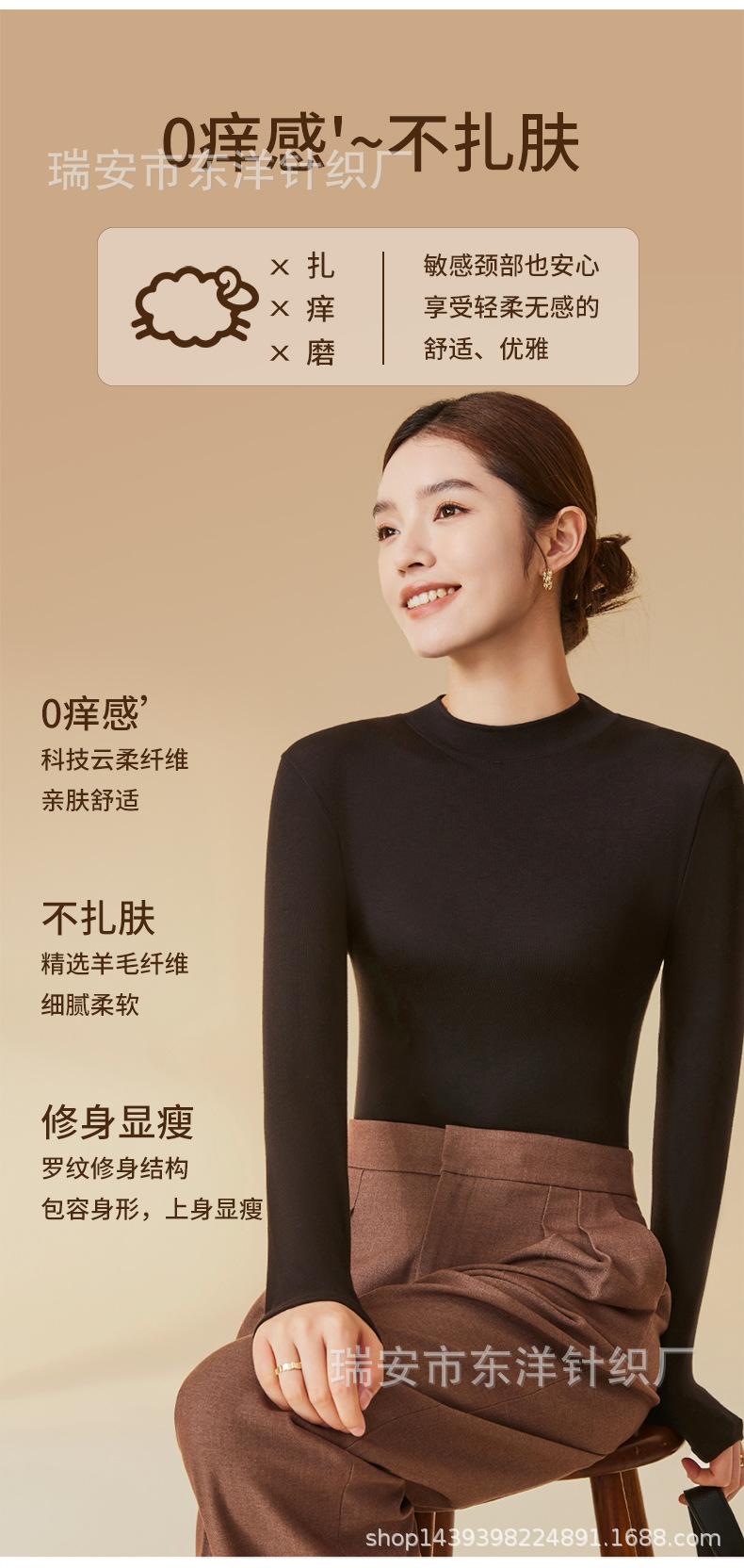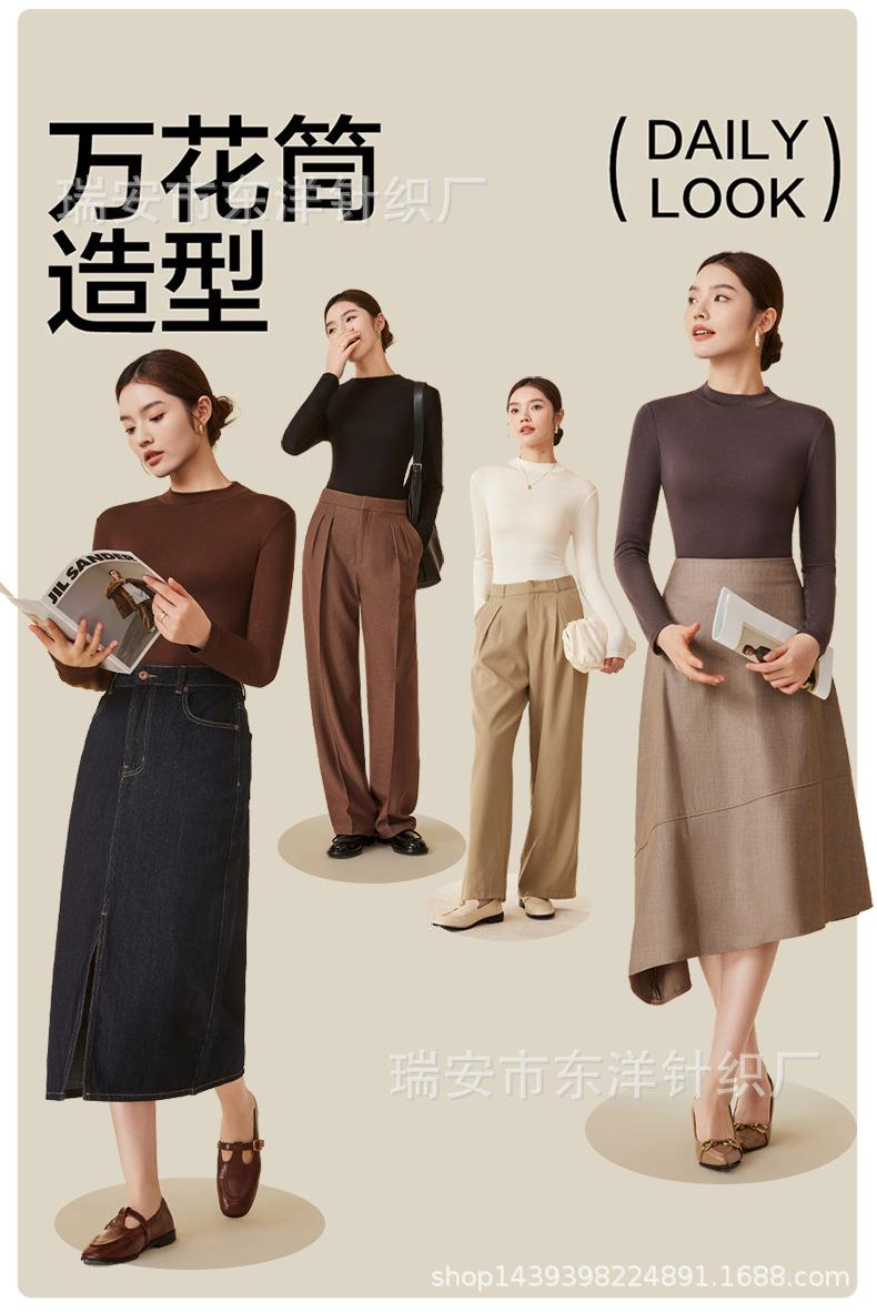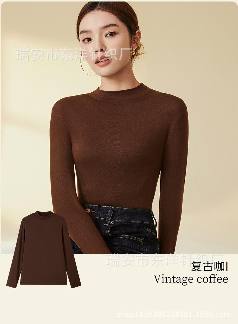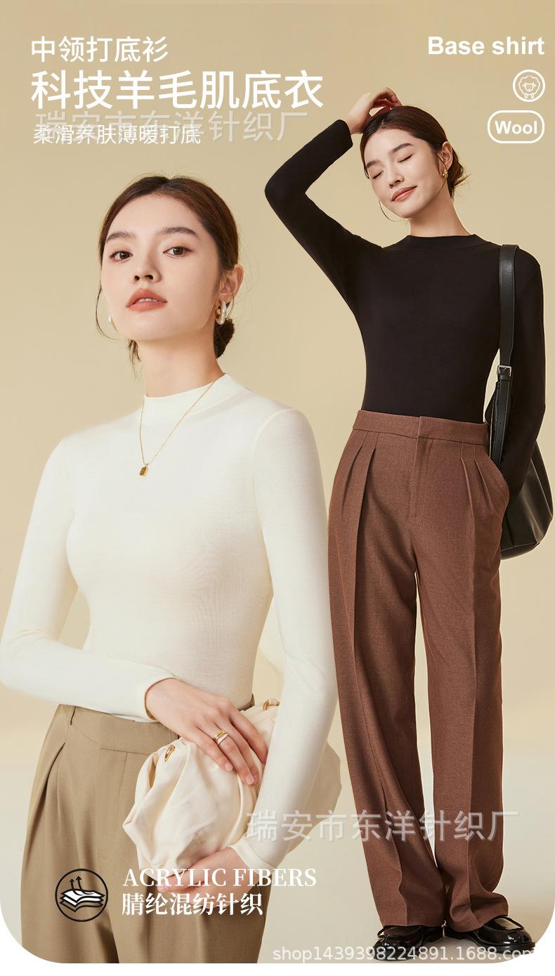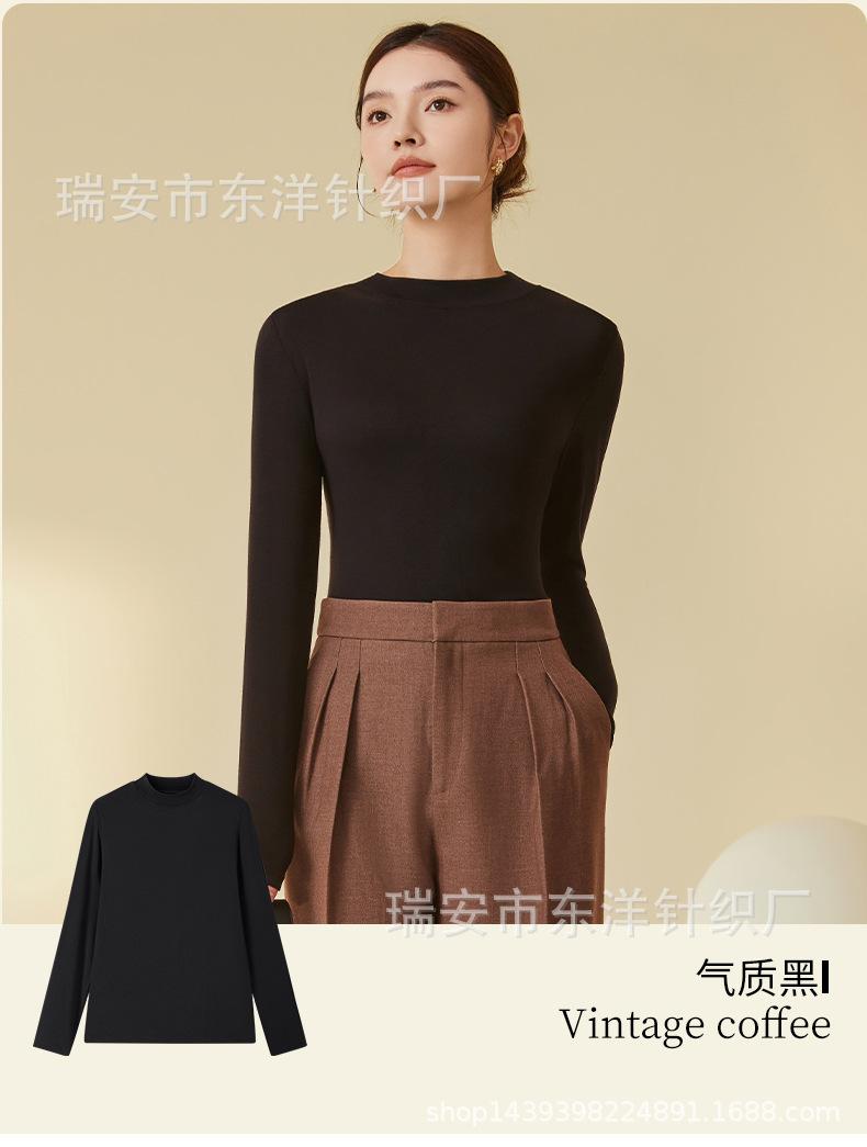 Camisa básica de lana para mujer, de otoño, de manga larga, cuello medio alto y corte entallado, combinable con todo, con interior apilado, para primavera y otoño, 2024