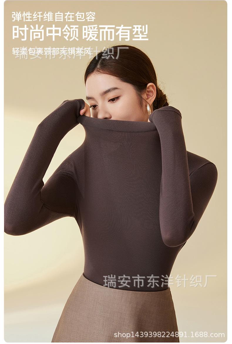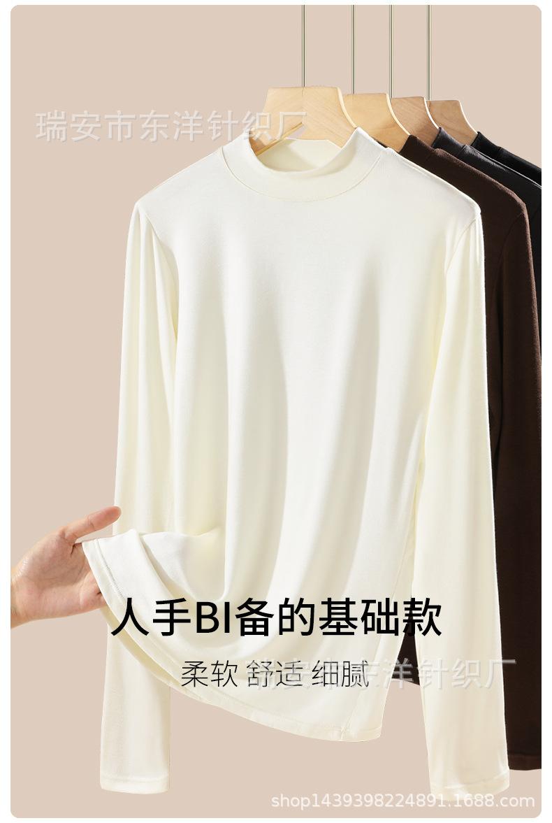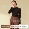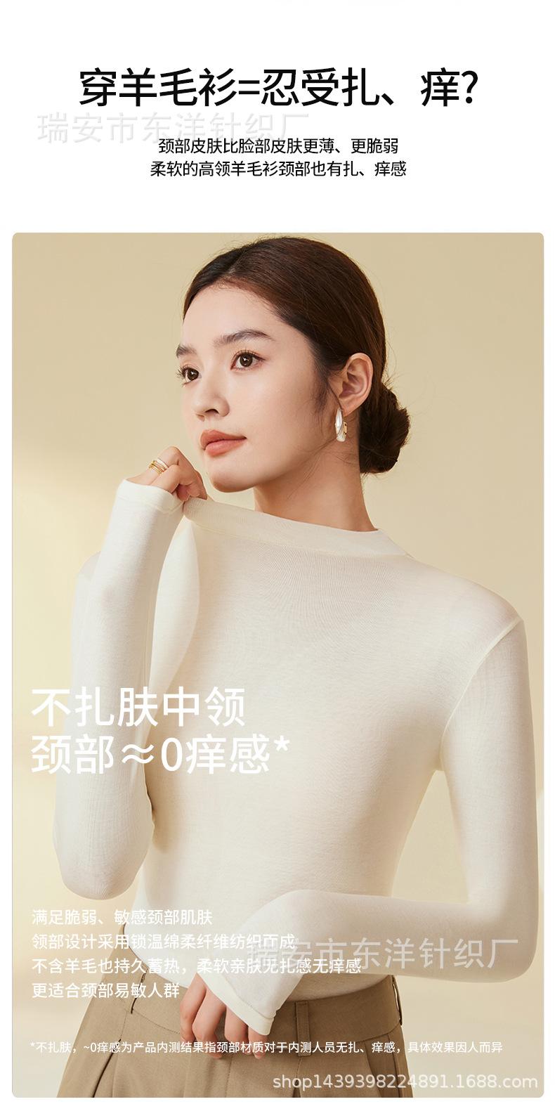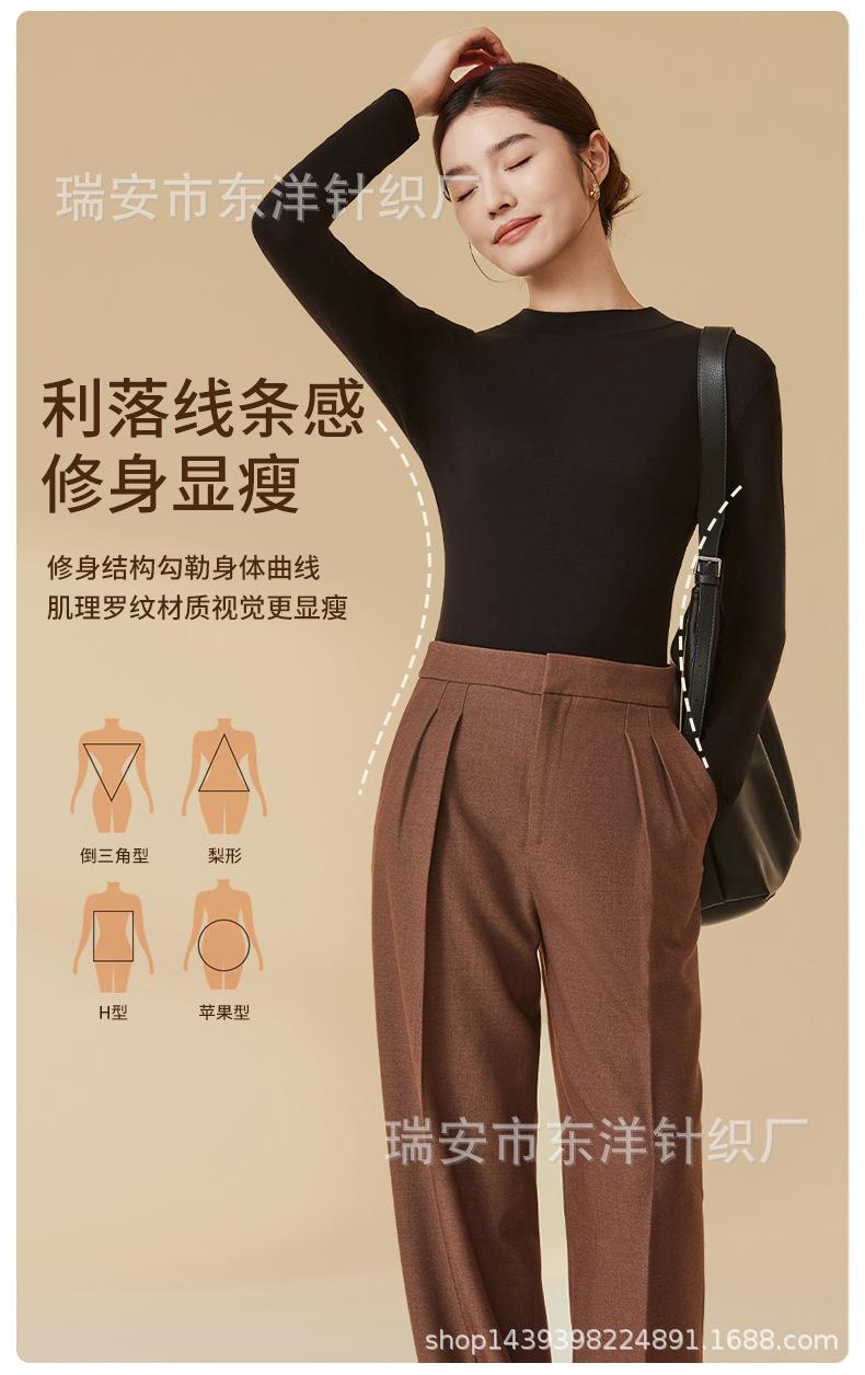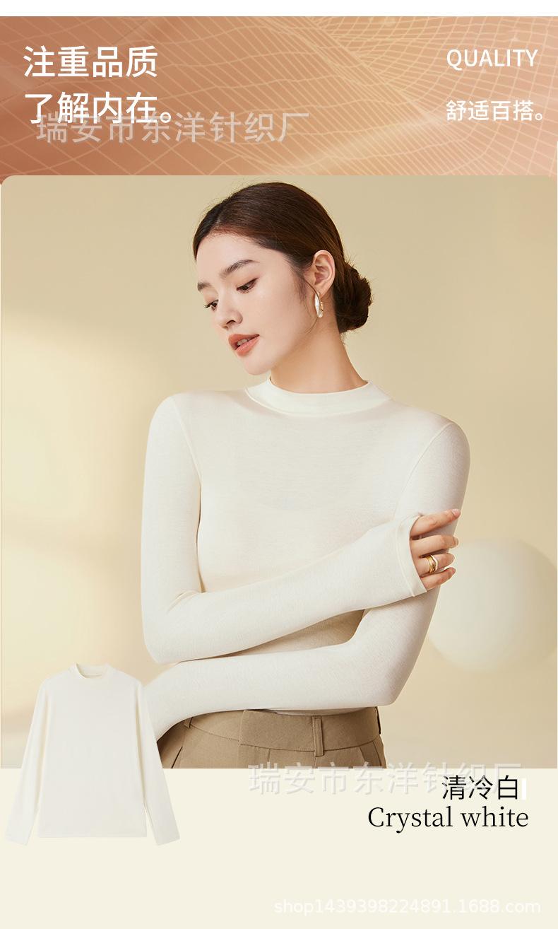 Camisa básica de lana para mujer, de otoño, de manga larga, cuello medio alto y corte entallado, combinable con todo, con interior apilado, para primavera y otoño, 2024