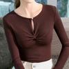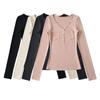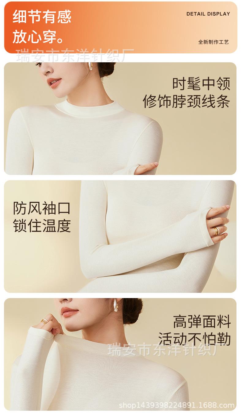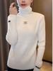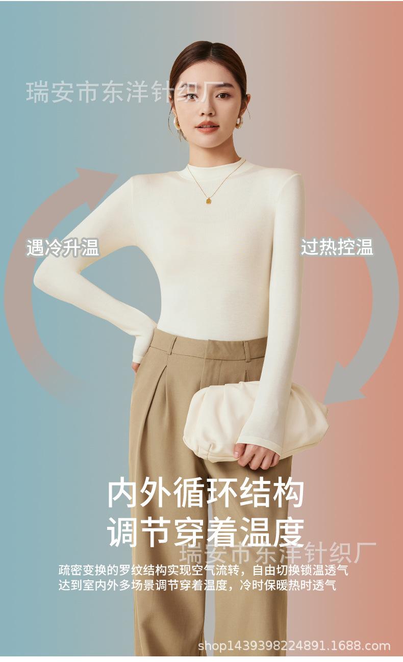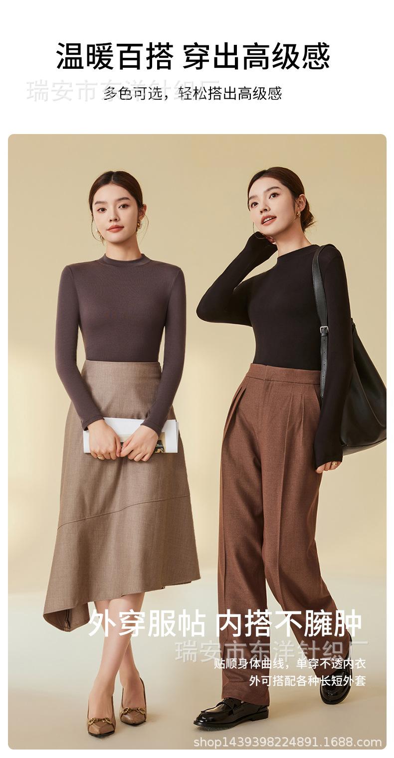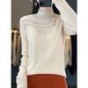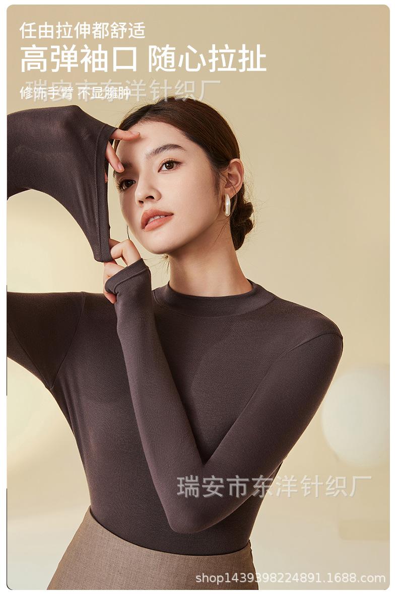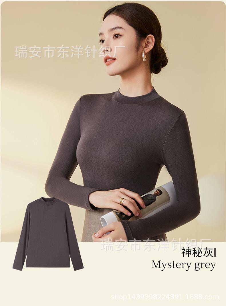 Camisa básica de lana para mujer, de otoño, de manga larga, cuello medio alto y corte entallado, combinable con todo, con interior apilado, para primavera y otoño, 2024