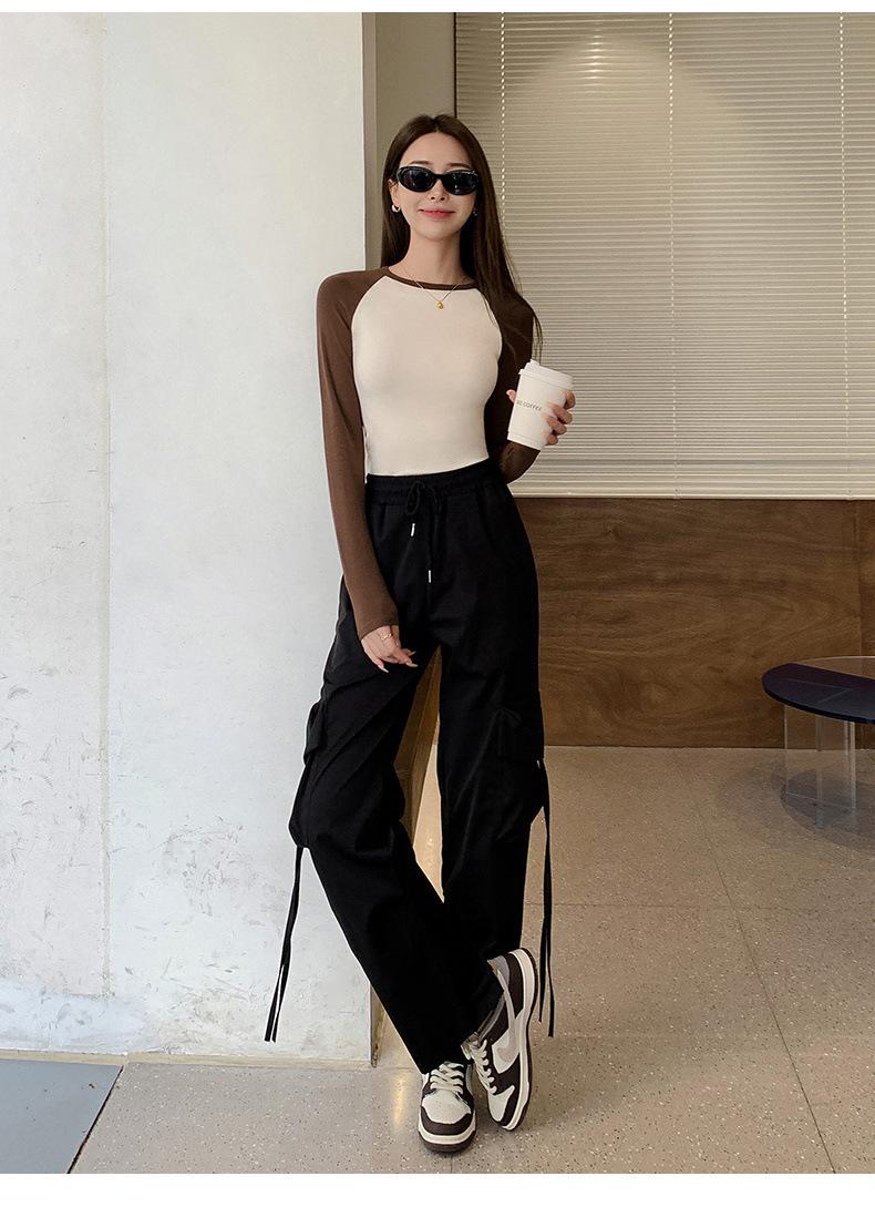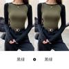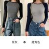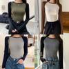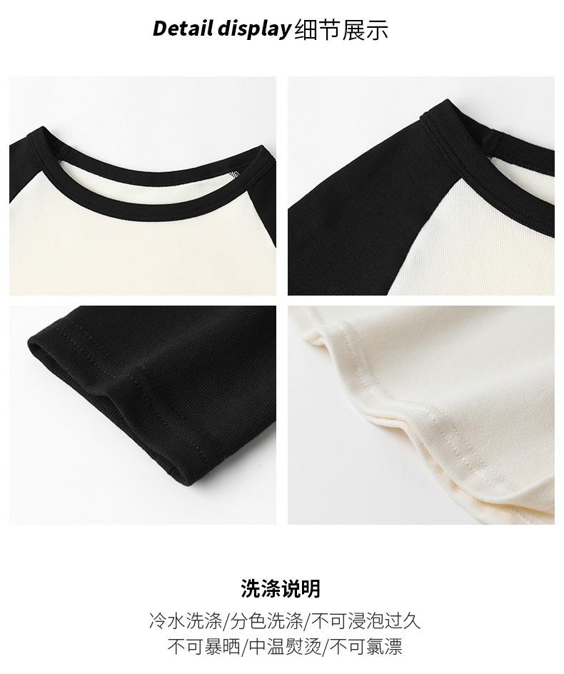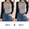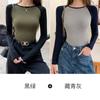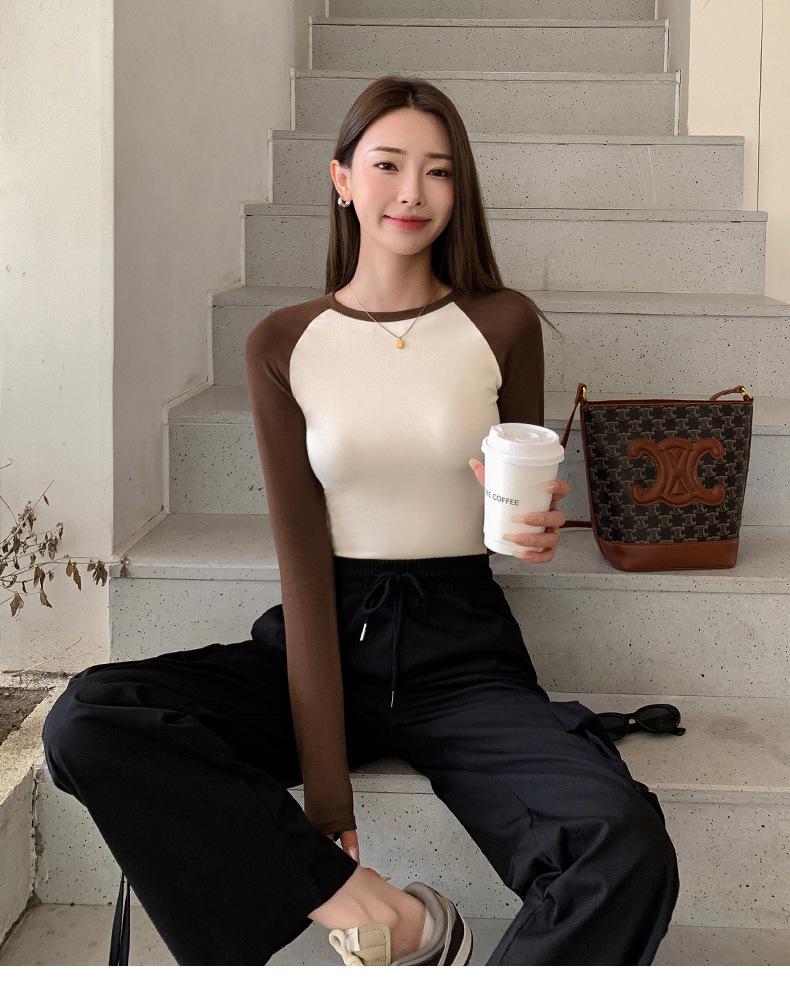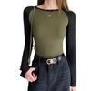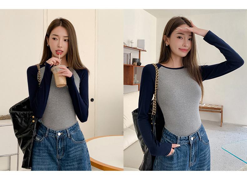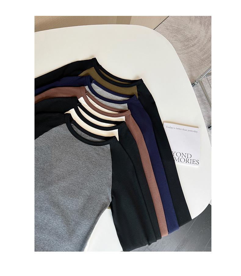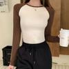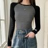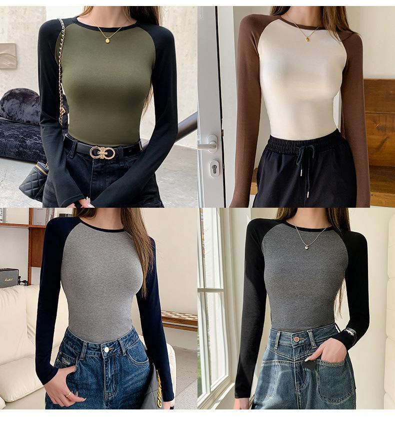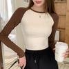 Camiseta básica de manga raglán con contraste de color 2023, camiseta de manga larga con hombros descubiertos para mujer, cuello redondo, combinable con todo, con costuras ajustadas, otoño