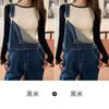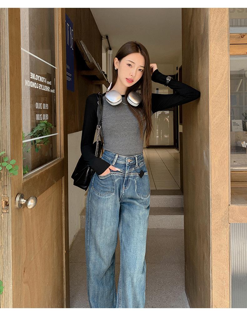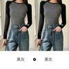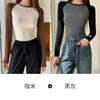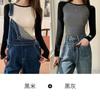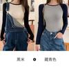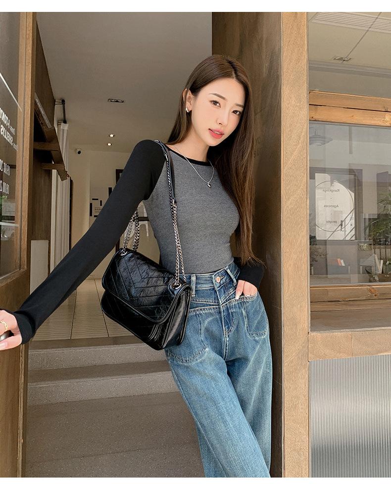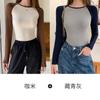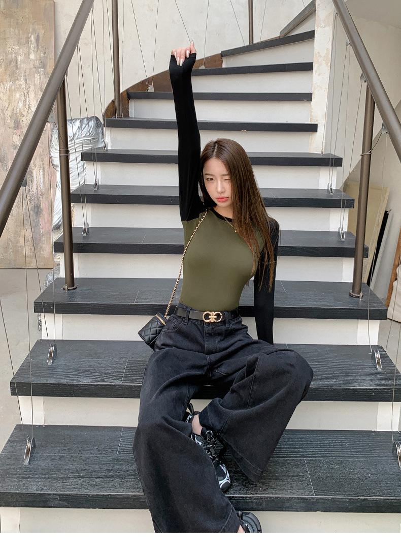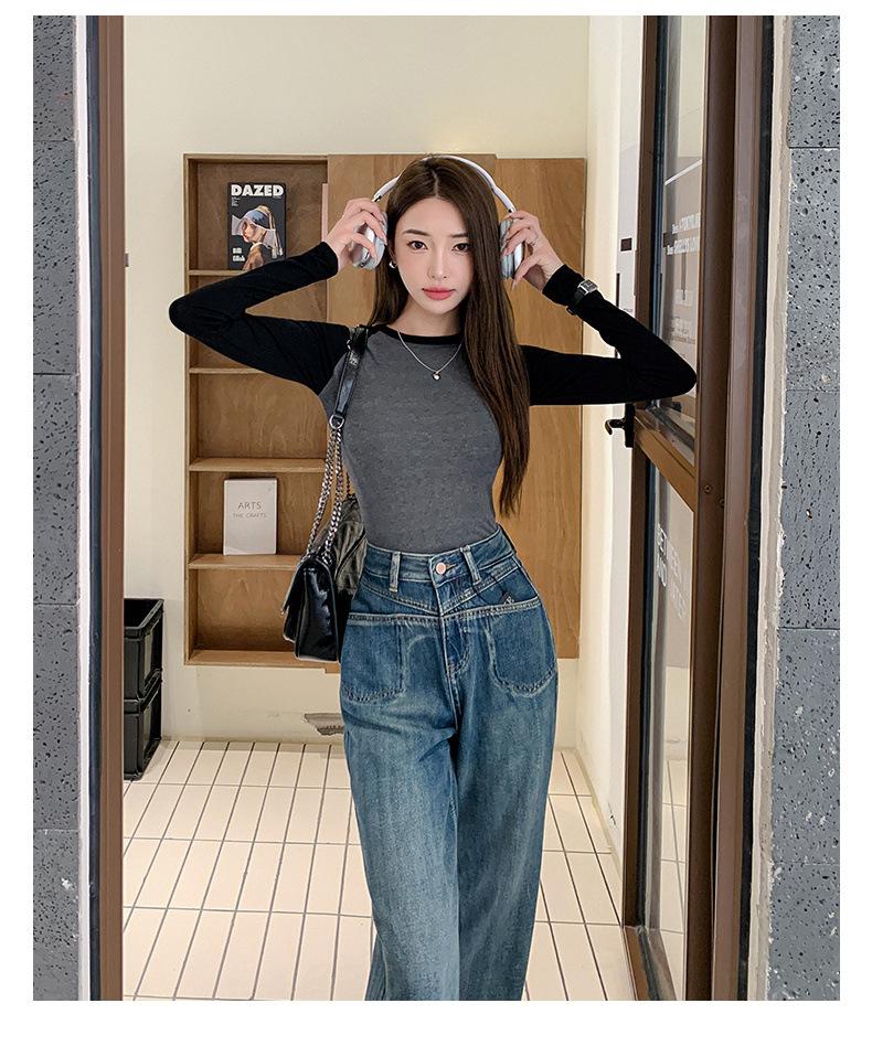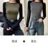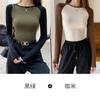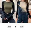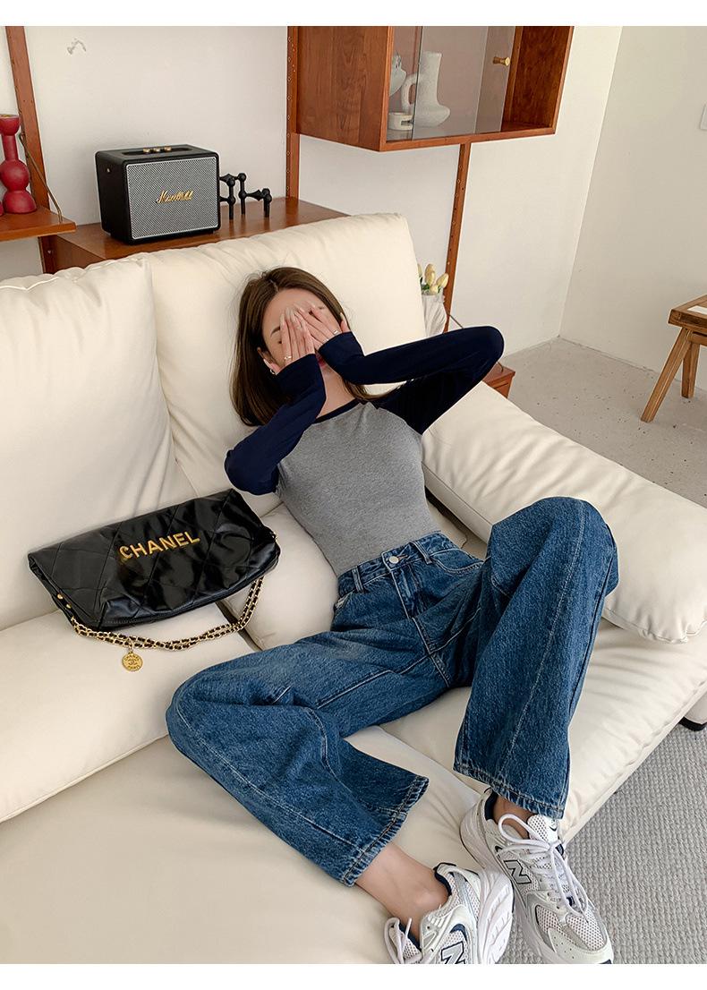 Camiseta básica de manga raglán con contraste de color 2023, camiseta de manga larga con hombros descubiertos para mujer, cuello redondo, combinable con todo, con costuras ajustadas, otoño