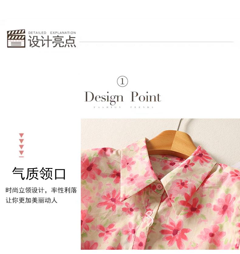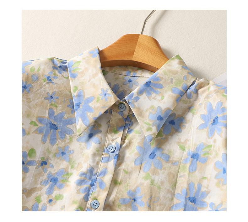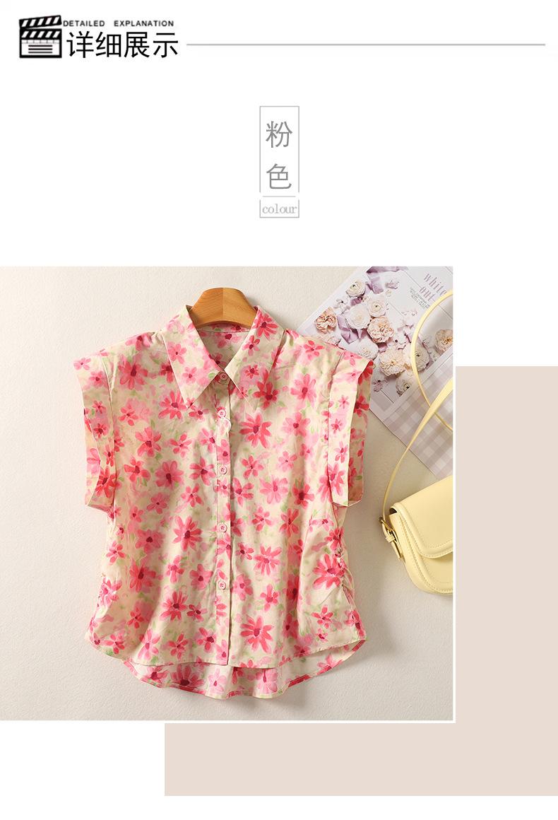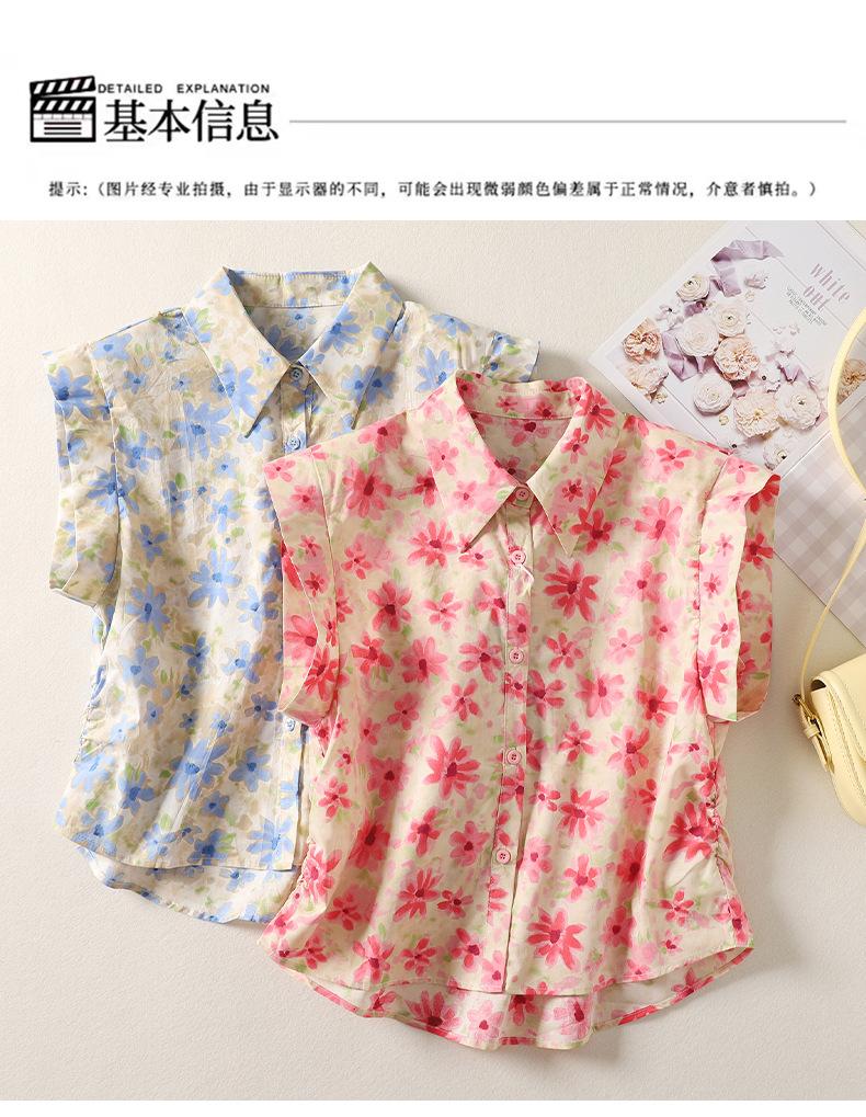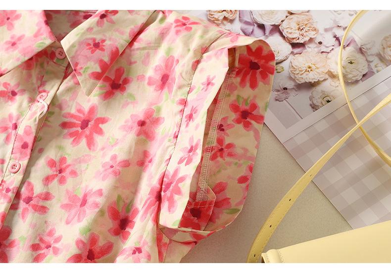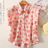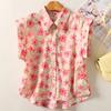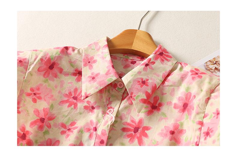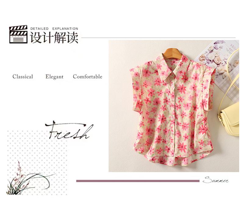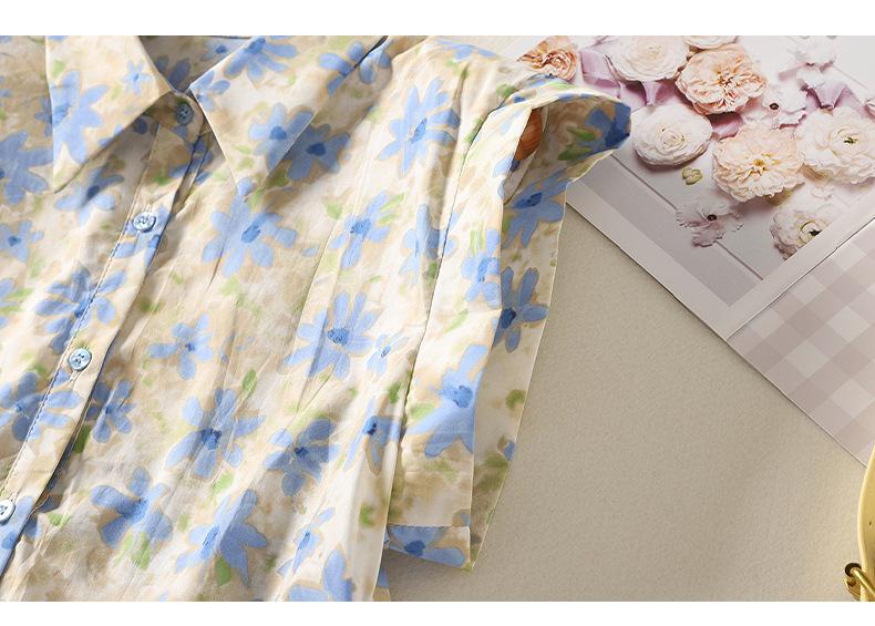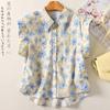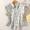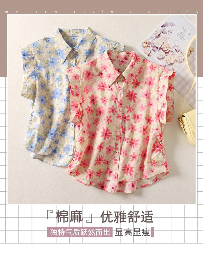 Camisa de manga corta con estampado floral de algodón y lino con hombros descubiertos para mujer, elegante top corto francés de verano.