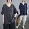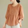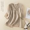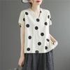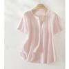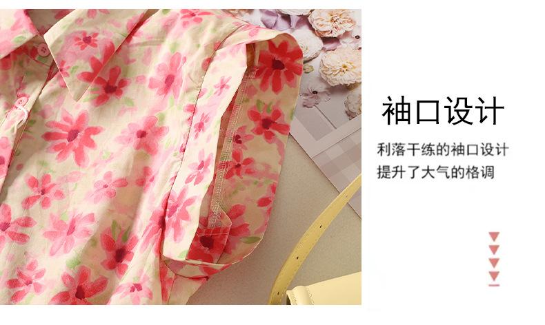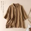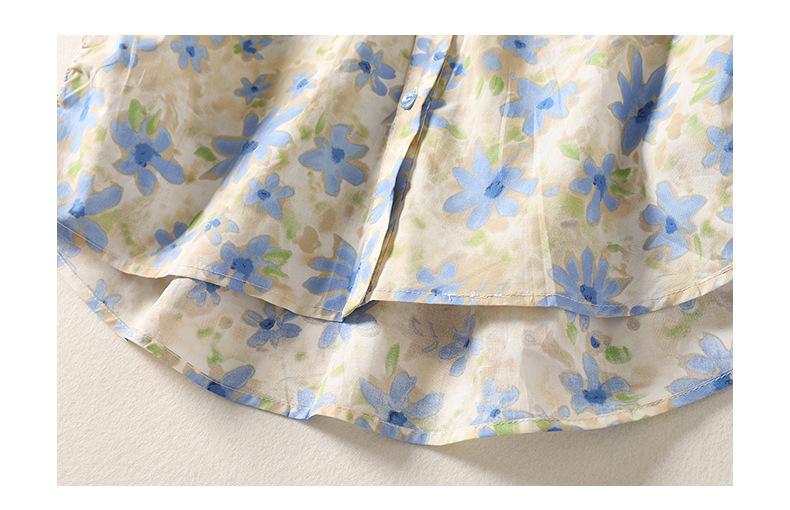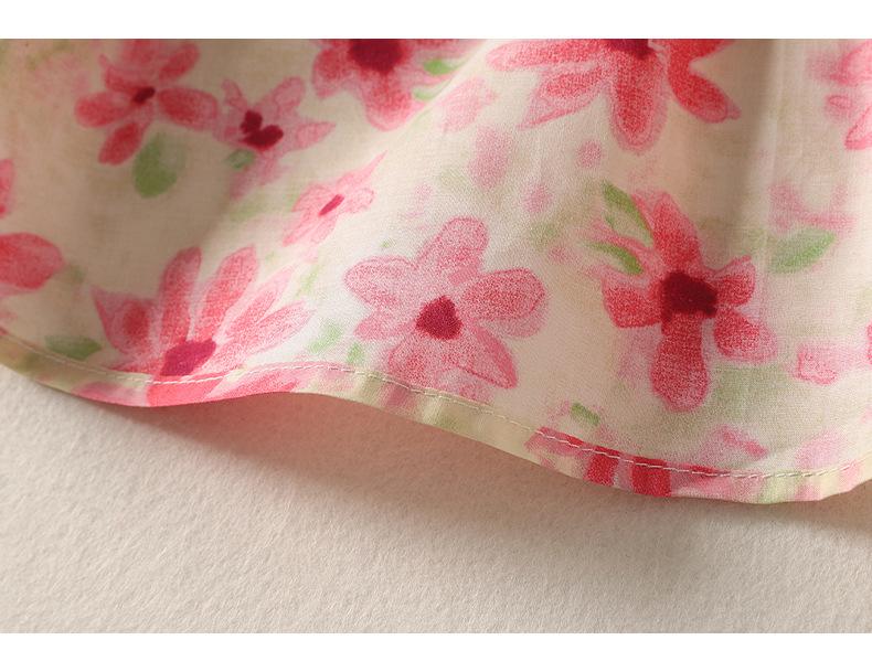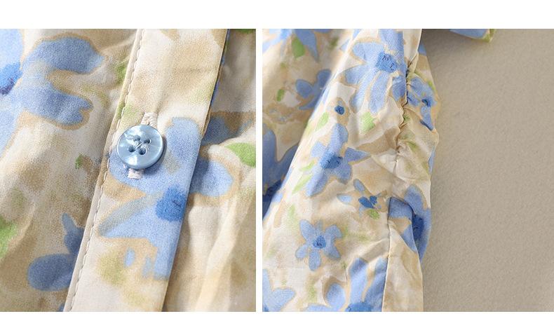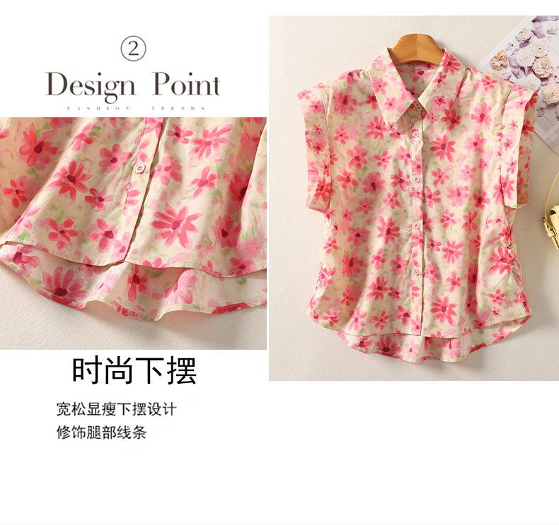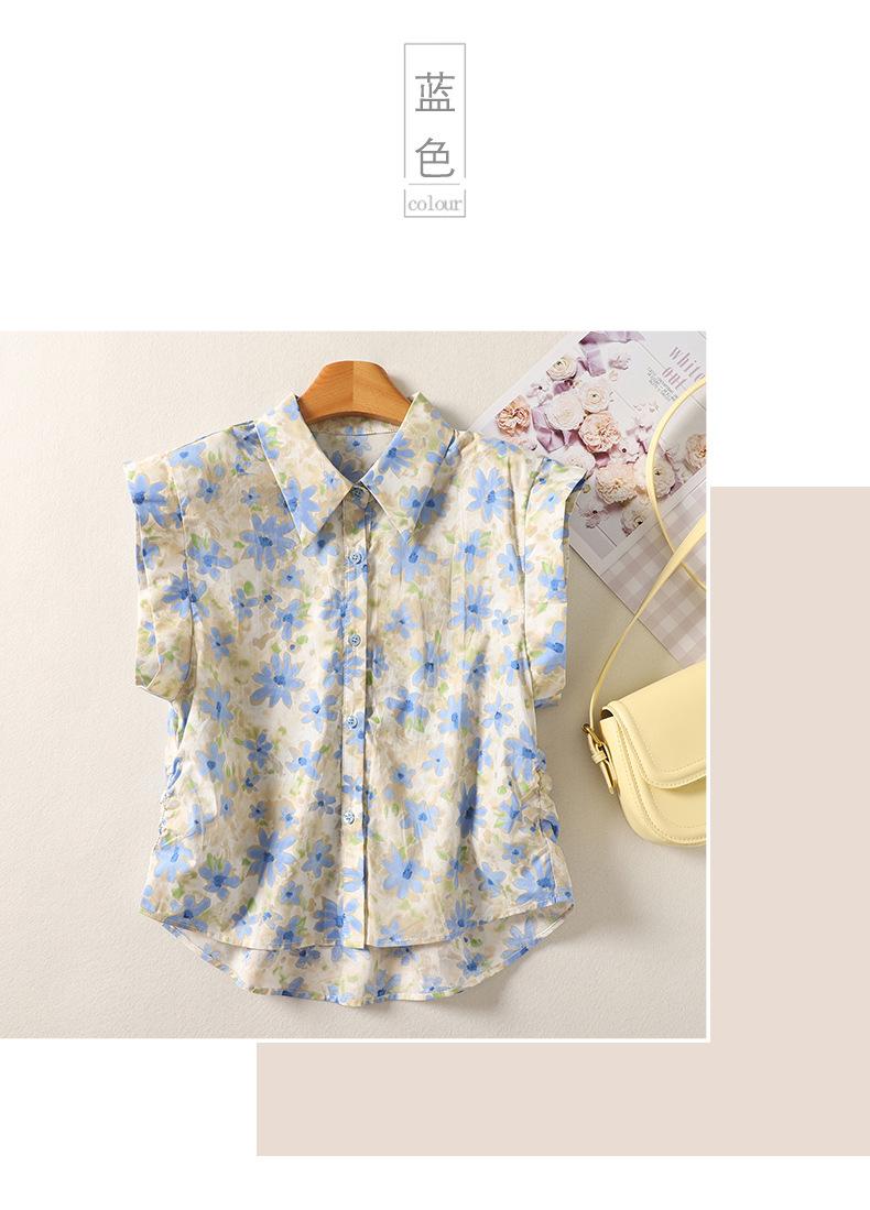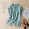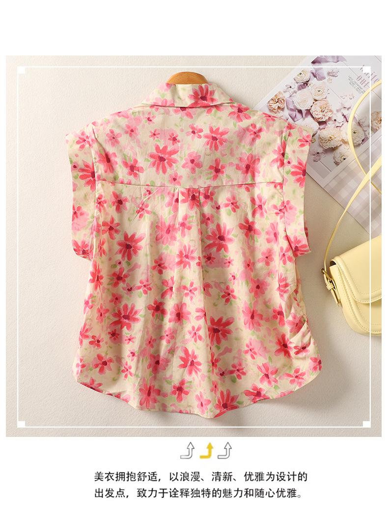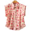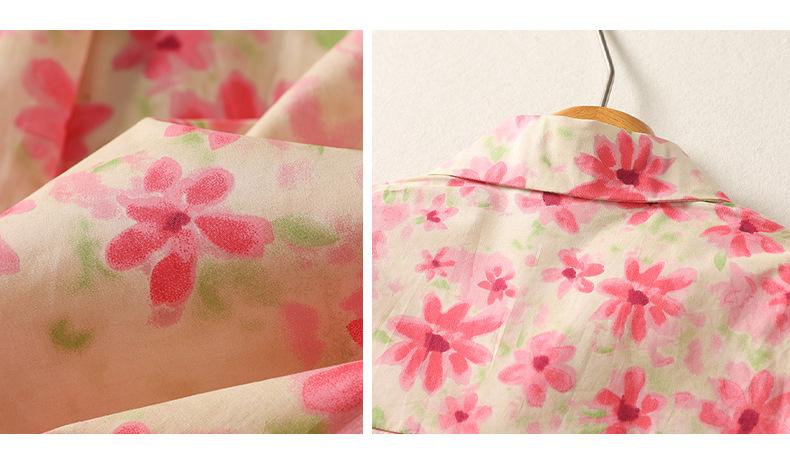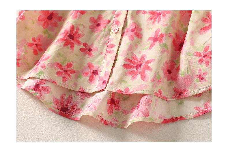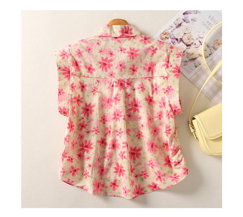 Camisa de manga corta con estampado floral de algodón y lino con hombros descubiertos para mujer, elegante top corto francés de verano.
