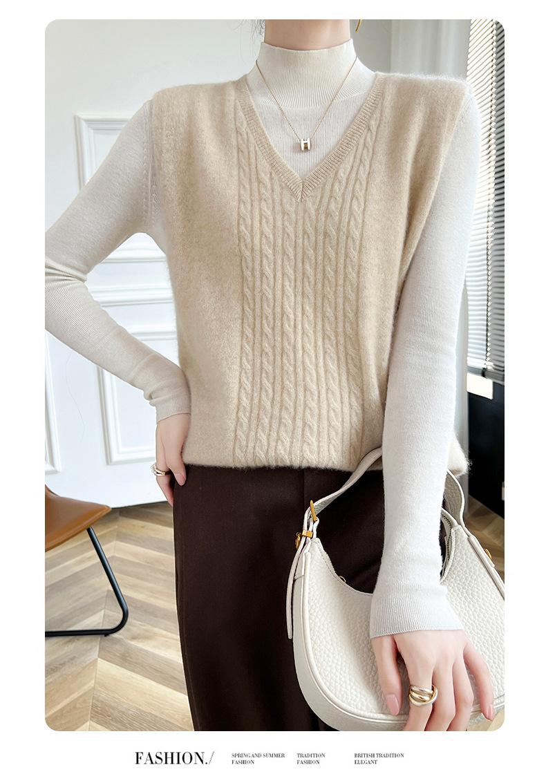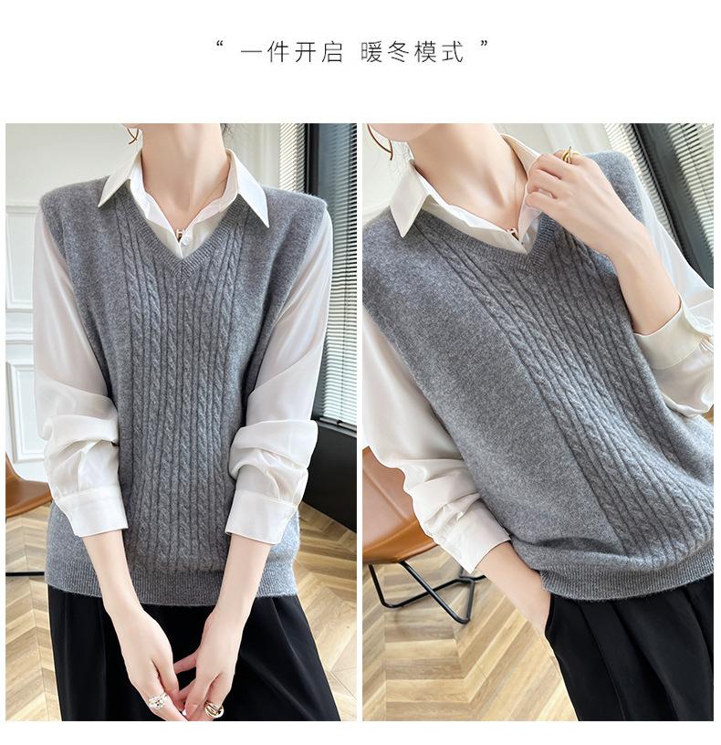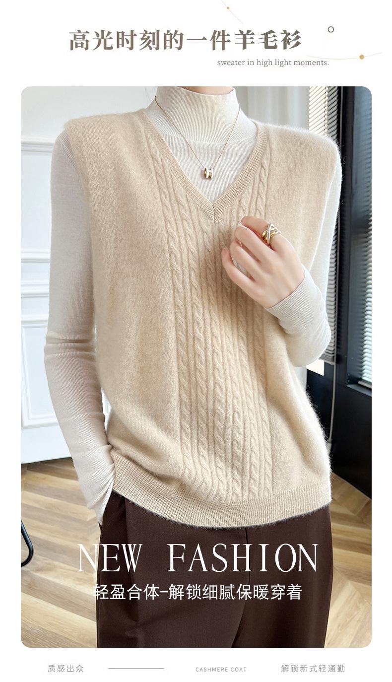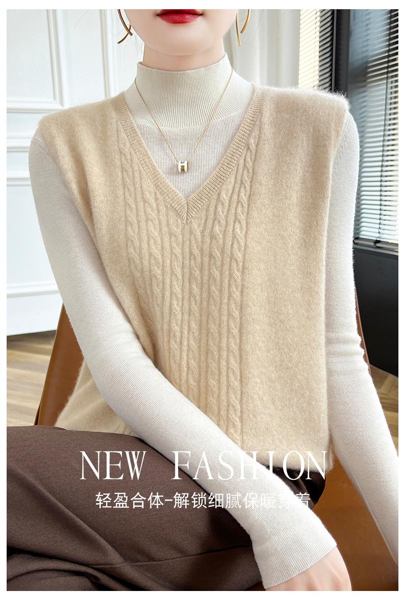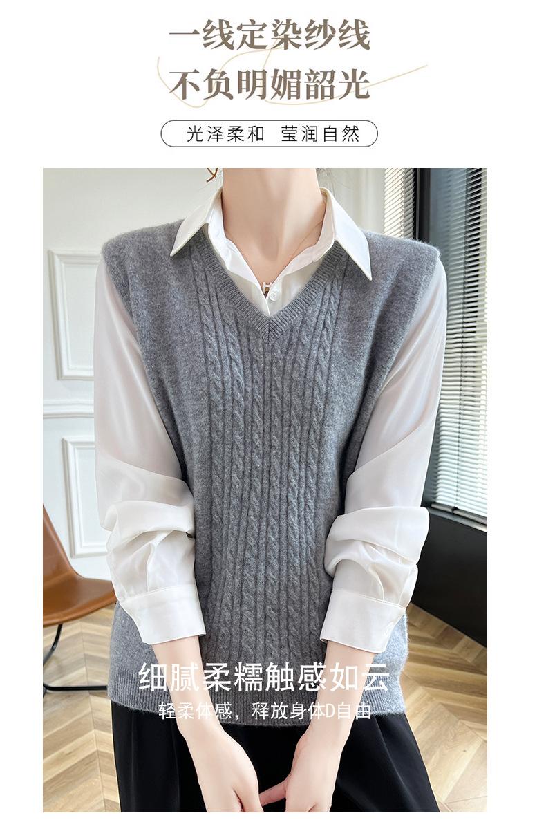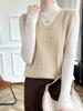 2024 Otoño e Invierno Nuevo Chaleco de Lana Pura Elegante Top de Moda Chaleco sin Mangas Suéter de Punto Apilado con Cuello en V para Mujer