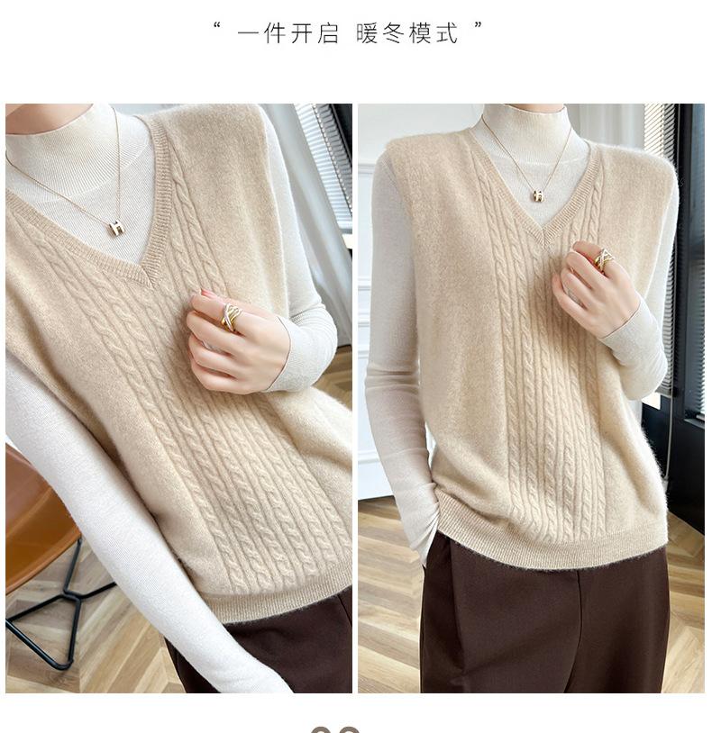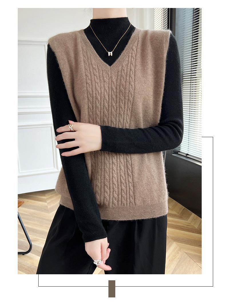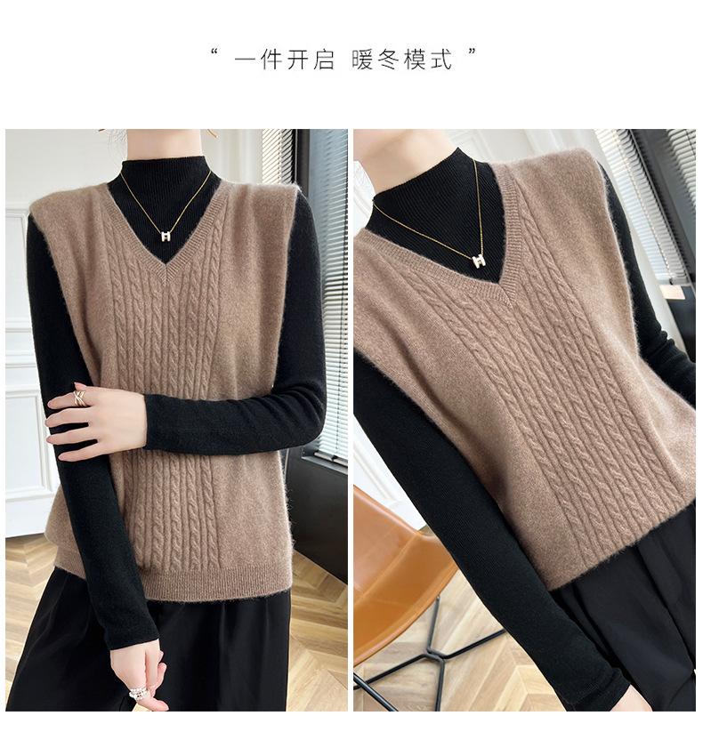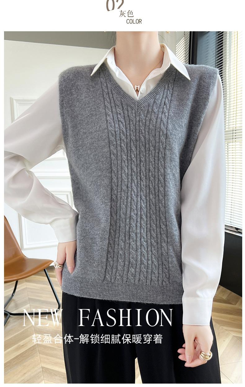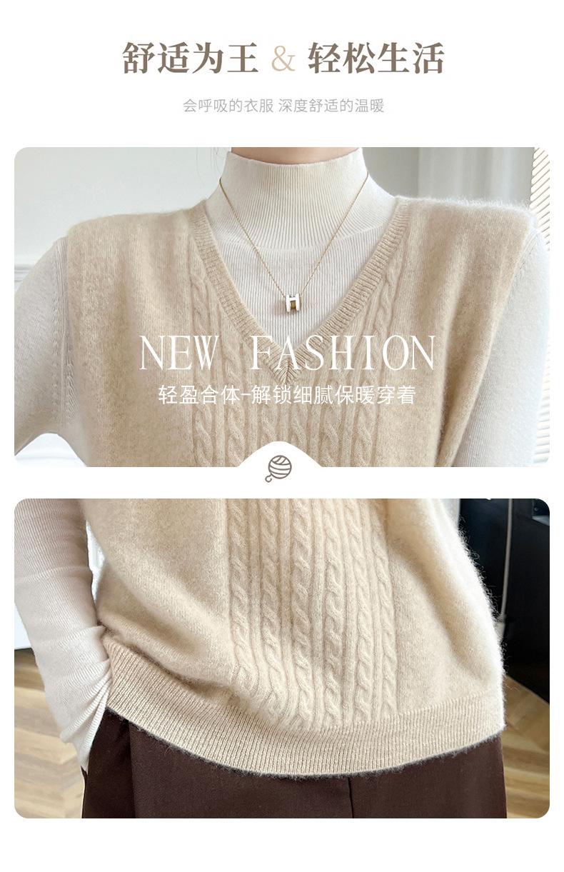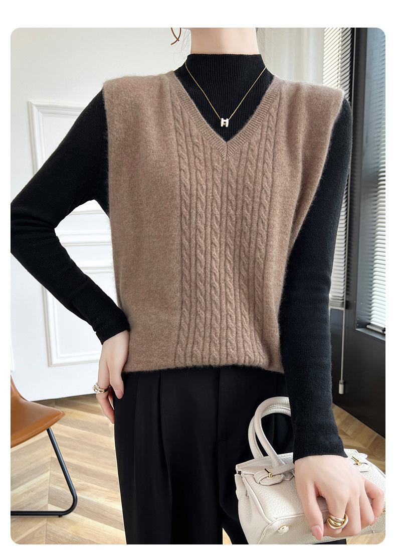 2024 Otoño e Invierno Nuevo Chaleco de Lana Pura Elegante Top de Moda Chaleco sin Mangas Suéter de Punto Apilado con Cuello en V para Mujer