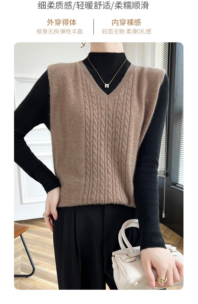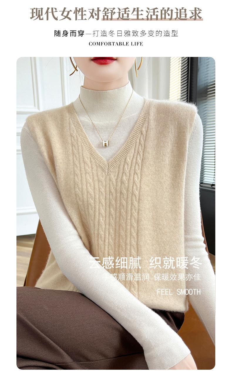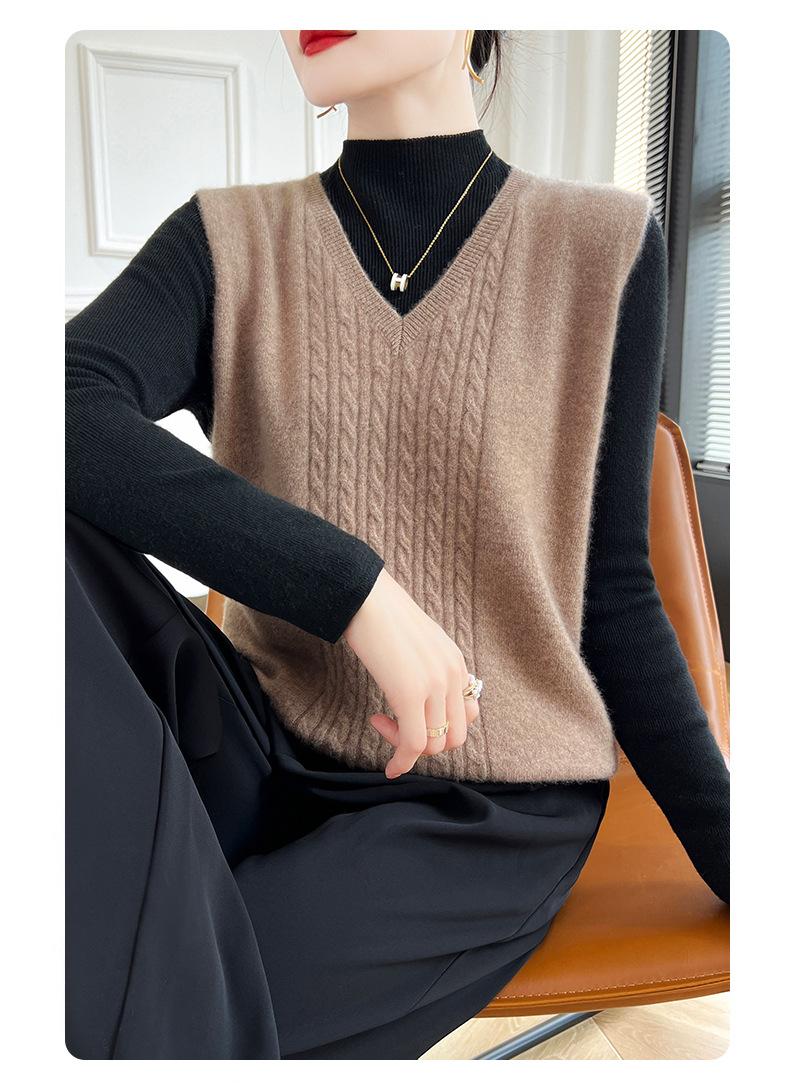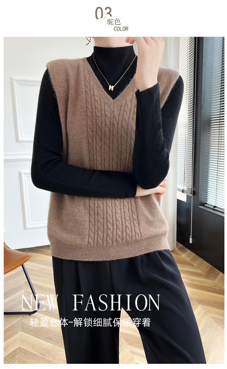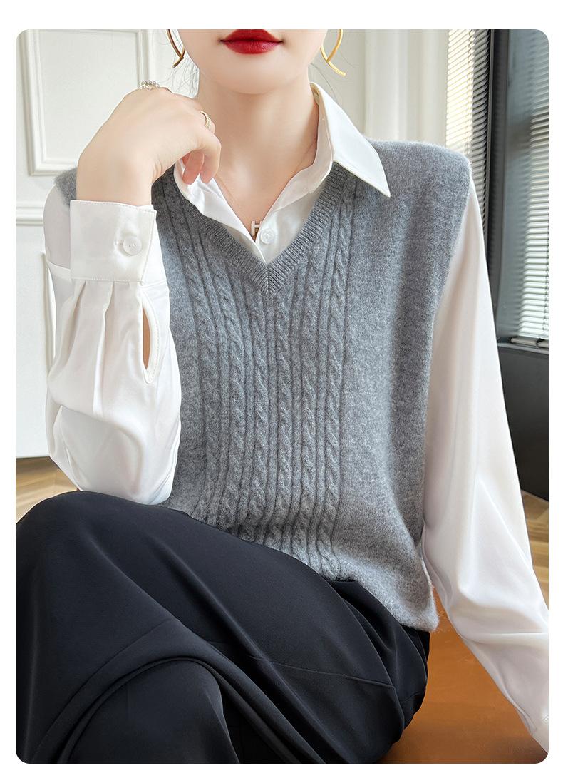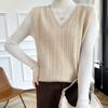 2024 Otoño e Invierno Nuevo Chaleco de Lana Pura Elegante Top de Moda Chaleco sin Mangas Suéter de Punto Apilado con Cuello en V para Mujer