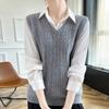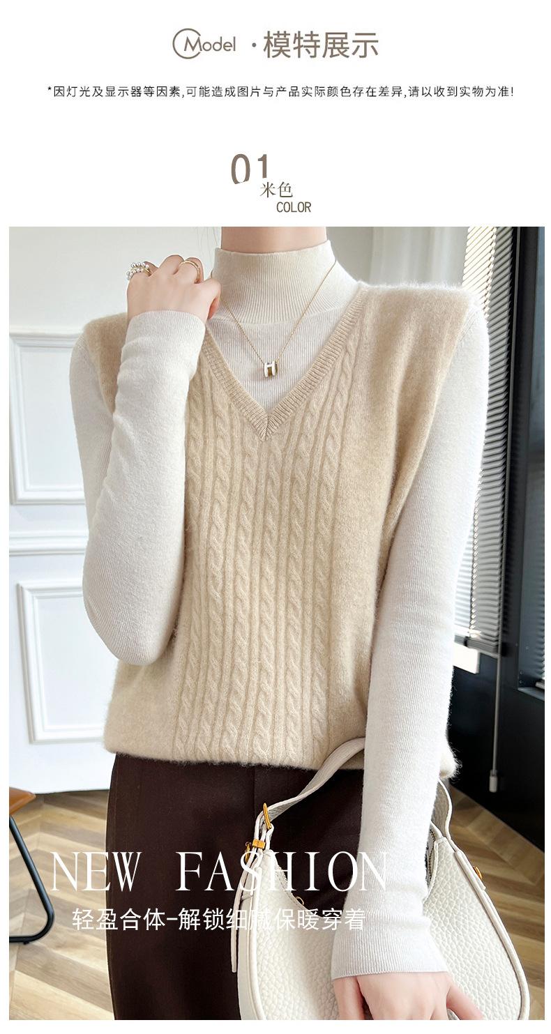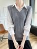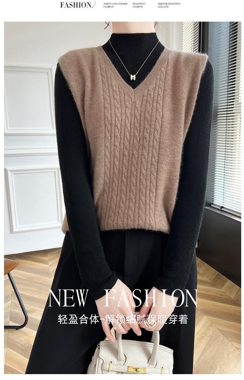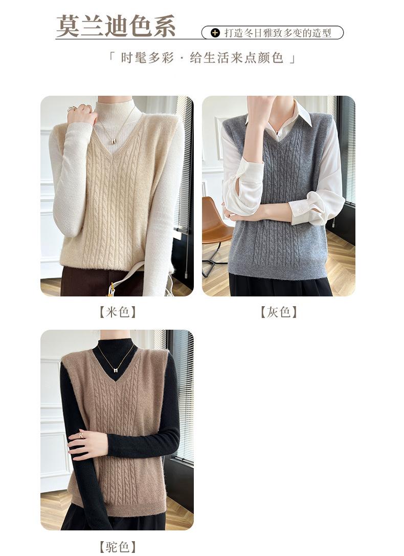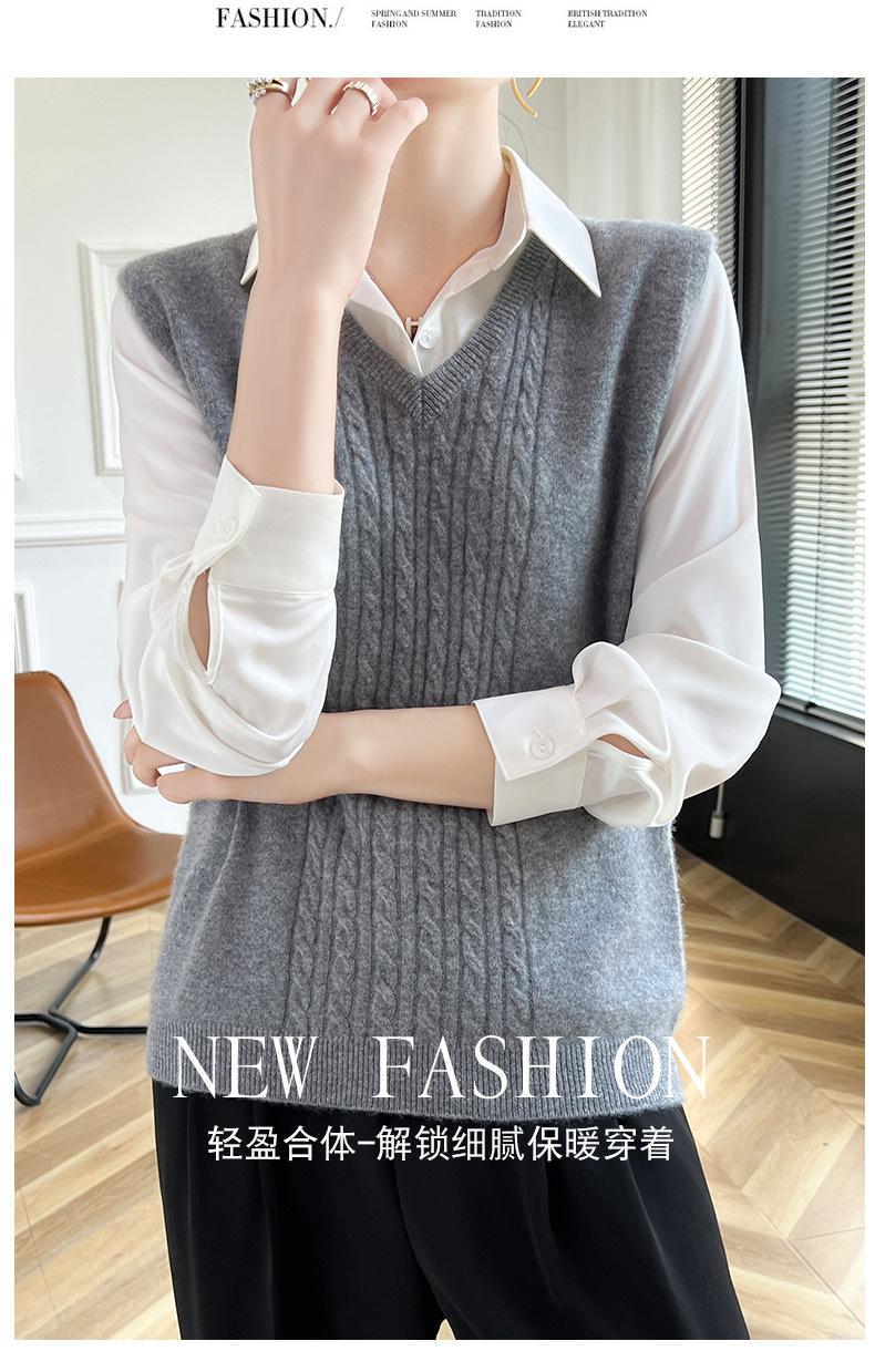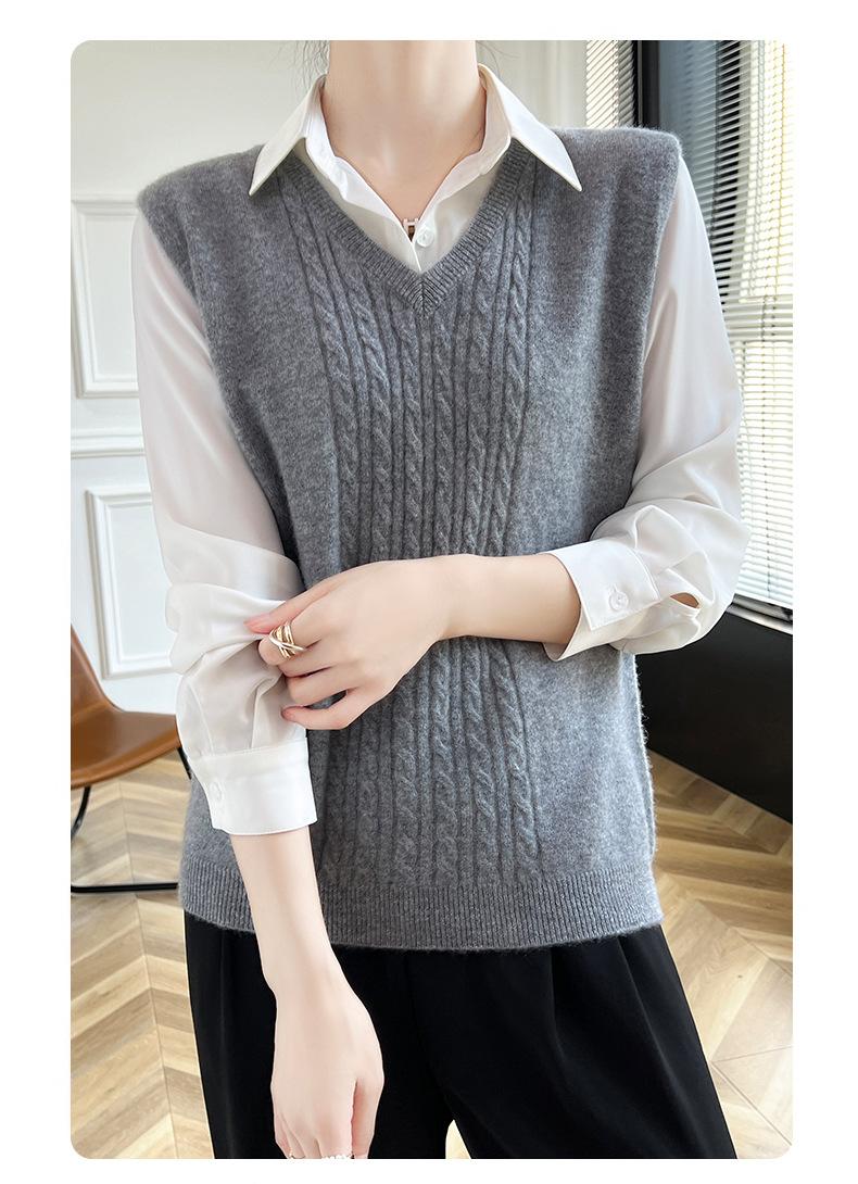 2024 Otoño e Invierno Nuevo Chaleco de Lana Pura Elegante Top de Moda Chaleco sin Mangas Suéter de Punto Apilado con Cuello en V para Mujer