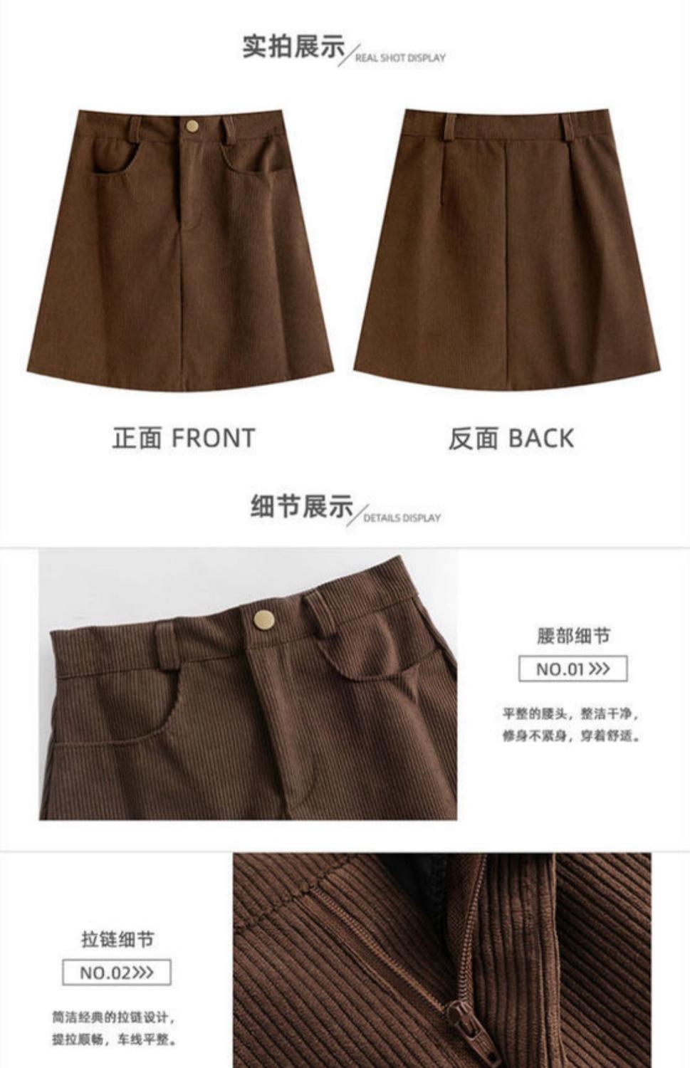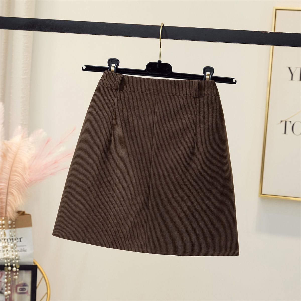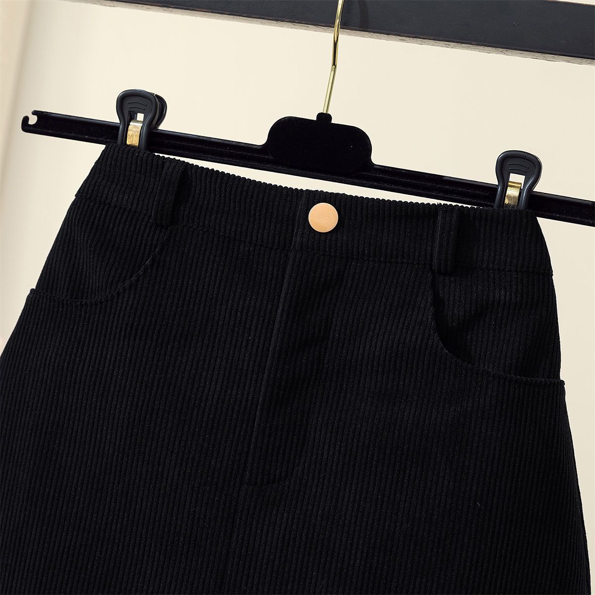 Falda de pana para chica gordita de talla grande Otoño/Invierno 2024 Cintura alta Adelgazante Antideslizante Falda A Negra Falda de cadera