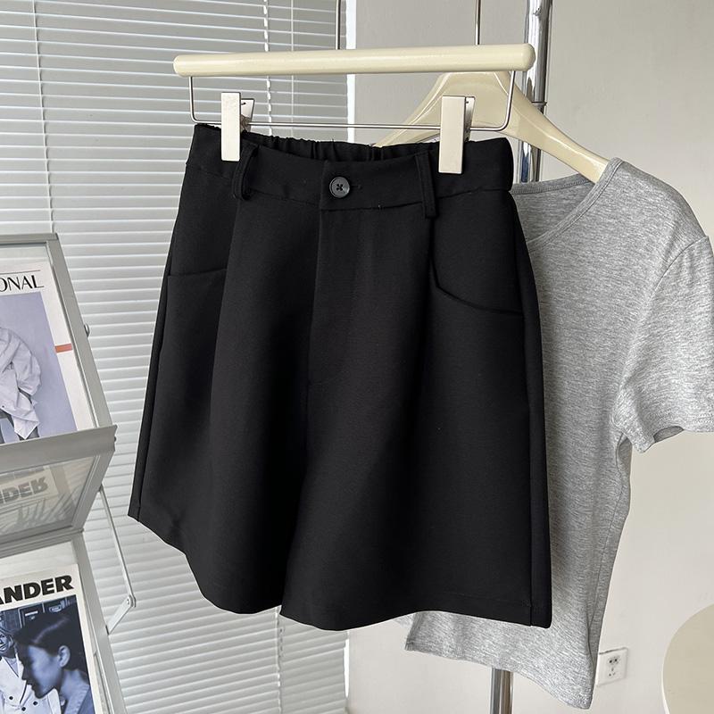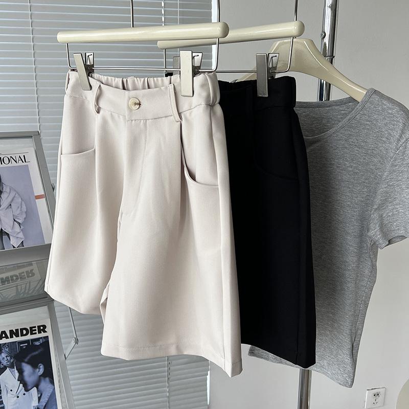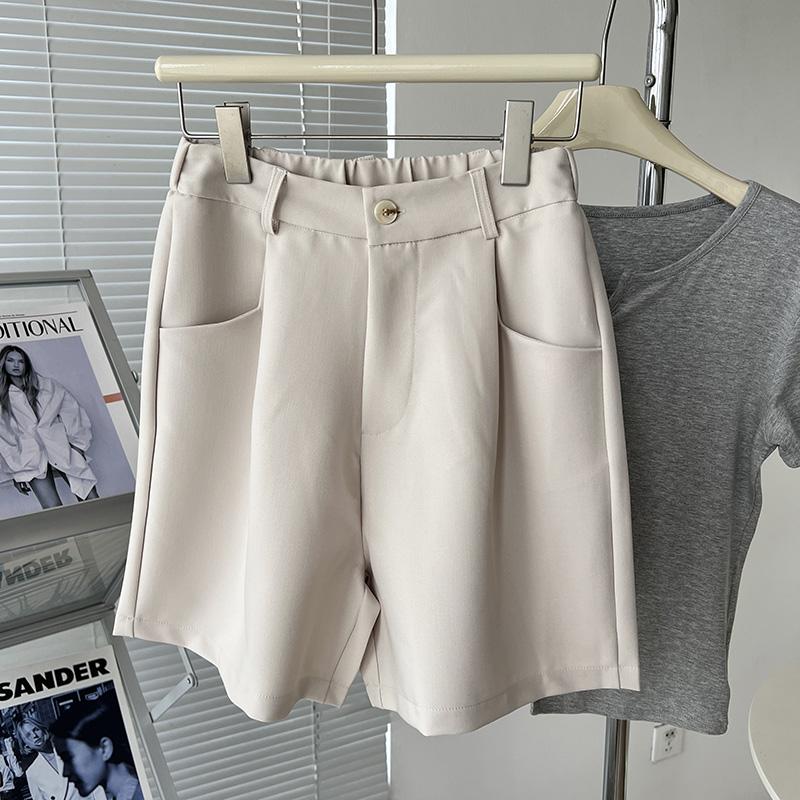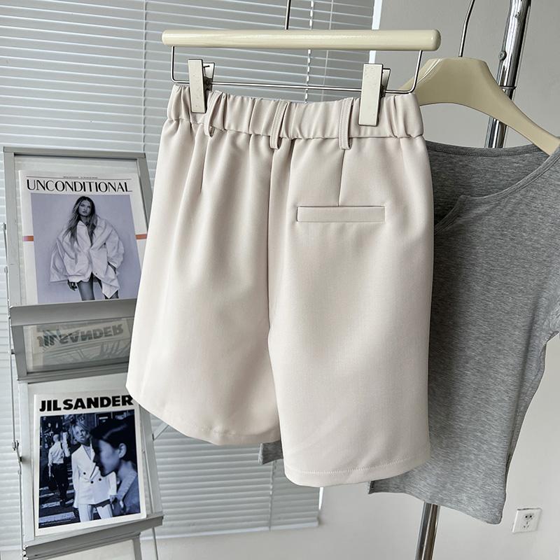 Pantalones cortos de verano para mujer, finos, semielásticos, de cintura alta, adelgazantes, holgados, de pierna ancha, ajustados, informales, de pierna recta