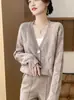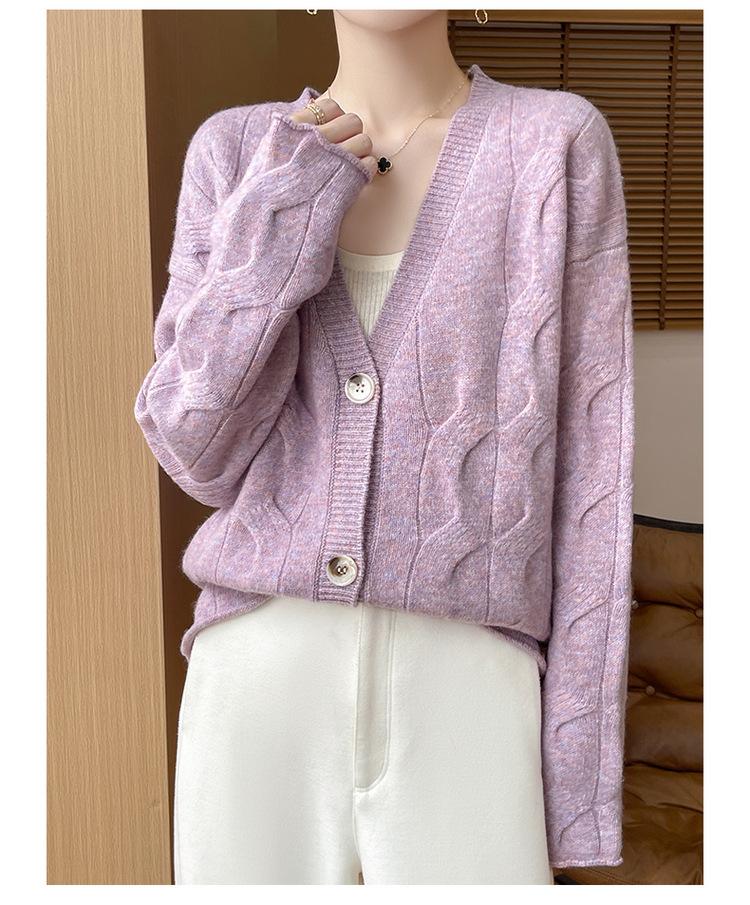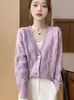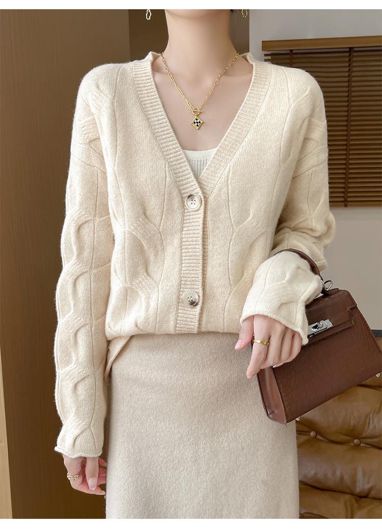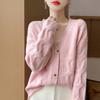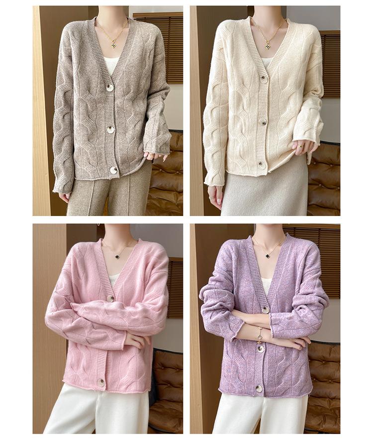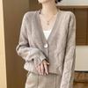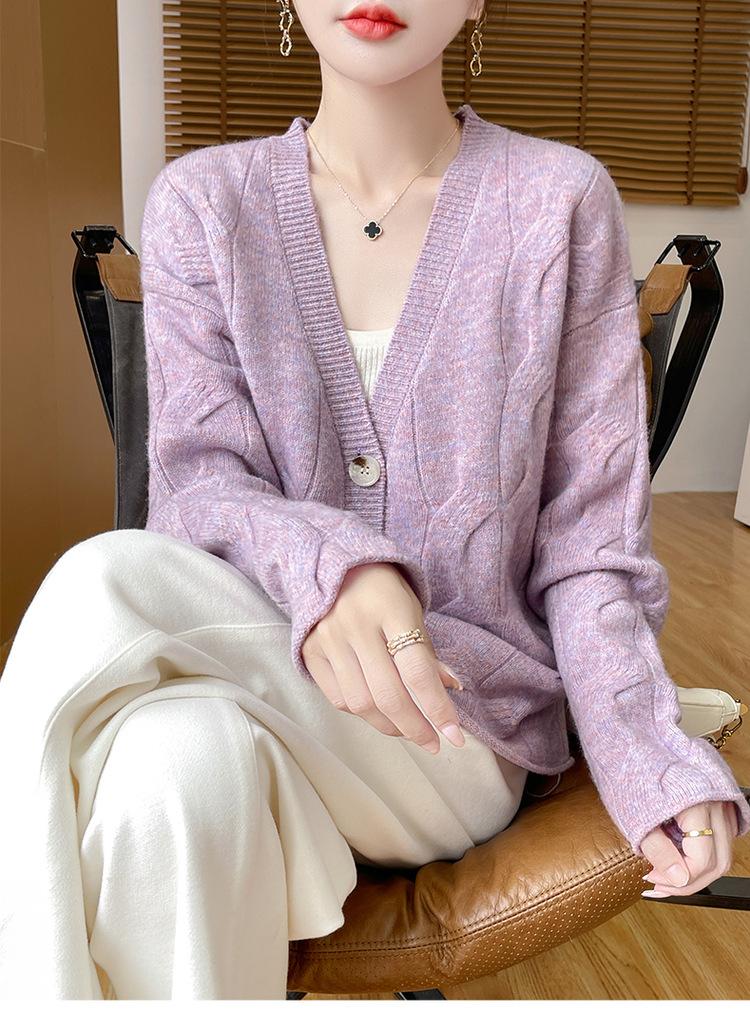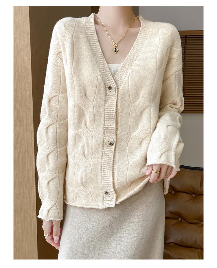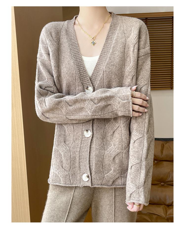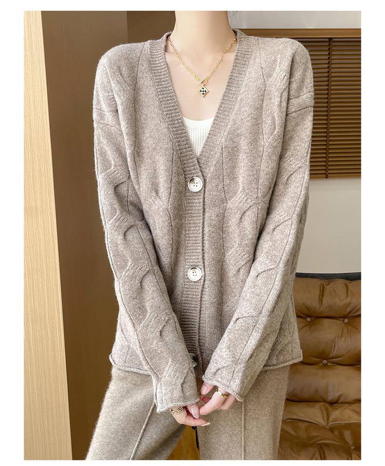 Cárdigan de punto con cuello en V para mujer, suéter de manga larga con giros de color liso, estilo informal, holgado, para otoño e invierno.