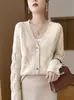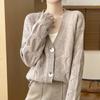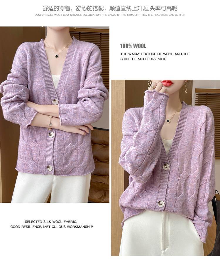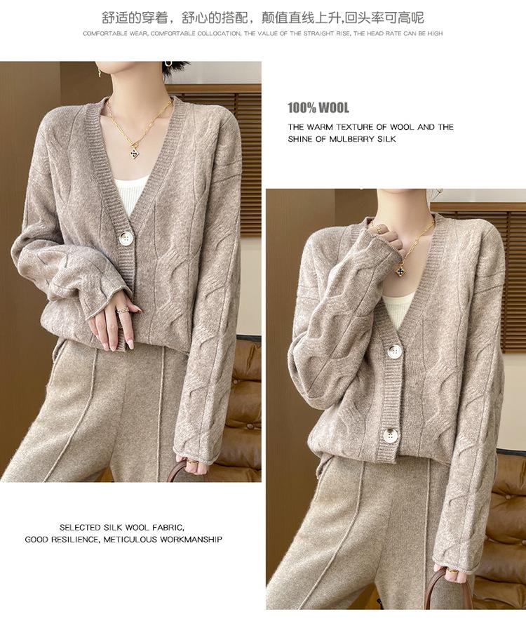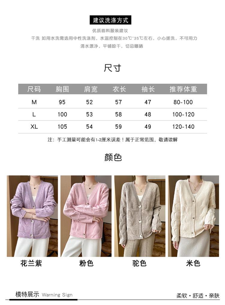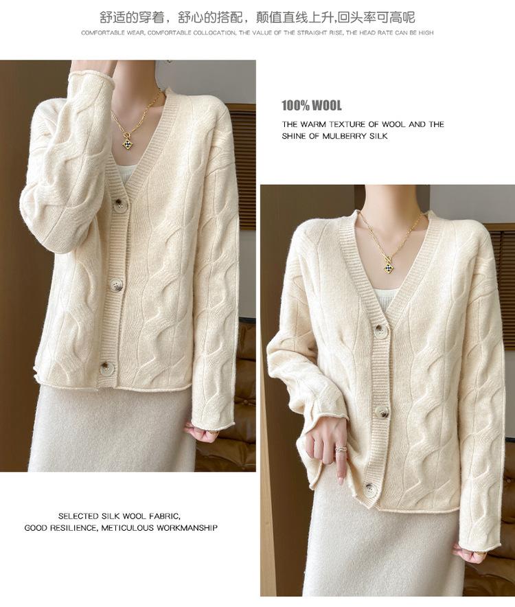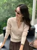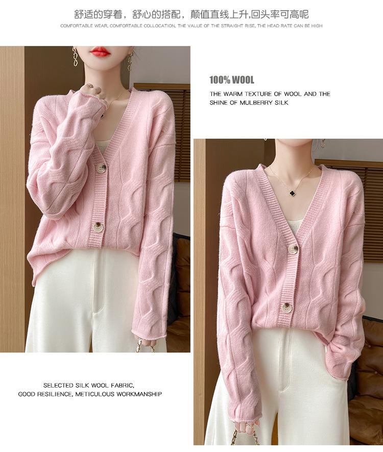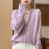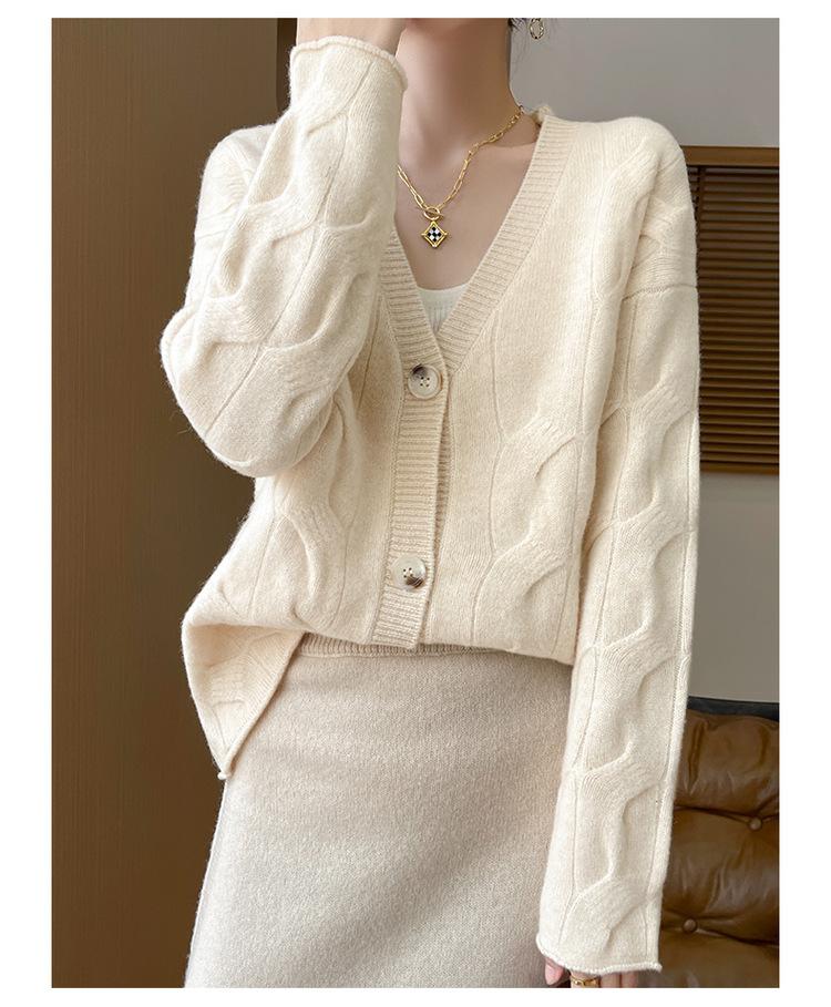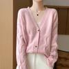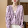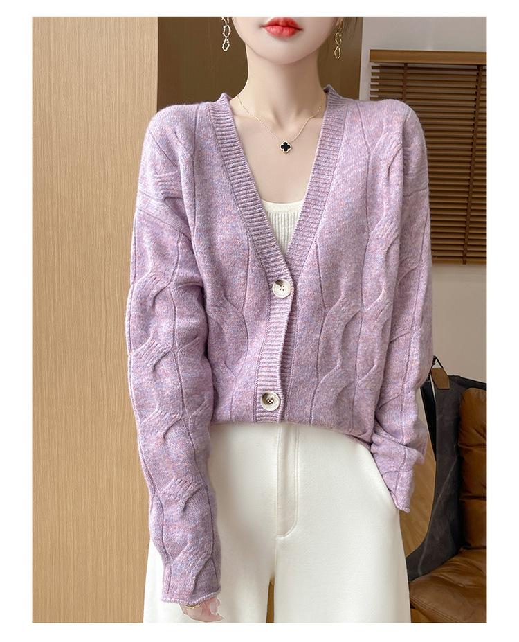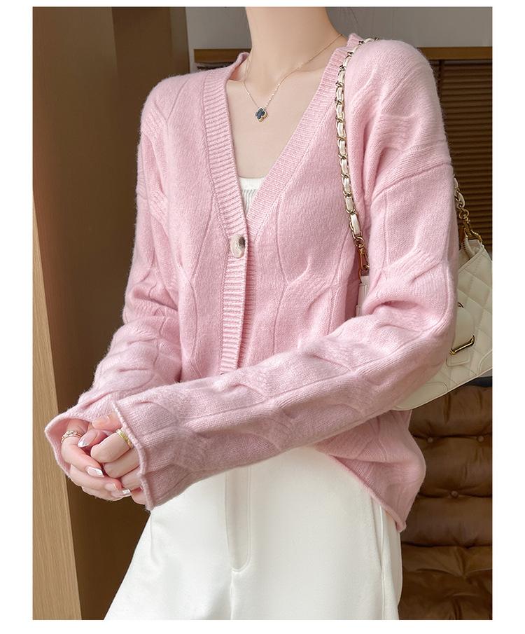 Cárdigan de punto con cuello en V para mujer, suéter de manga larga con giros de color liso, estilo informal, holgado, para otoño e invierno.