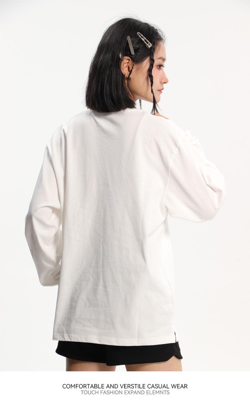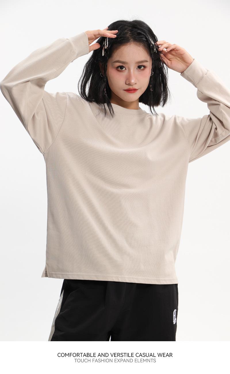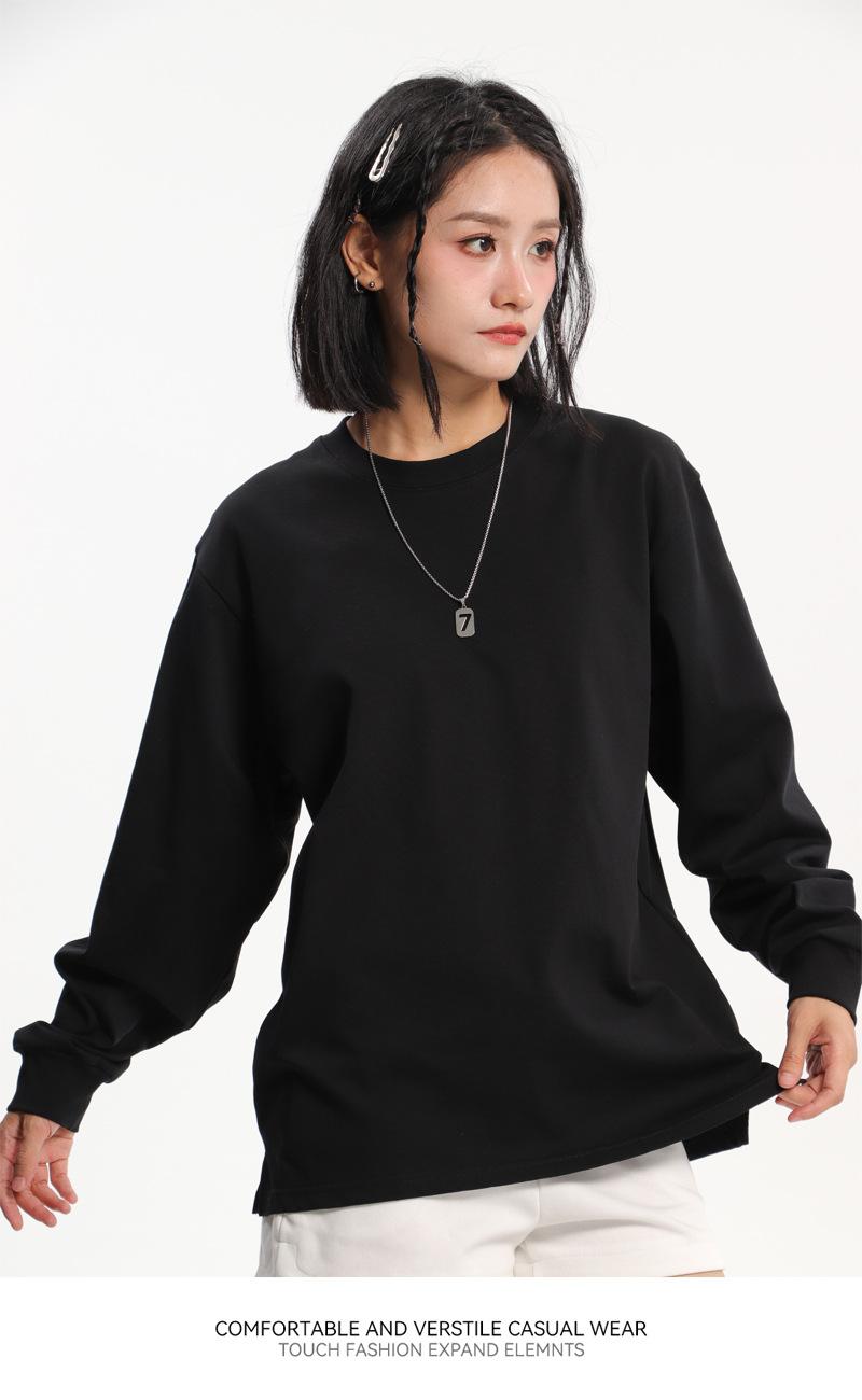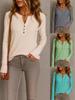 VINNIE Camiseta de manga larga con dobladillo suelto y abertura para mujer, primavera y otoño 2024, nueva camiseta informal de algodón con parte inferior