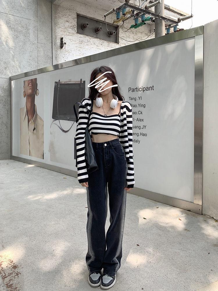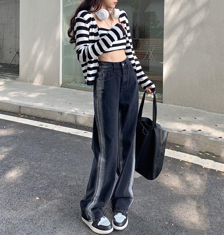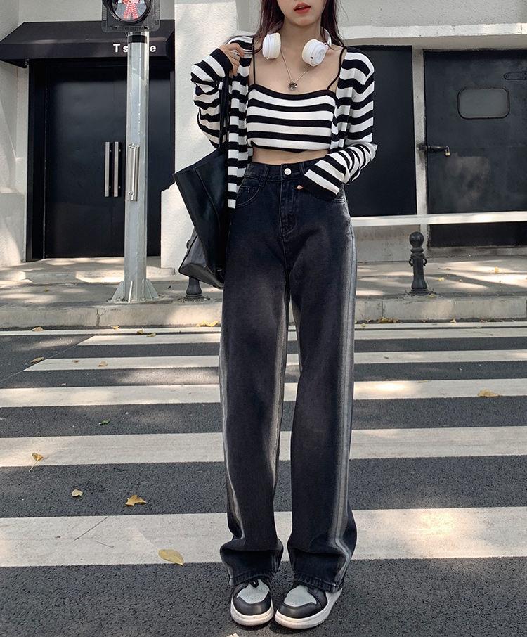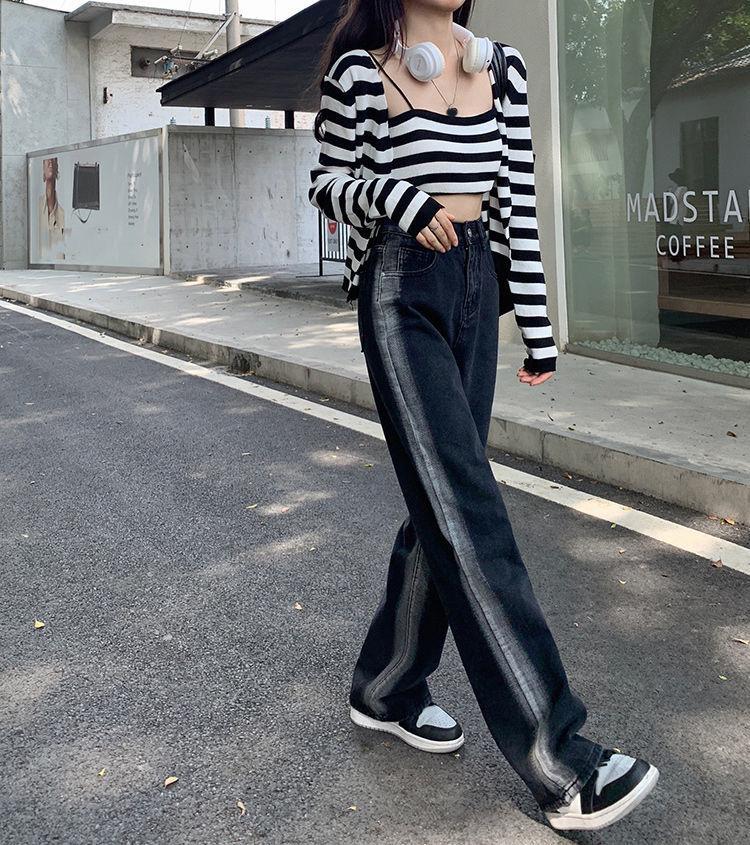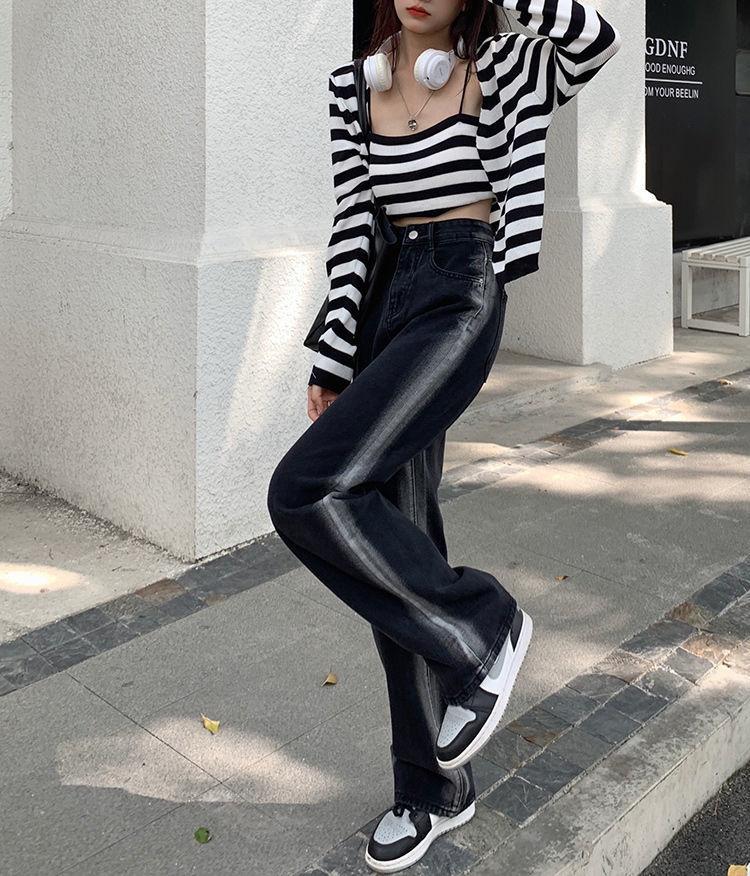 Jeans para Mujer Rectos Sueltos Primavera 2022 Nuevo Cintura Alta Slim Negro Degradado Sumergido Pantalones de Pierna Ancha