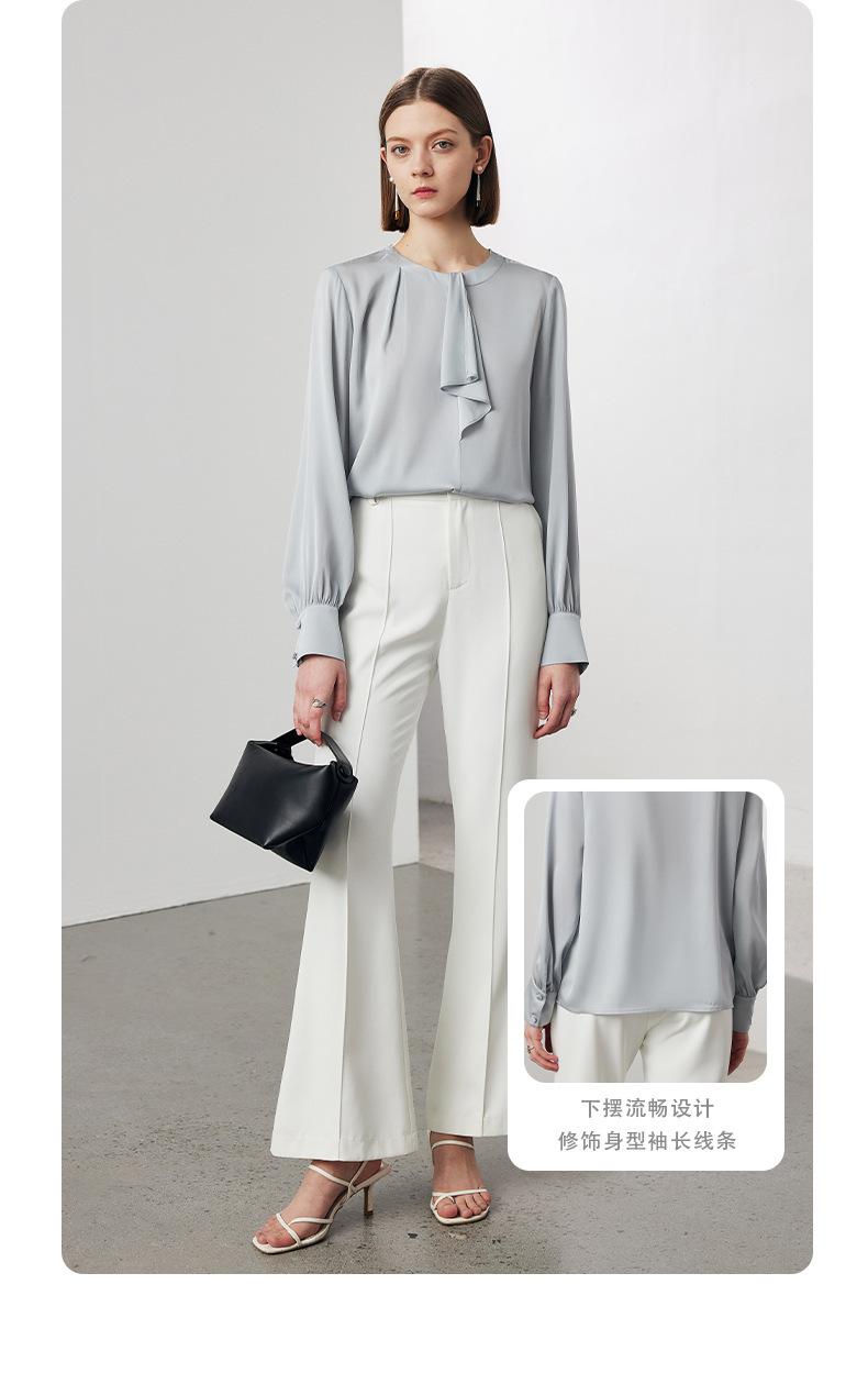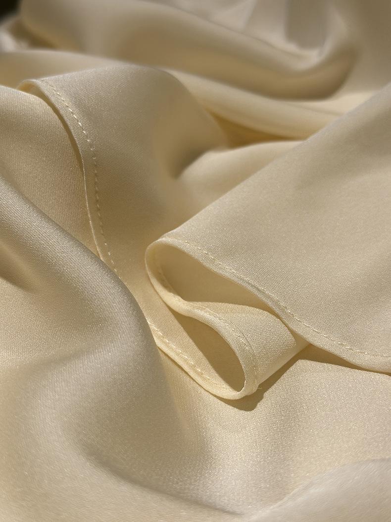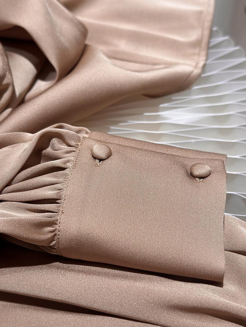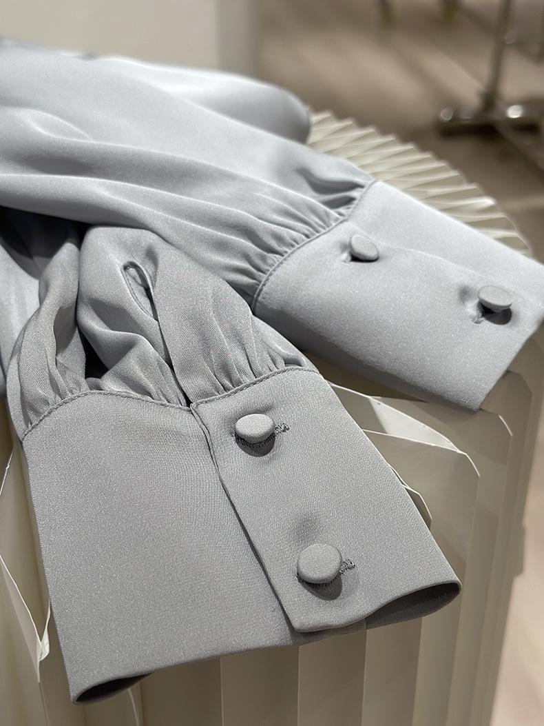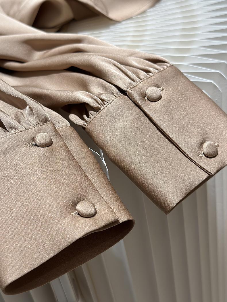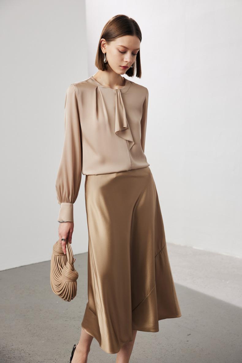 Camisa de seda de manga larga para mujer 2025 primavera y verano nuevo cuello redondo con lazo para ir al trabajo manga larga elástica doble joe seda de morera top