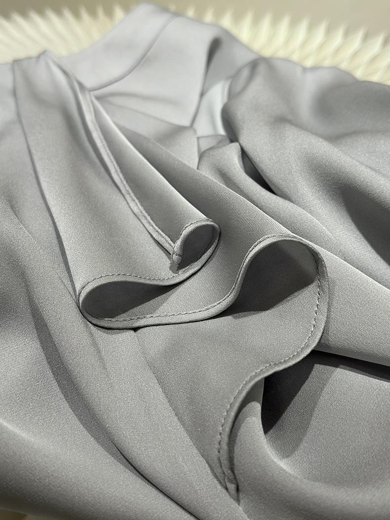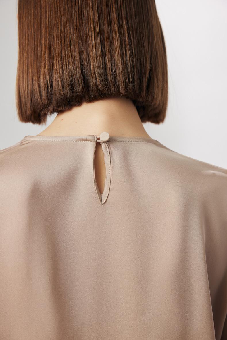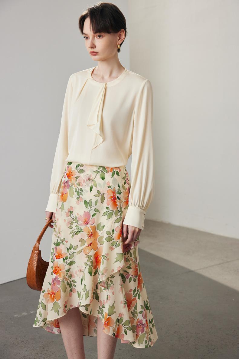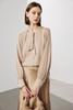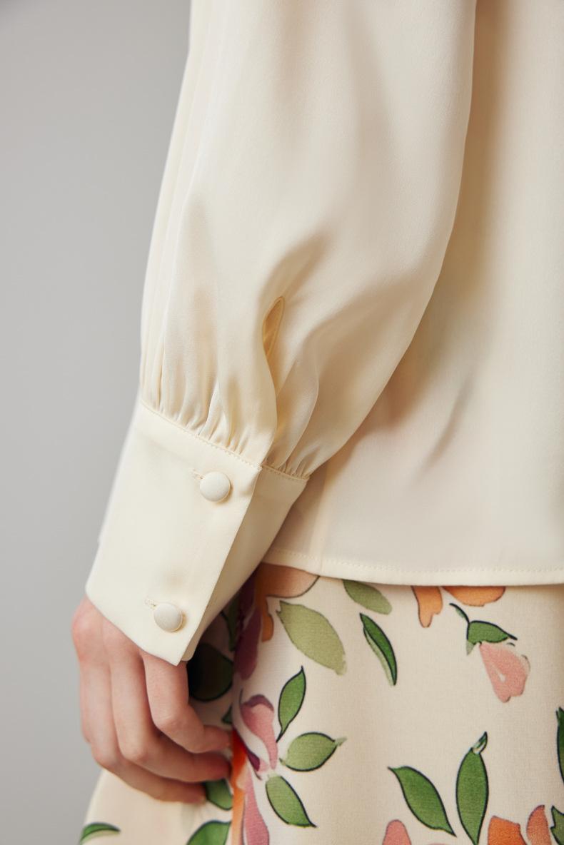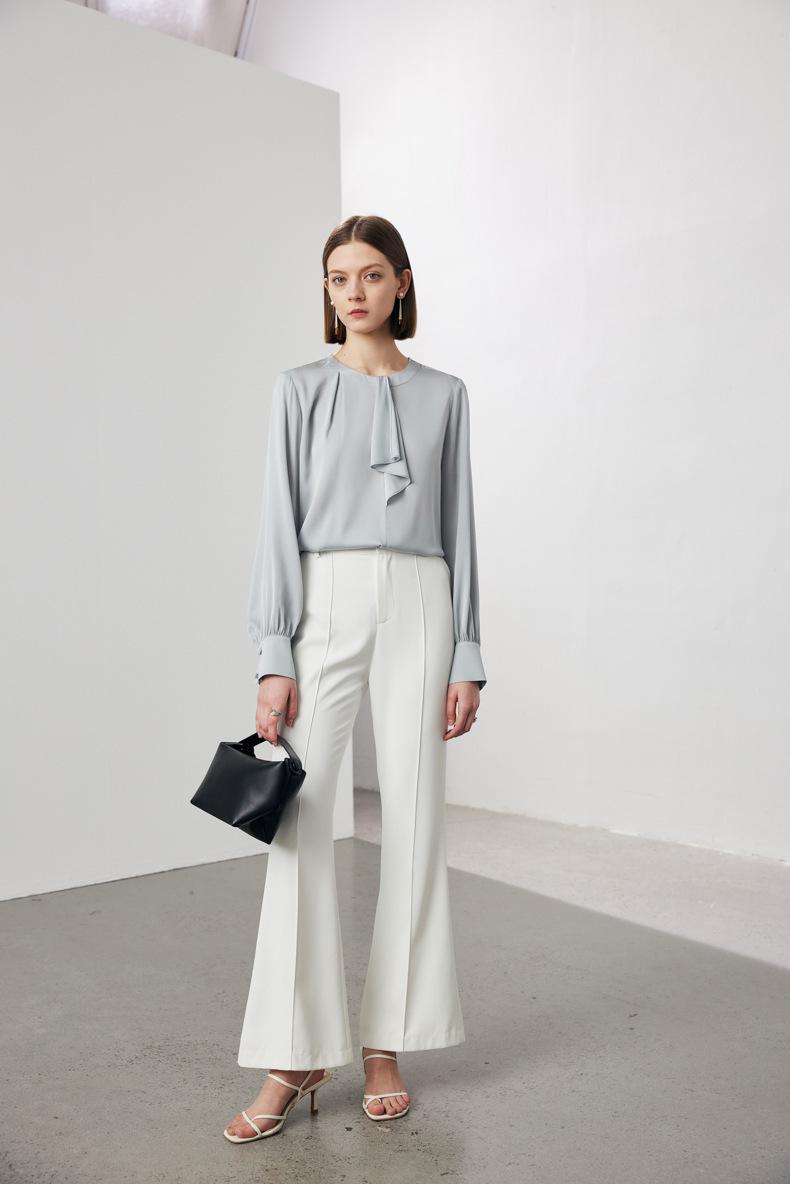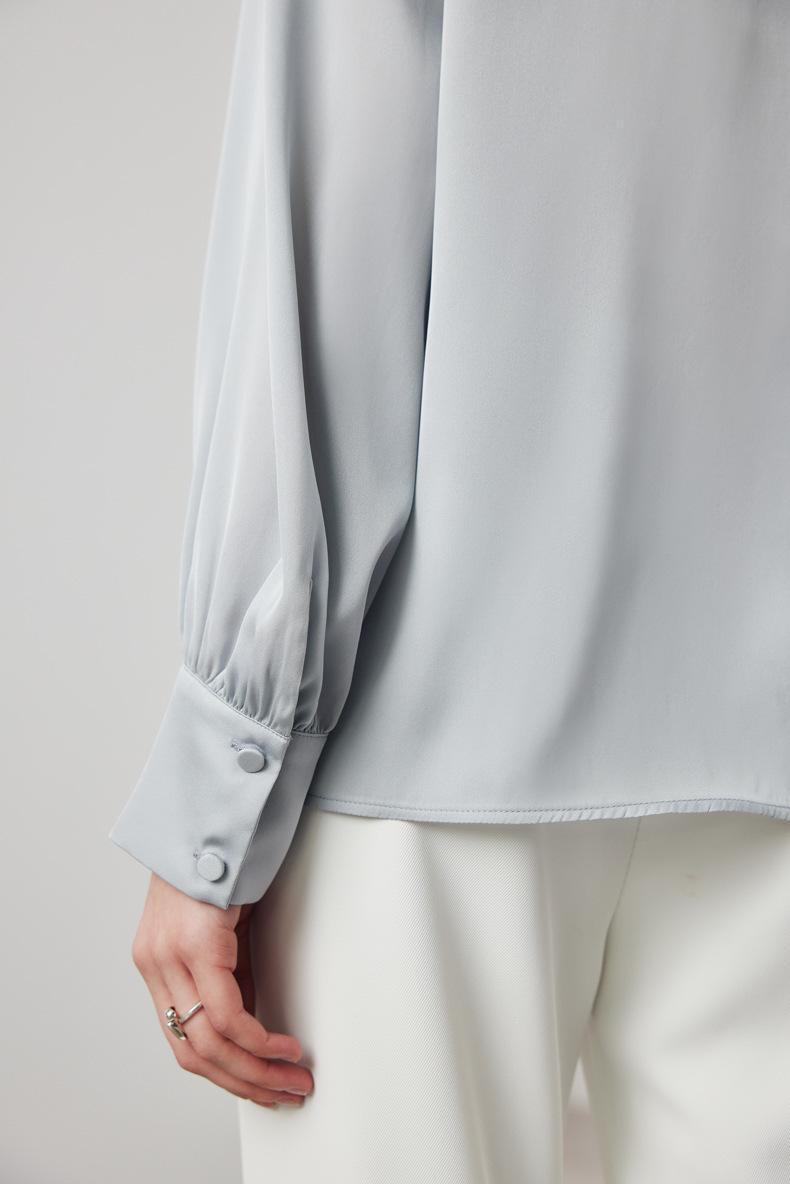 Camisa de seda de manga larga para mujer 2025 primavera y verano nuevo cuello redondo con lazo para ir al trabajo manga larga elástica doble joe seda de morera top