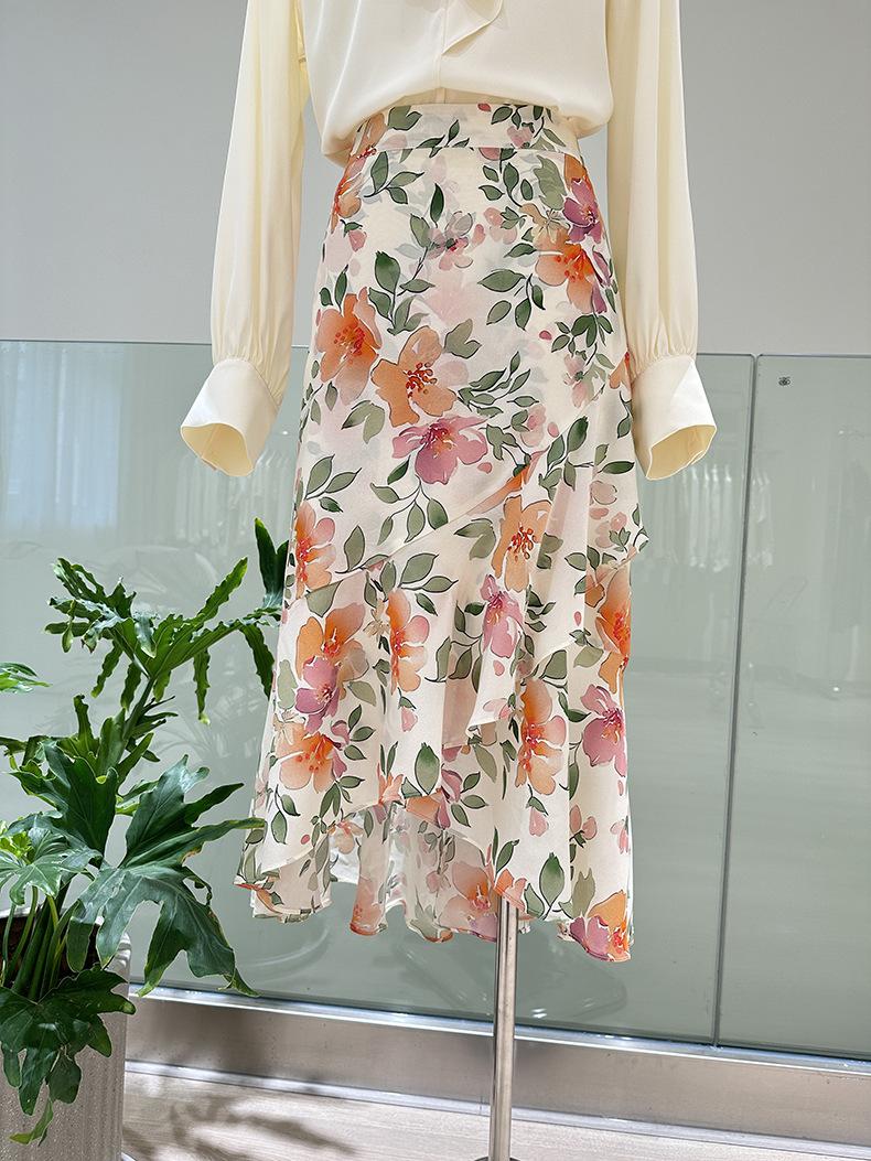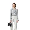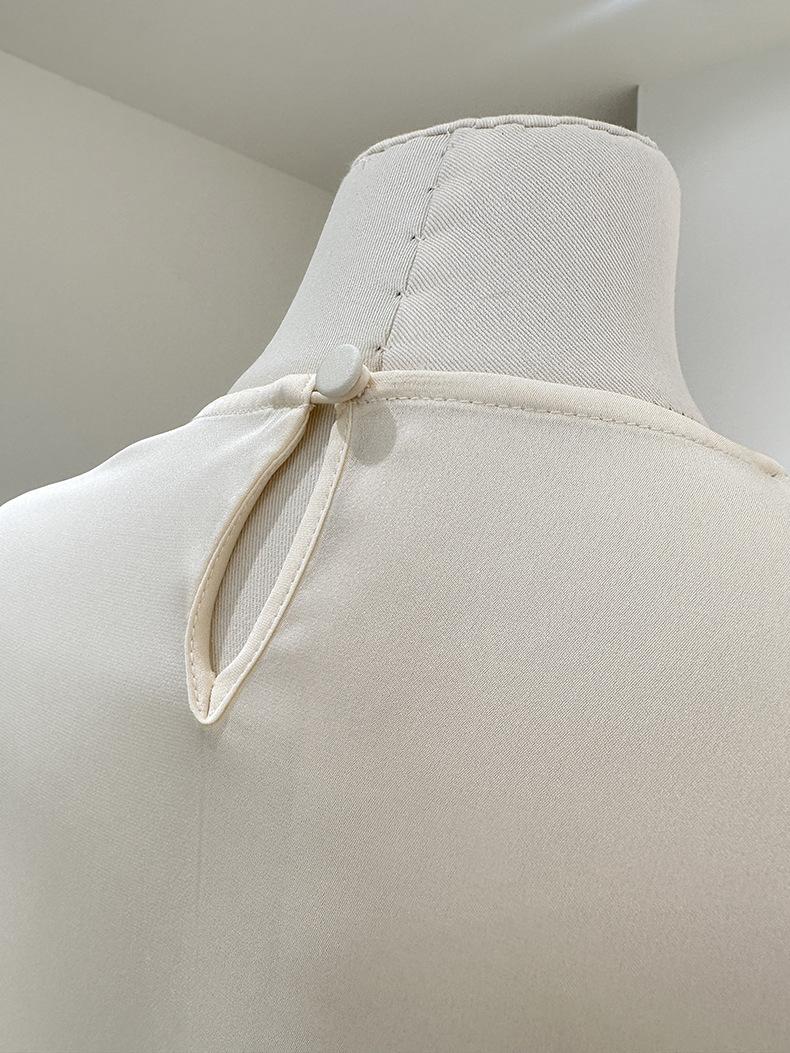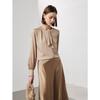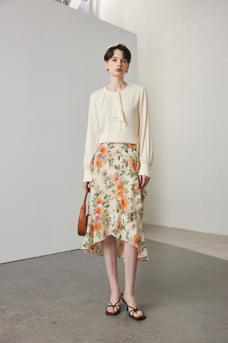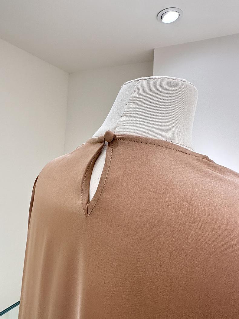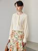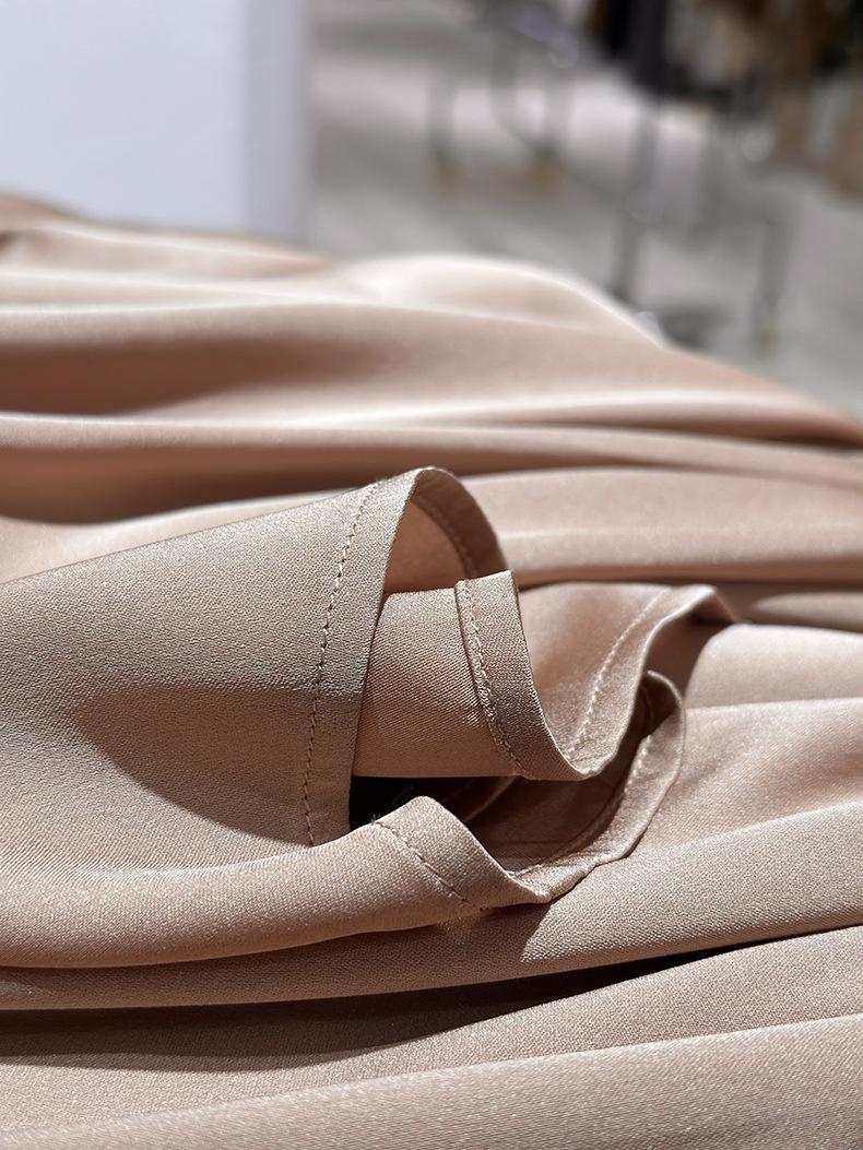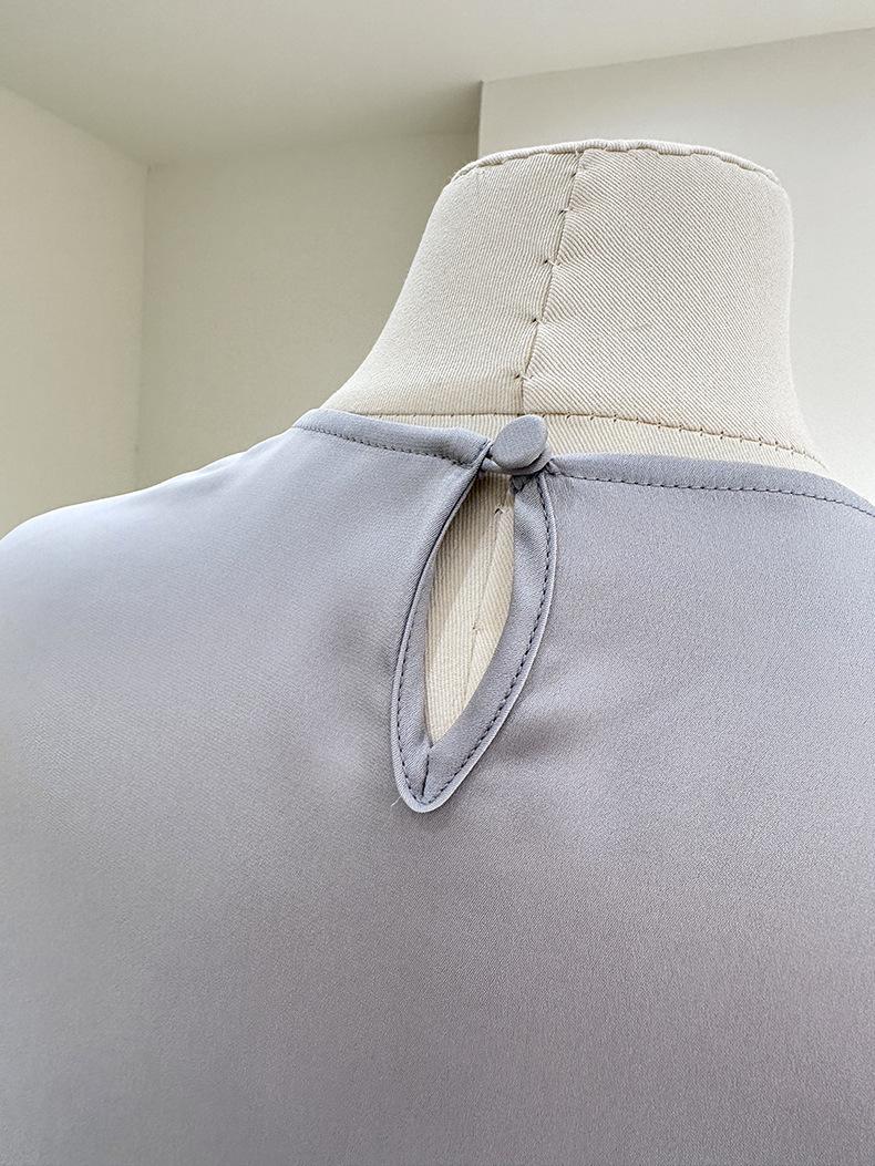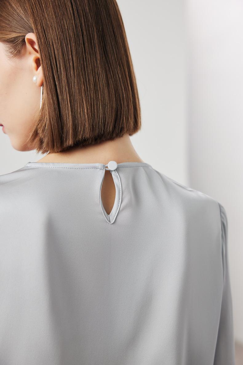 Camisa de seda de manga larga para mujer 2025 primavera y verano nuevo cuello redondo con lazo para ir al trabajo manga larga elástica doble joe seda de morera top