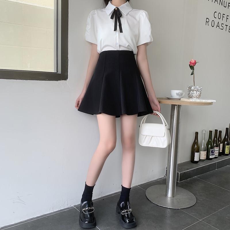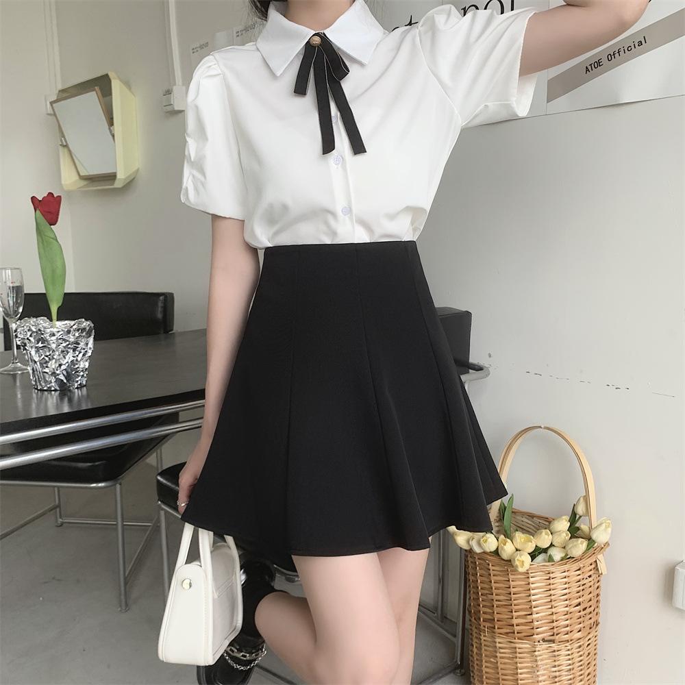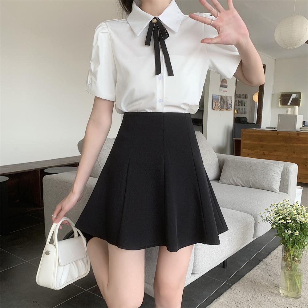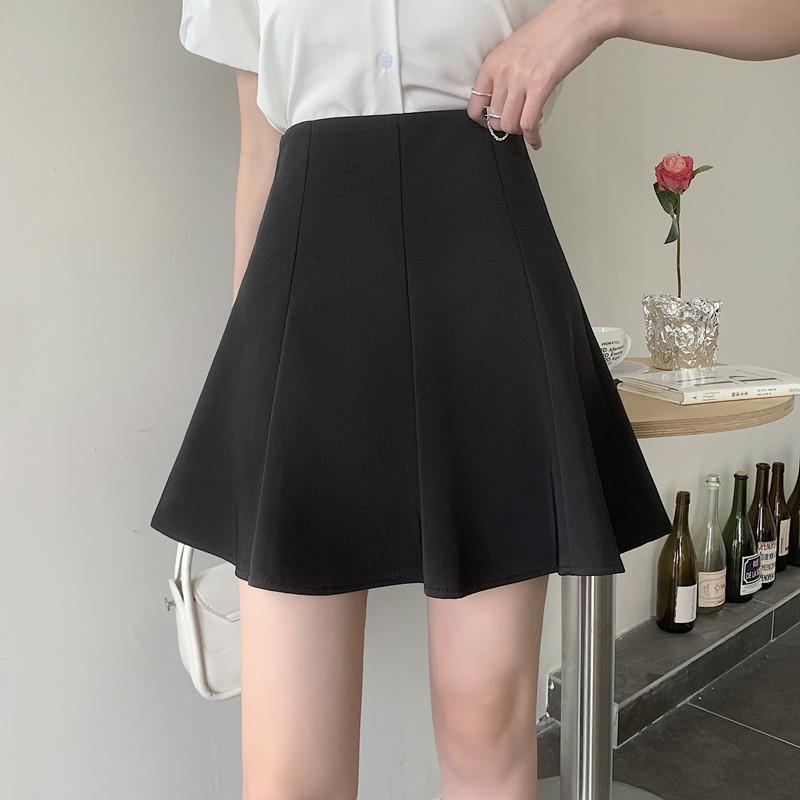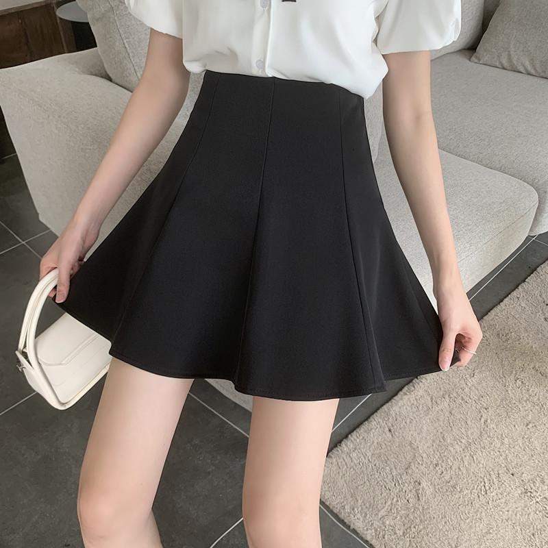 Falda plisada negra para mujer, verano 2024, nueva falda corta de cintura alta, falda tipo paraguas, traje ajustado, falda de corte A, talla grande