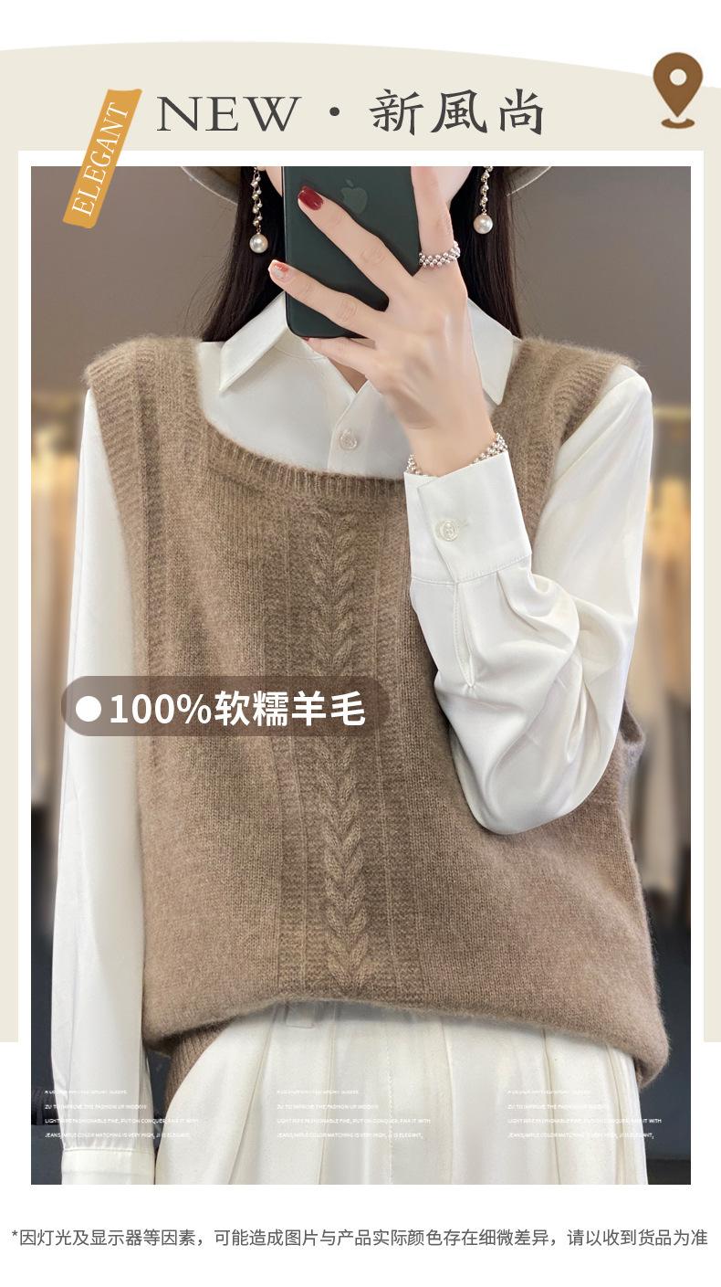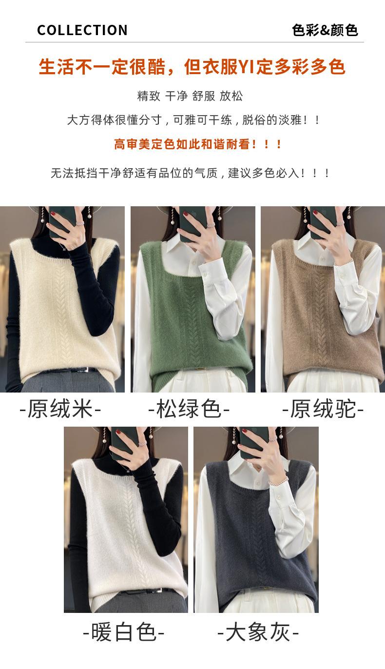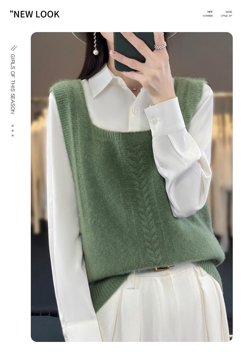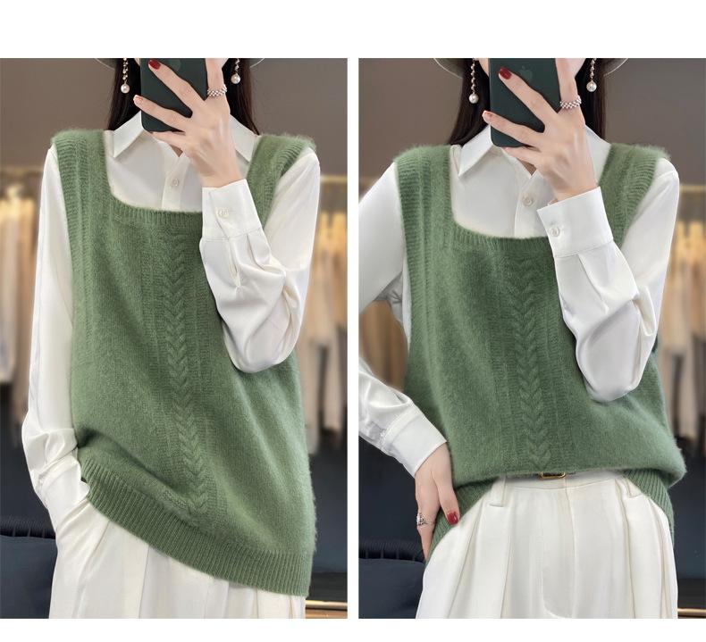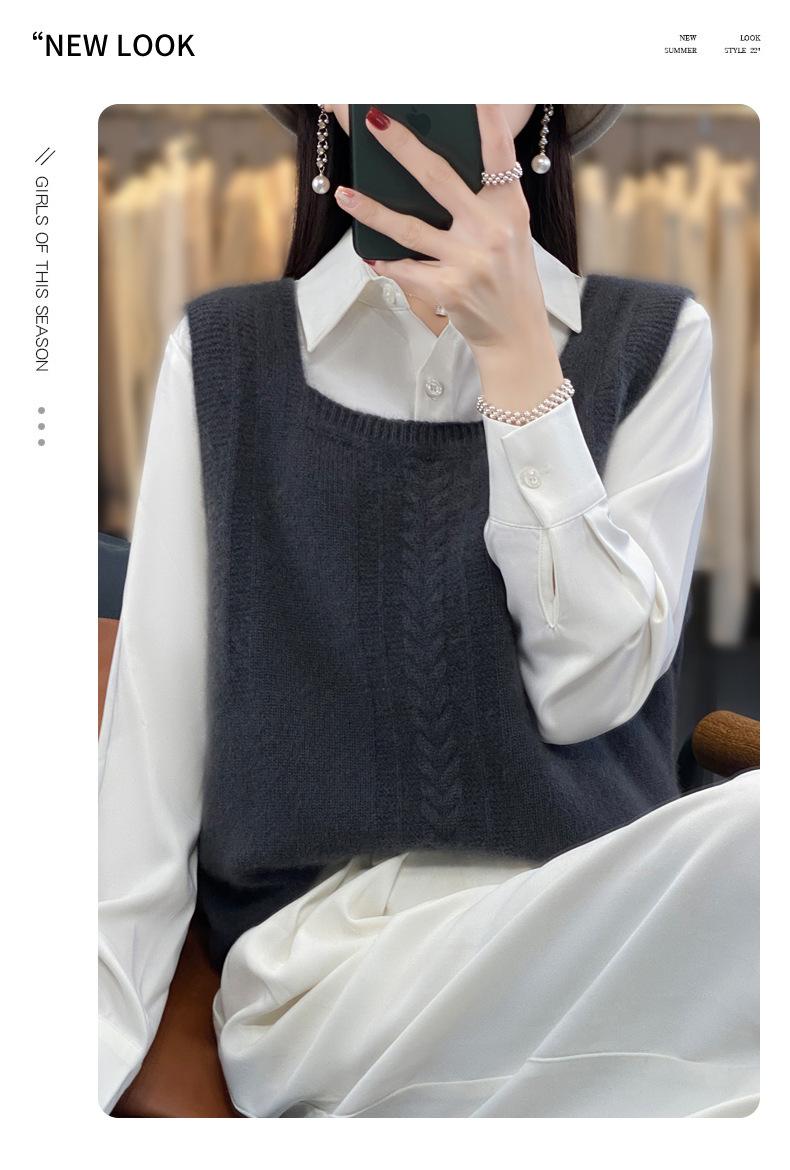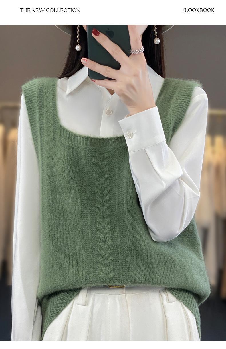 Chaleco de Punto para Mujer 24 Otoño e Invierno Nuevo Color Sólido Lana Chaleco Apilado Uso Versátil Cuello Cuadrado Sin Mangas Top Exterior