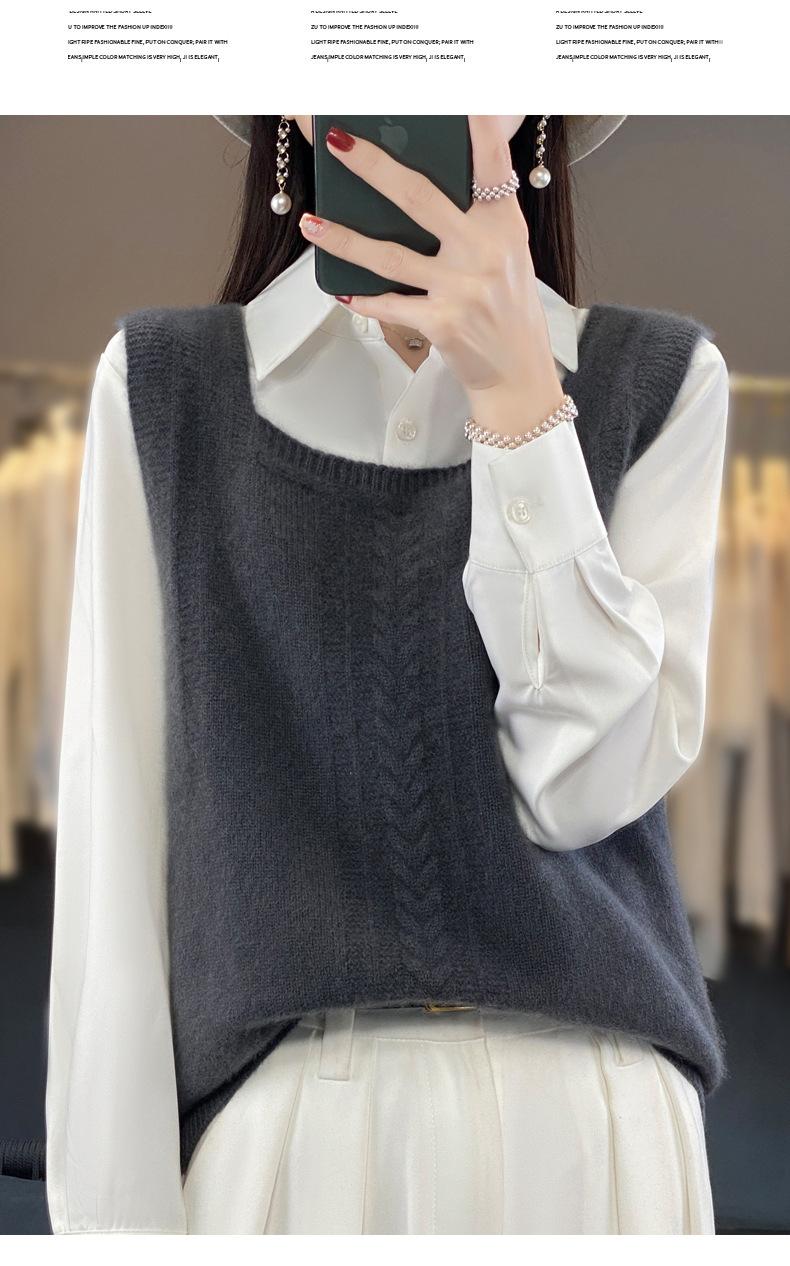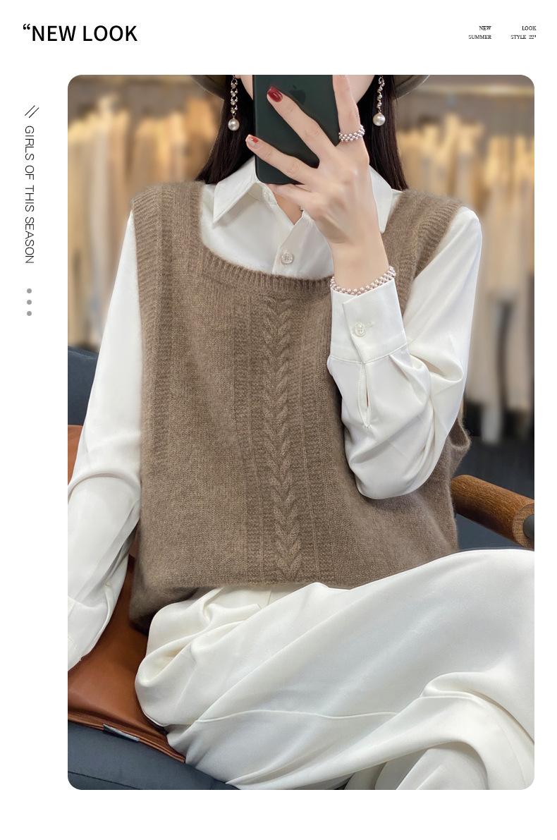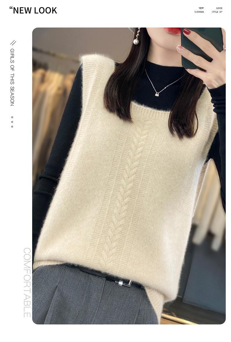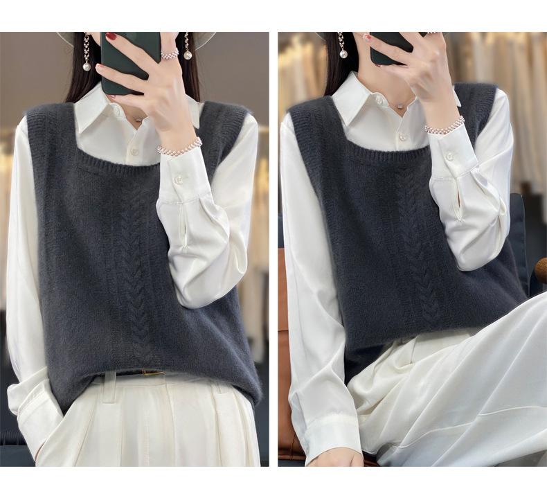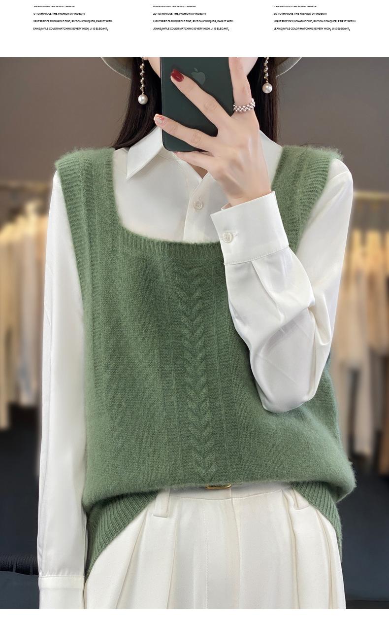Chaleco de Punto para Mujer 24 Otoño e Invierno Nuevo Color Sólido Lana Chaleco Apilado Uso Versátil Cuello Cuadrado Sin Mangas Top Exterior