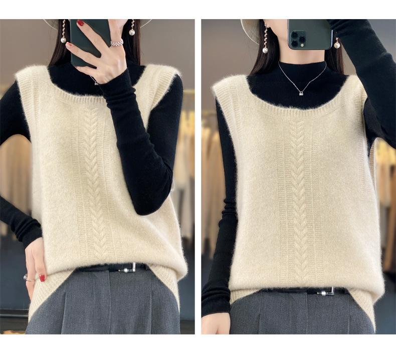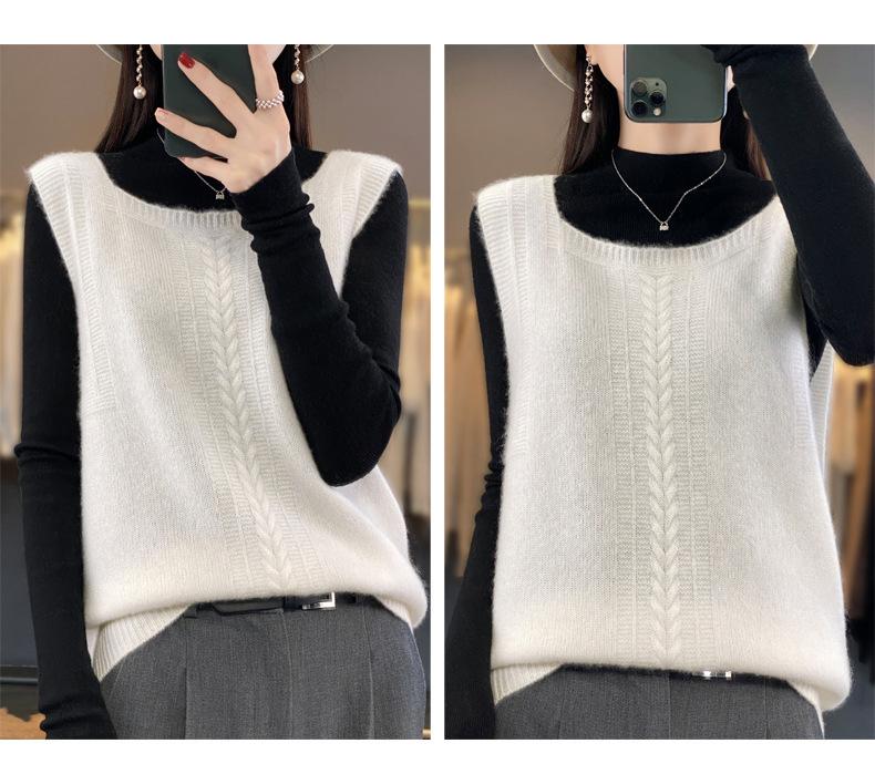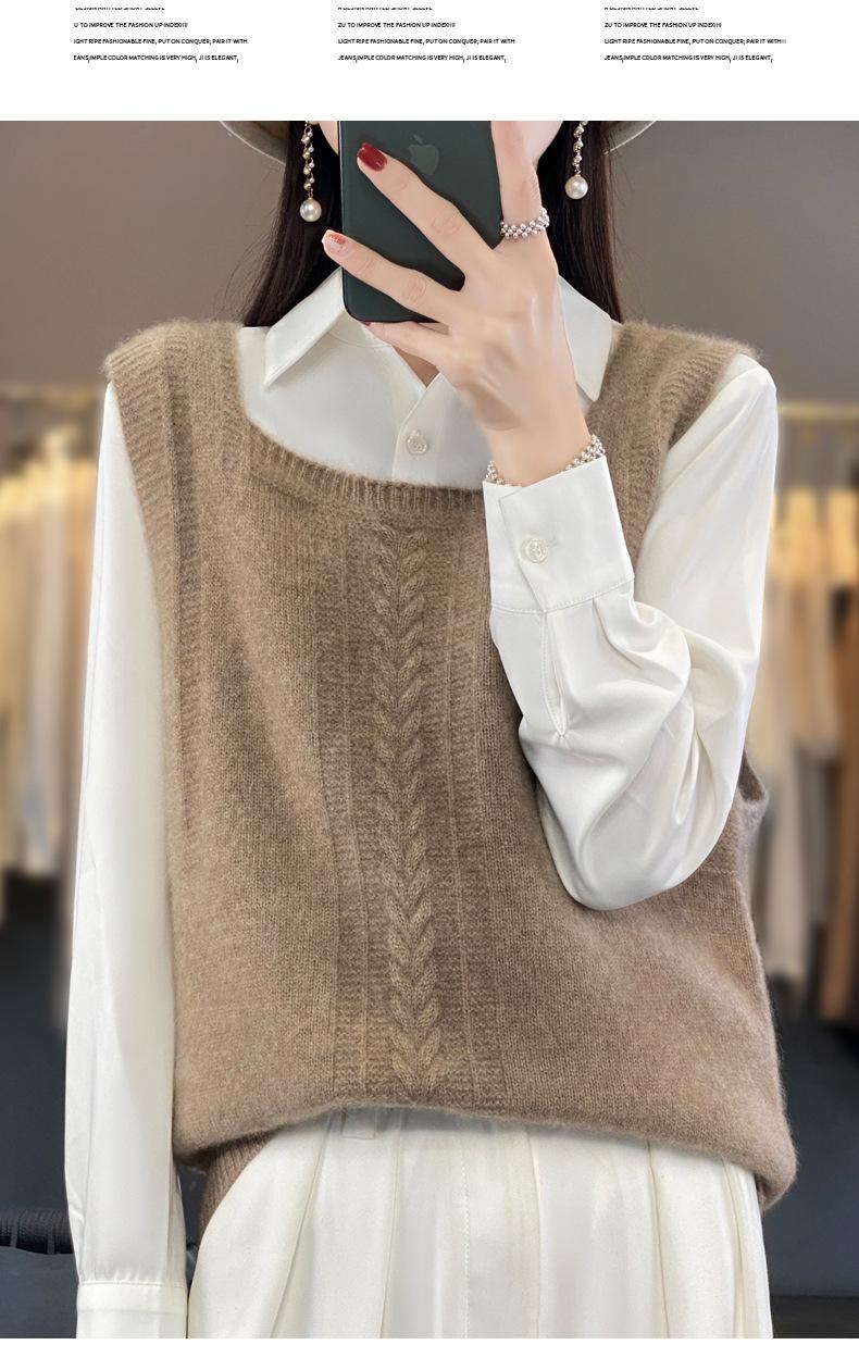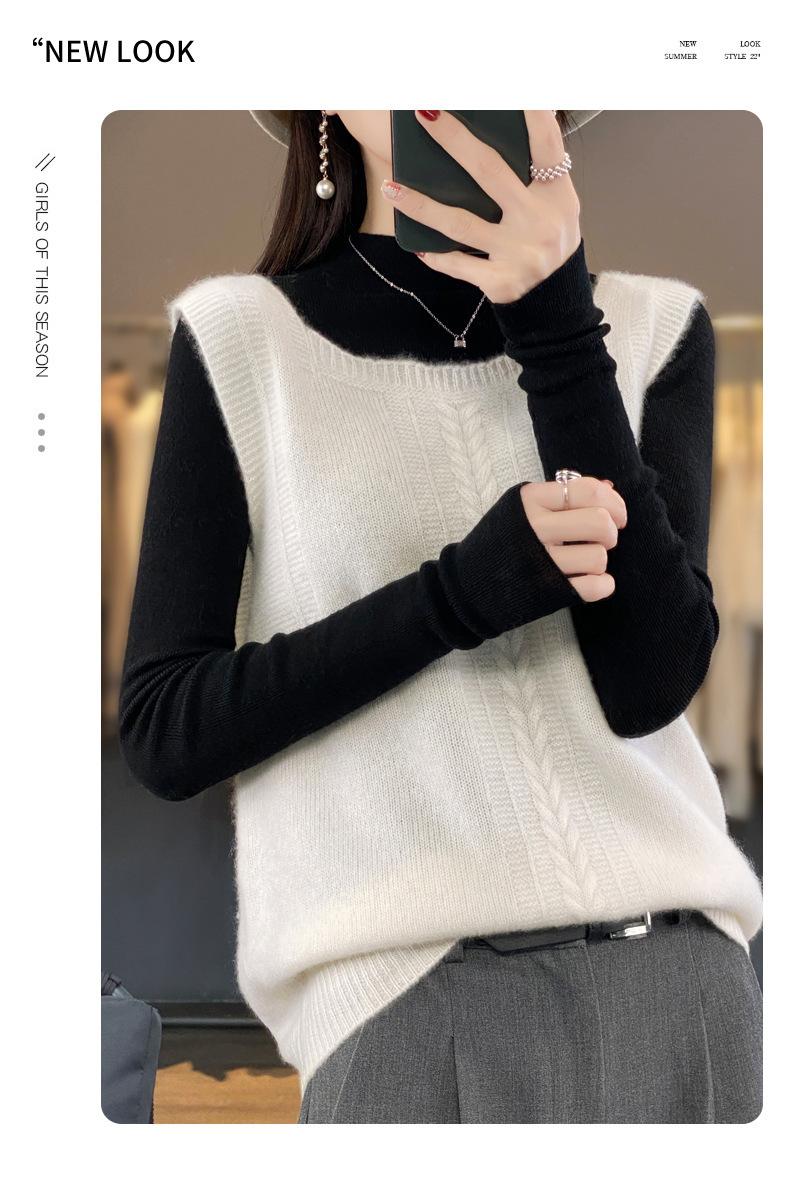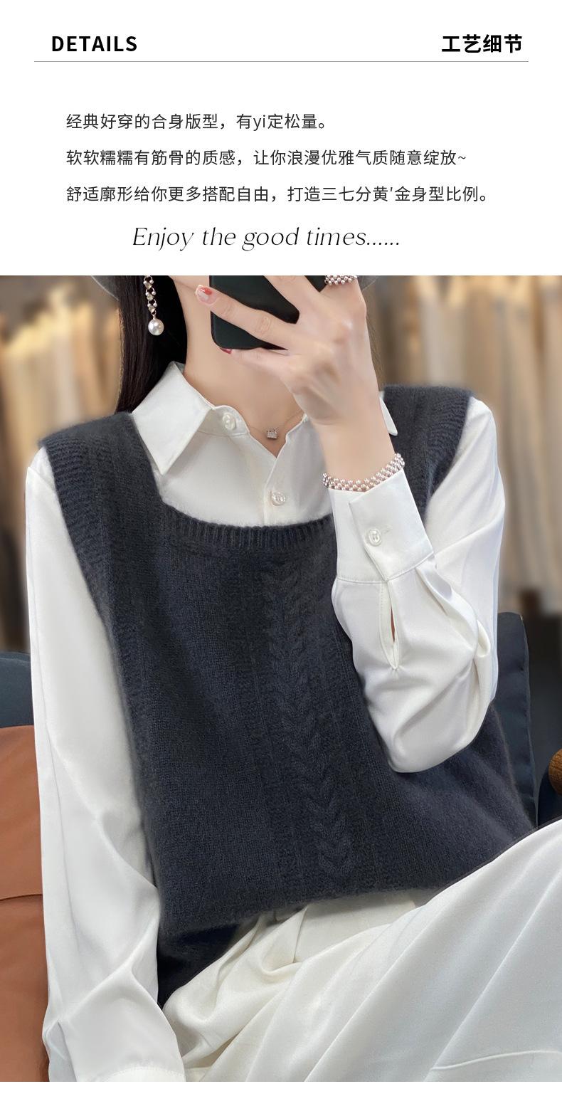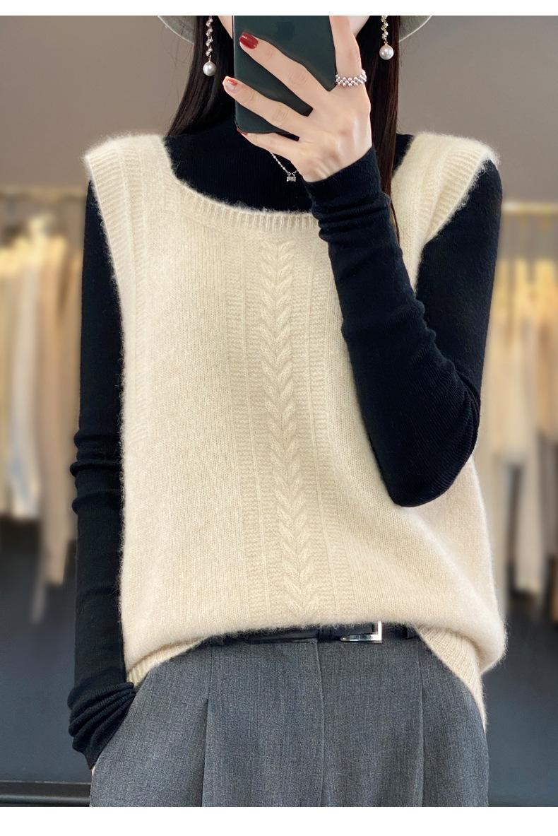 Chaleco de Punto para Mujer 24 Otoño e Invierno Nuevo Color Sólido Lana Chaleco Apilado Uso Versátil Cuello Cuadrado Sin Mangas Top Exterior
