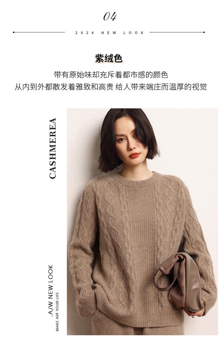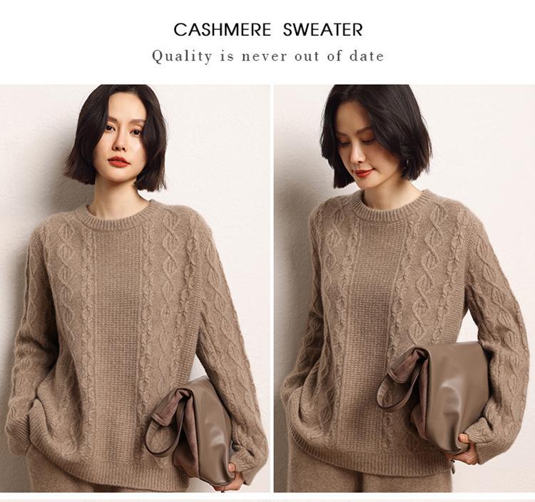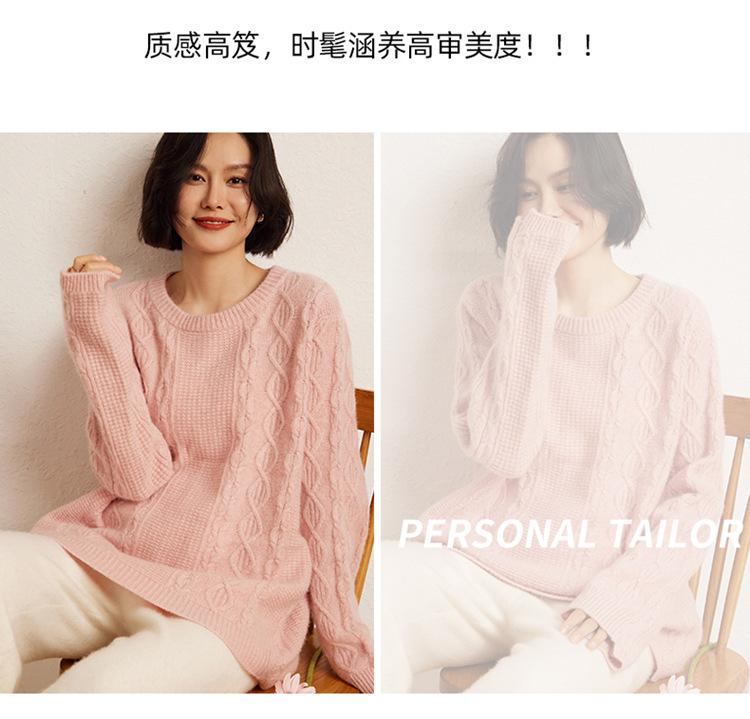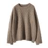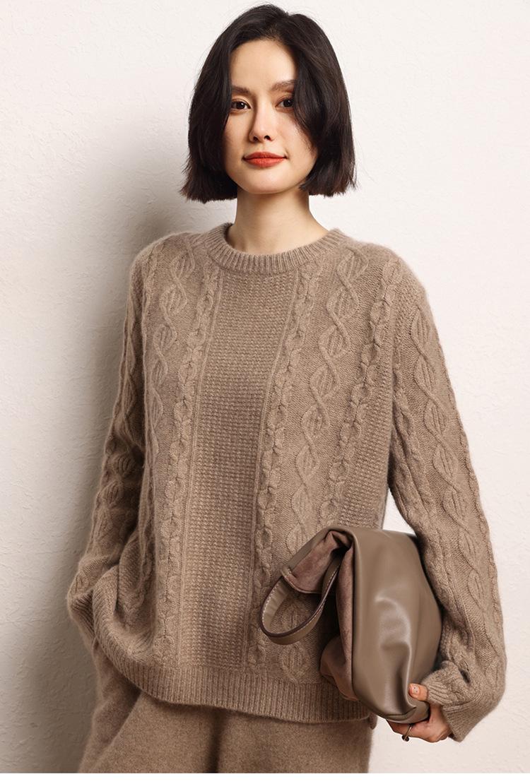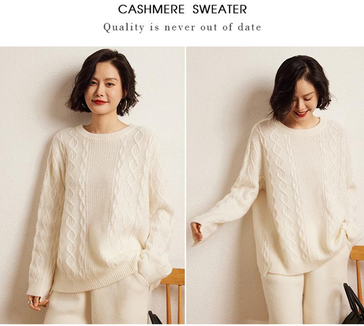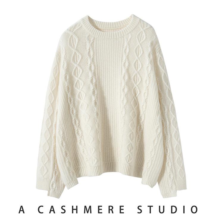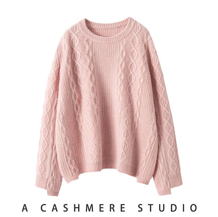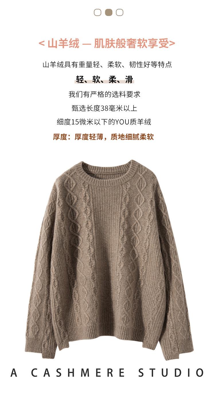 Cachemira 2025 Otoño e Invierno Nuevo Suéter de Punto de Fondo de Cable de Cuerpo Entero Estilo Holgazán Engrosado de Cuello Redondo Corto Suelto para Mujer