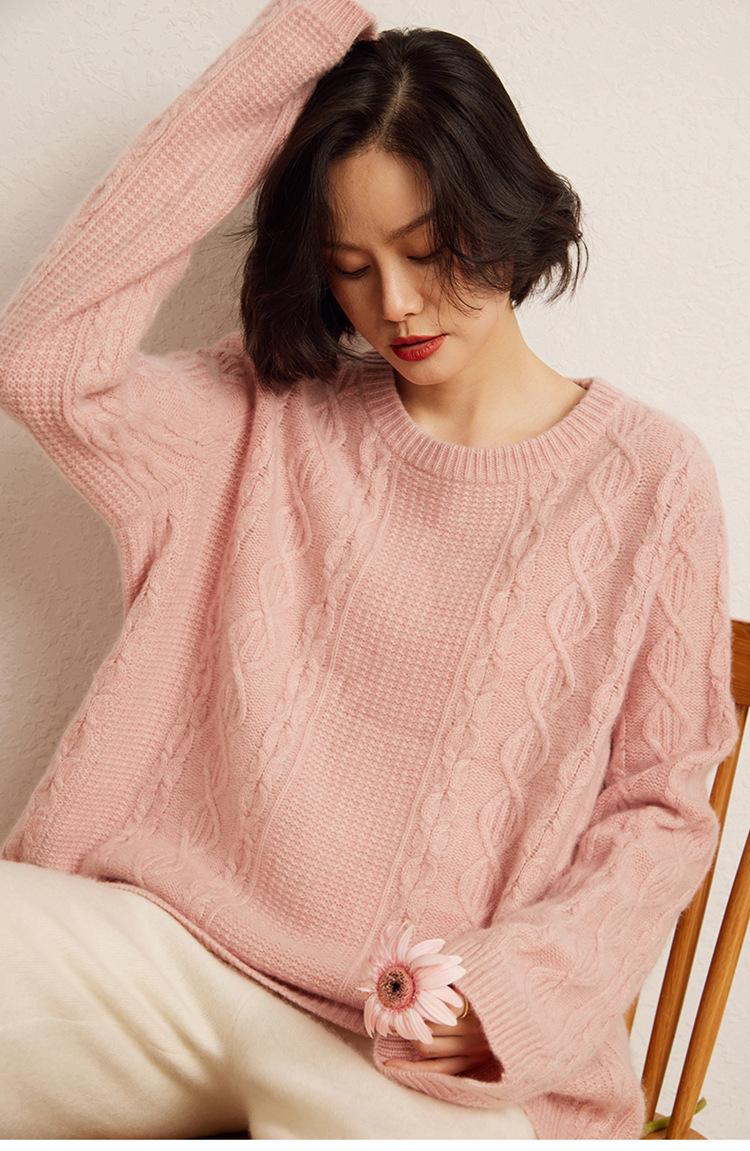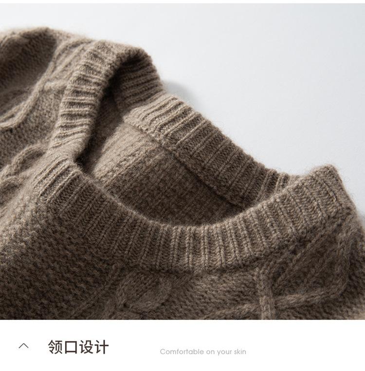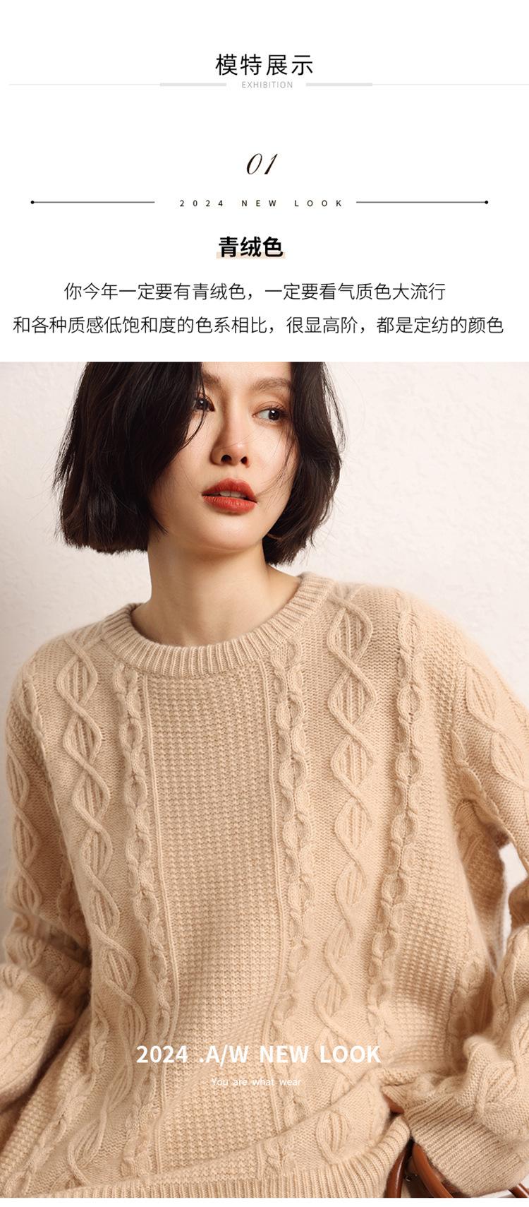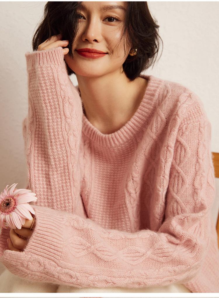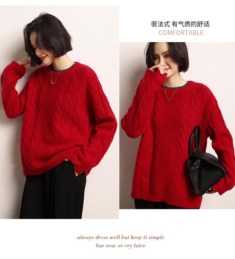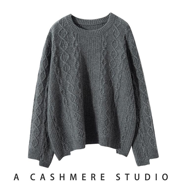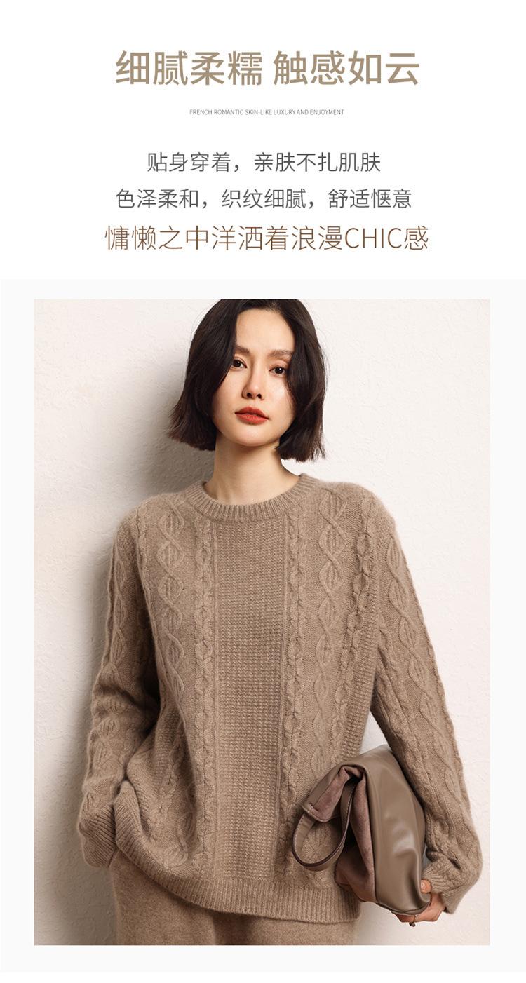 Cachemira 2025 Otoño e Invierno Nuevo Suéter de Punto de Fondo de Cable de Cuerpo Entero Estilo Holgazán Engrosado de Cuello Redondo Corto Suelto para Mujer