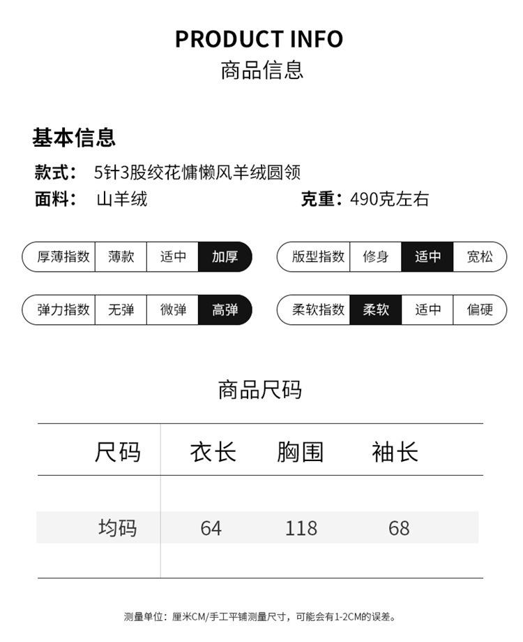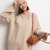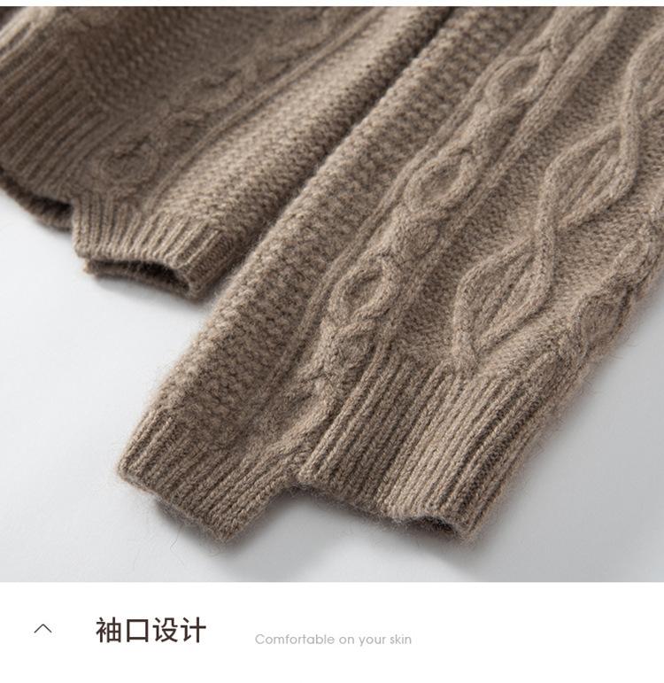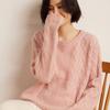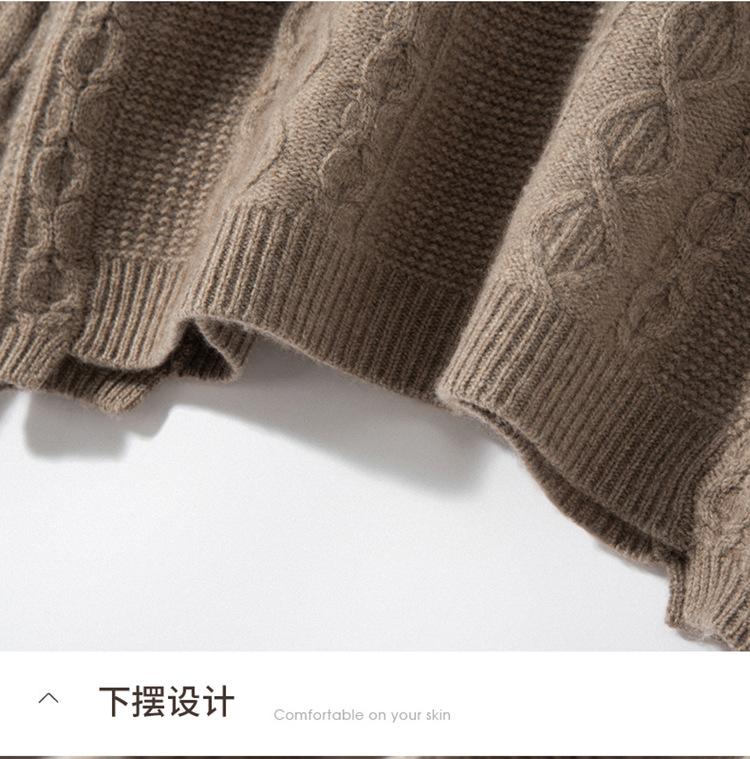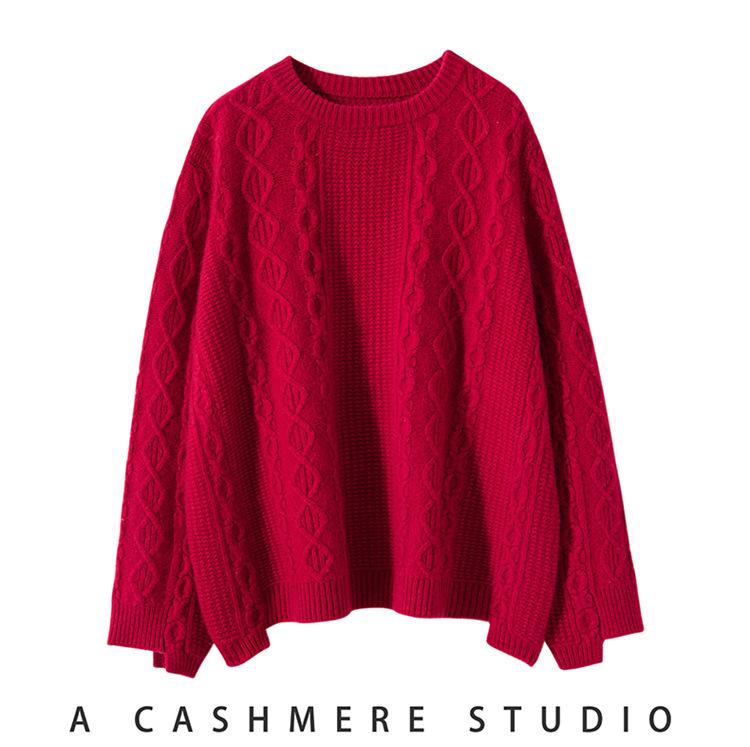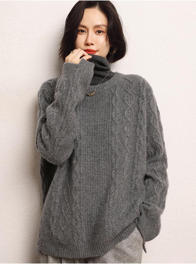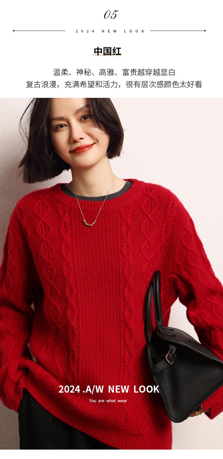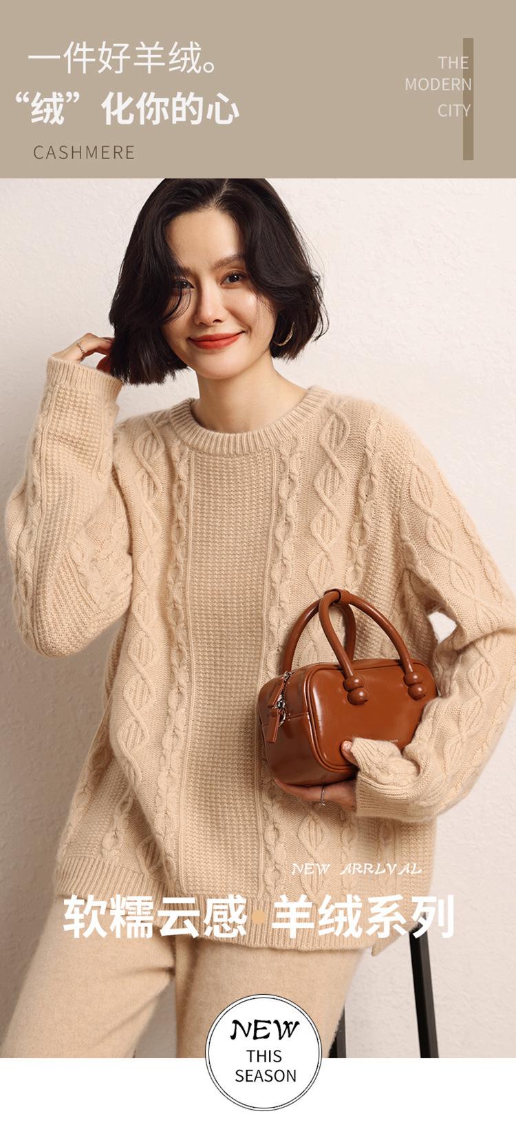 Cachemira 2025 Otoño e Invierno Nuevo Suéter de Punto de Fondo de Cable de Cuerpo Entero Estilo Holgazán Engrosado de Cuello Redondo Corto Suelto para Mujer