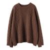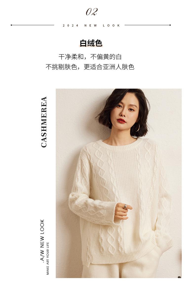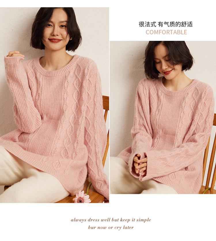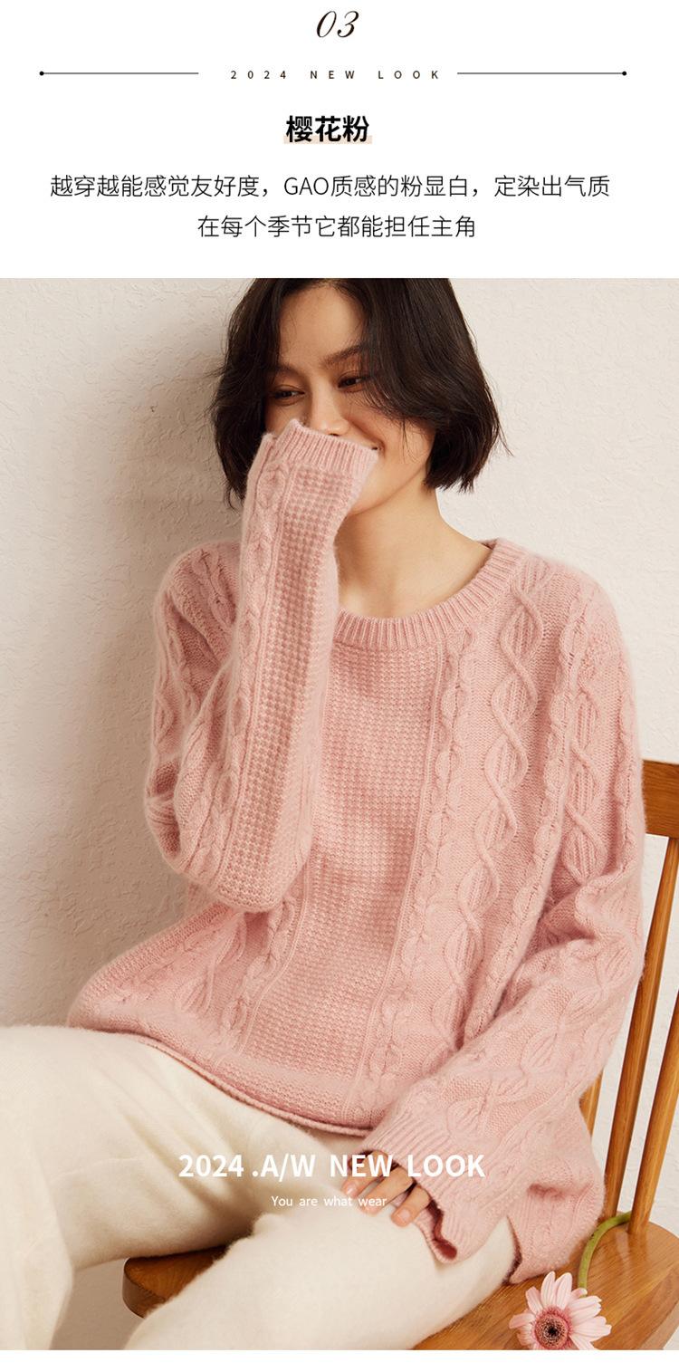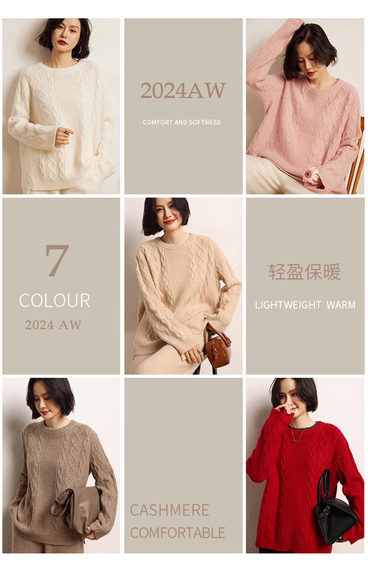 Suéter de punto con parte inferior retorcida de cuerpo completo estilo holgado y grueso con cuello redondo corto de cachemira otoño e invierno 2024 para mujer