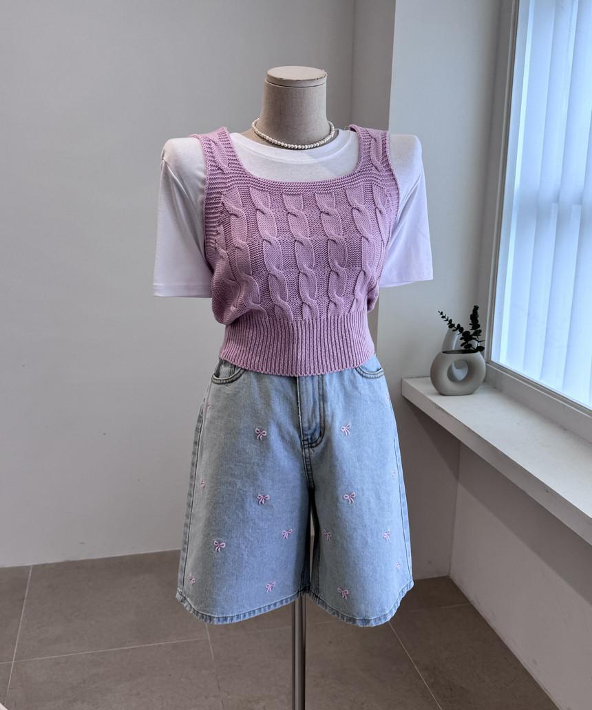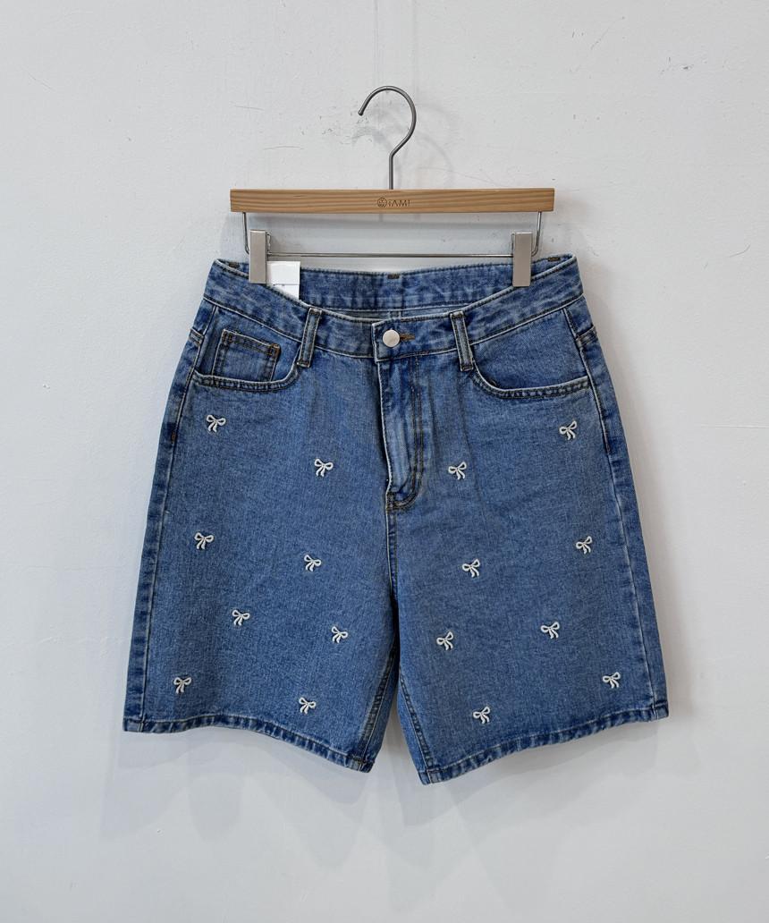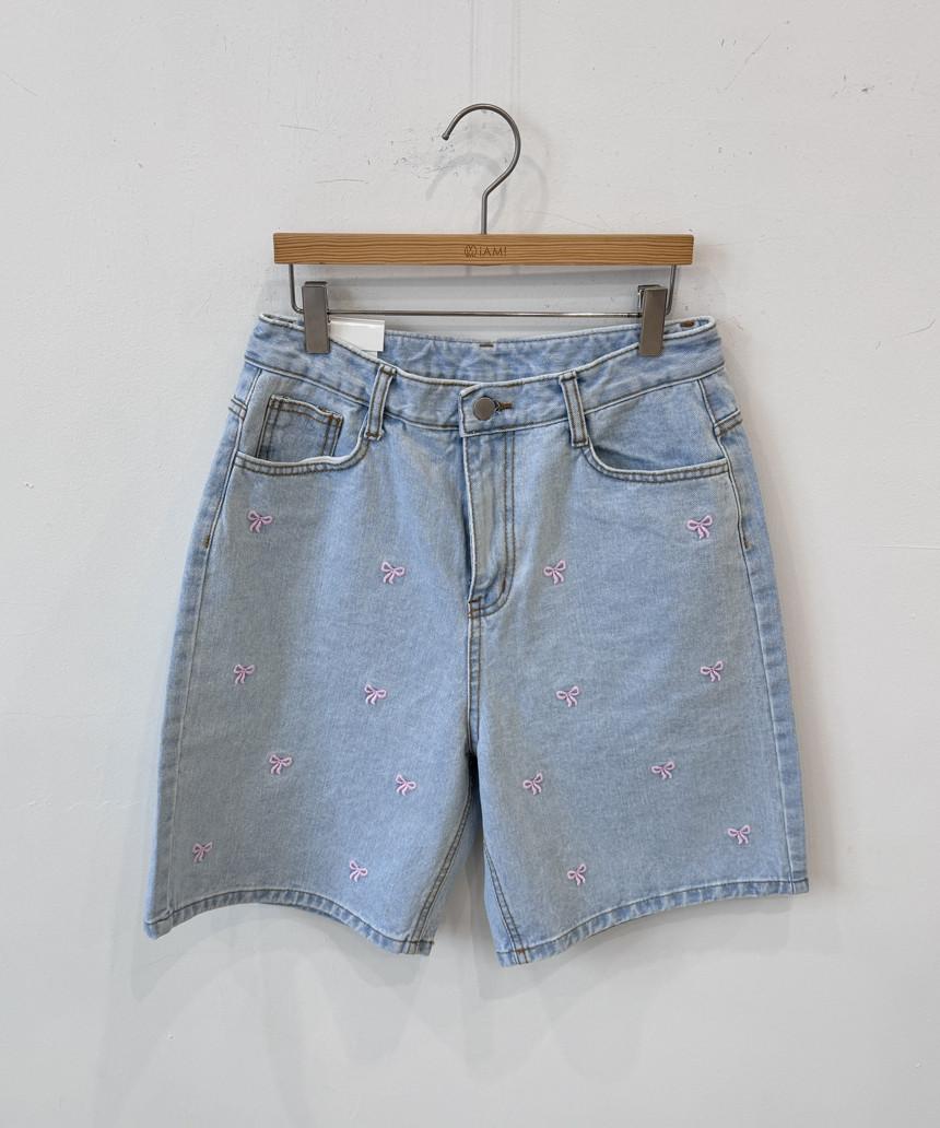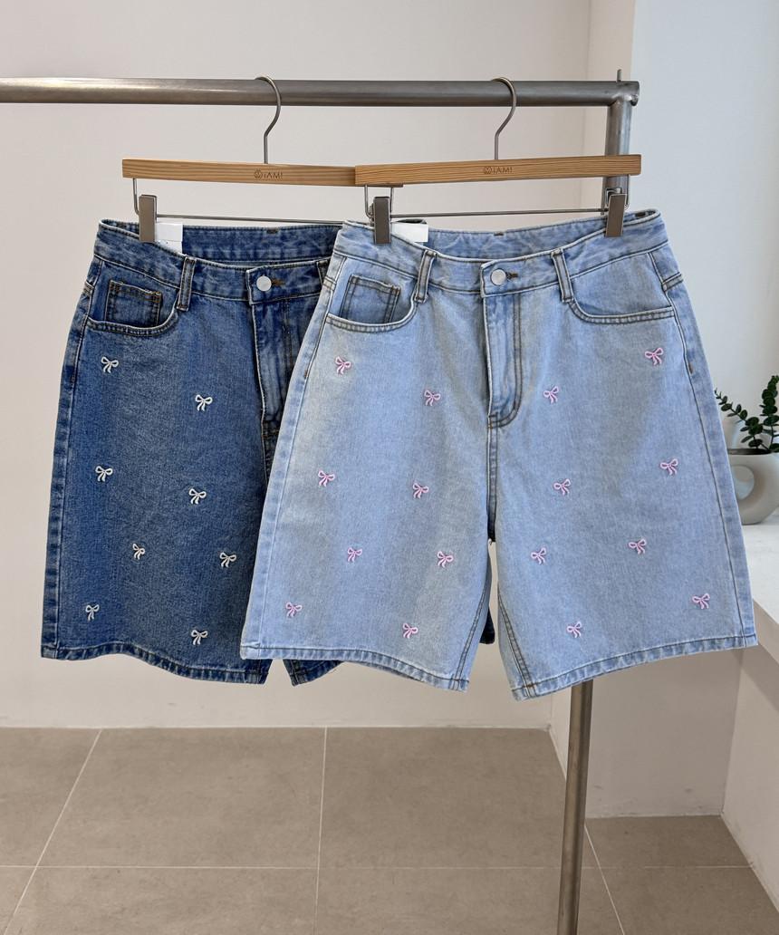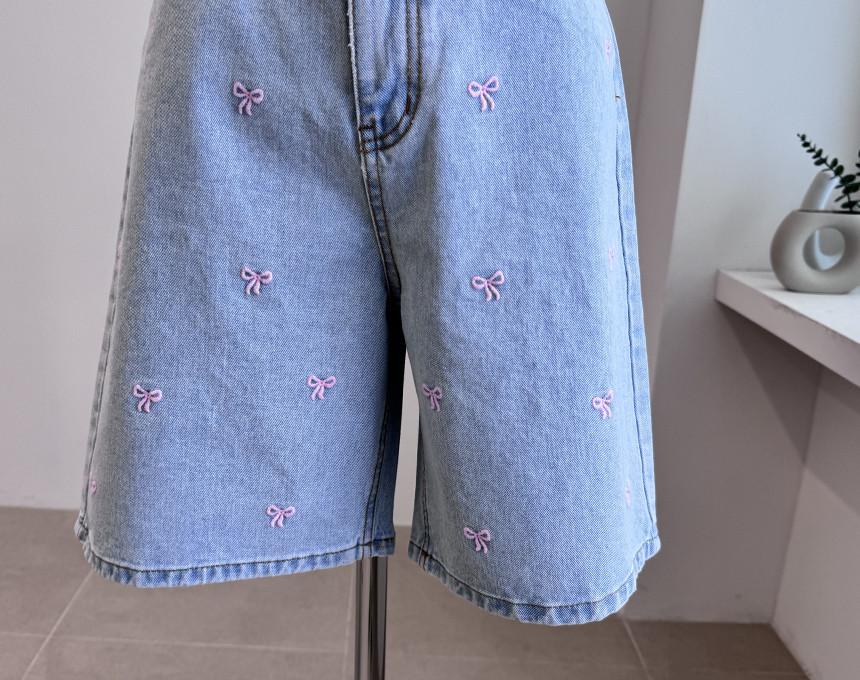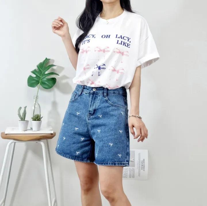 Shorts de Mezclilla Casuales Simples de Verano para Mujer Coreana Dongdaemun de Alta Calidad Bordados con Lazo