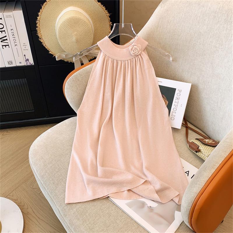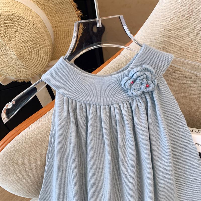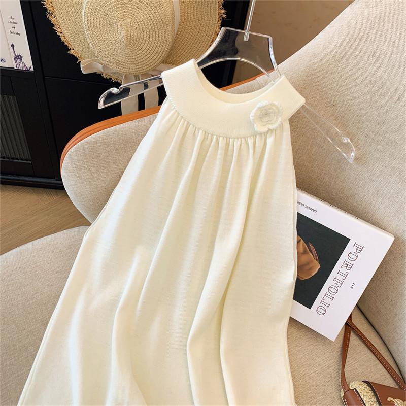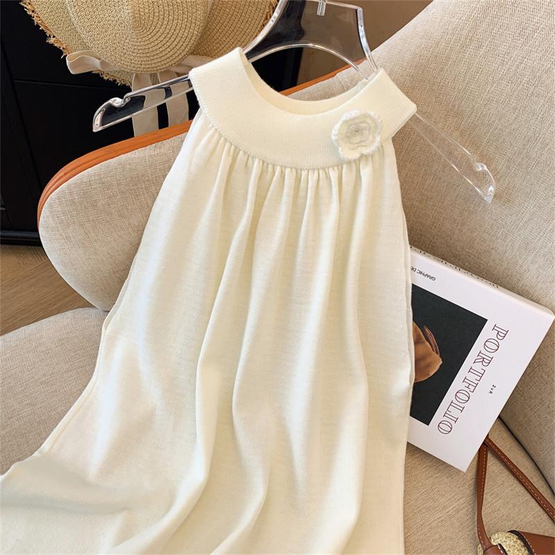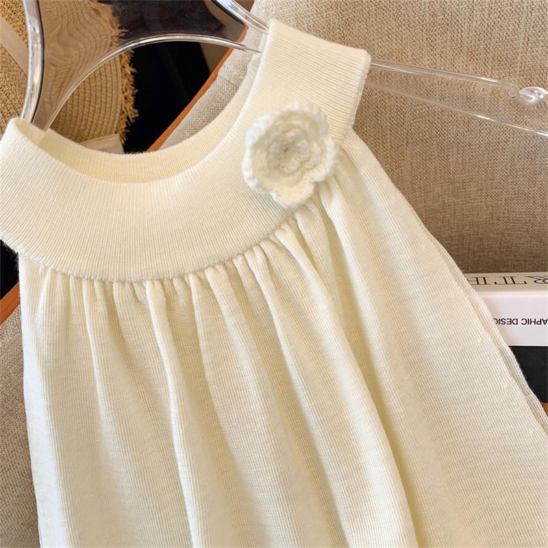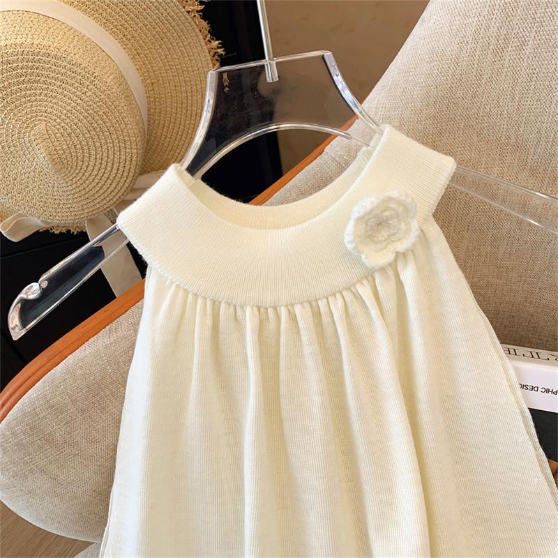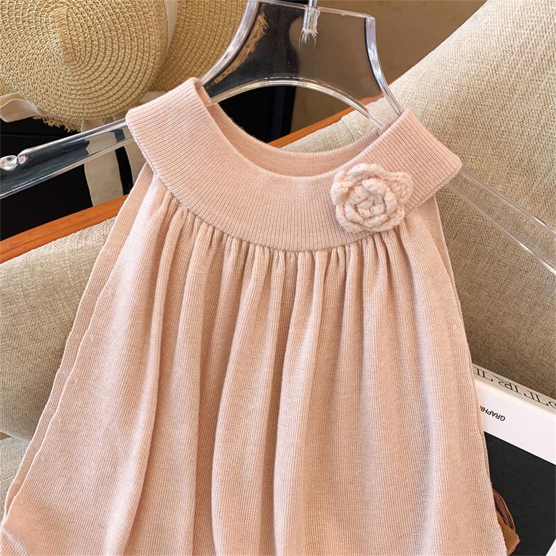 Sentido del Diseño Flor Tridimensional Sin Mangas Cuello Chaleco Tejido para Mujer Verano Nuevo Holgado Casual Conjunto Hombro Top