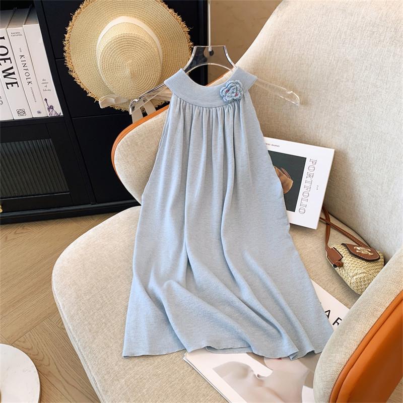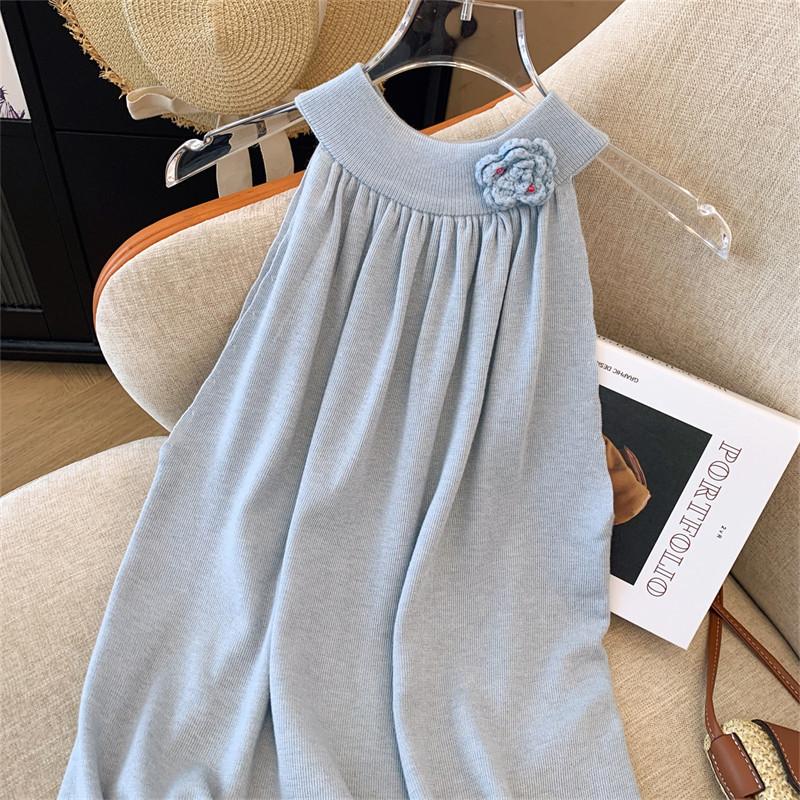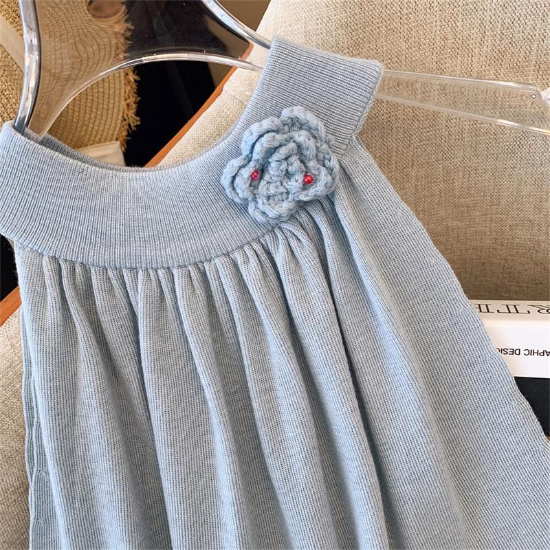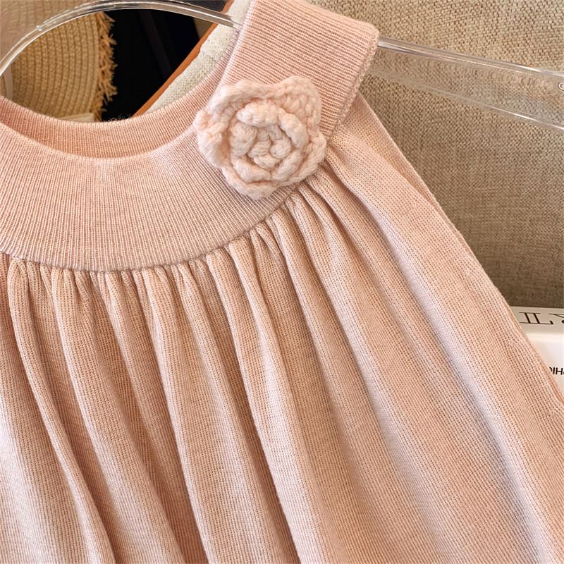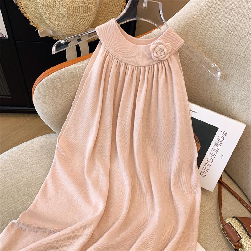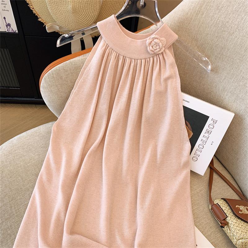 Sentido del Diseño Flor Tridimensional Sin Mangas Cuello Chaleco Tejido para Mujer Verano Nuevo Holgado Casual Conjunto Hombro Top