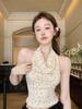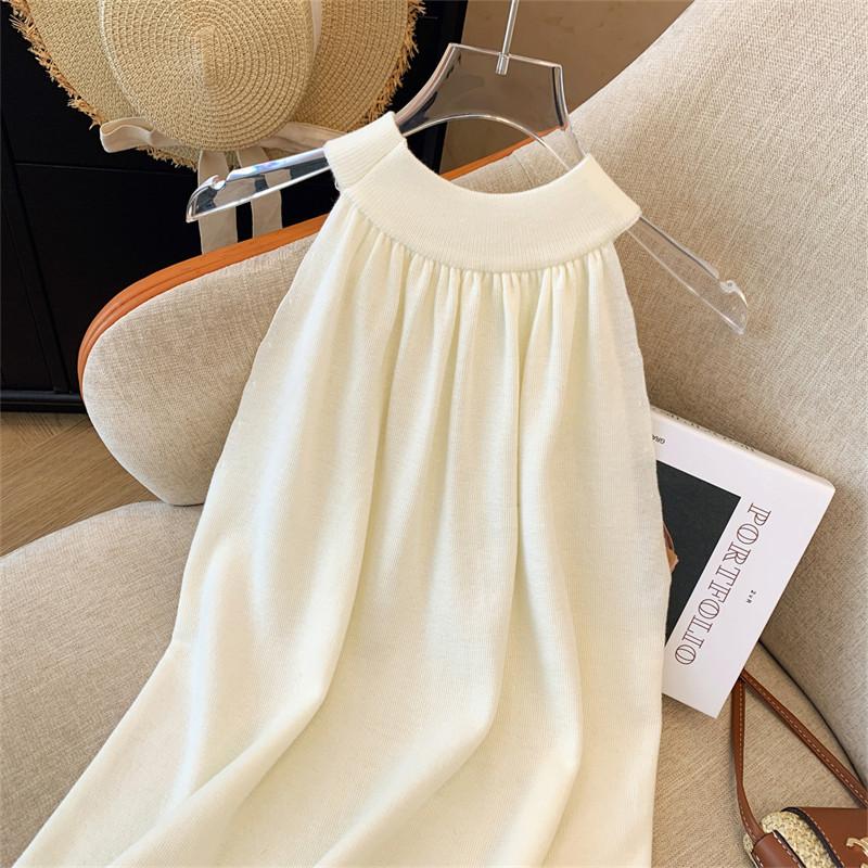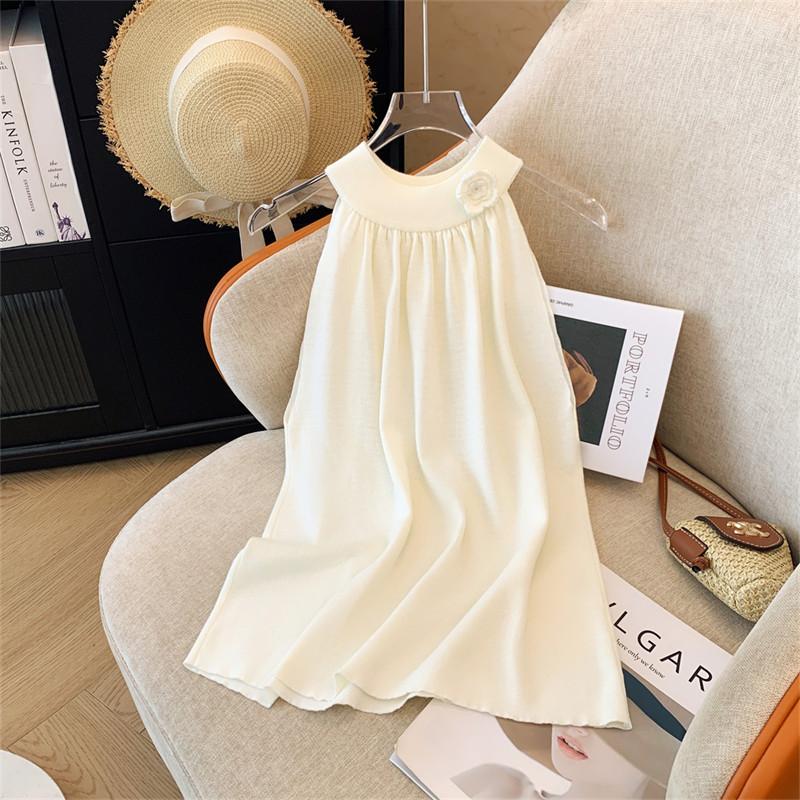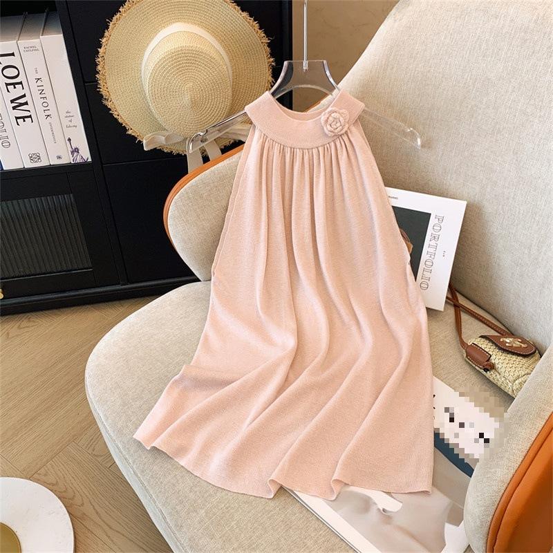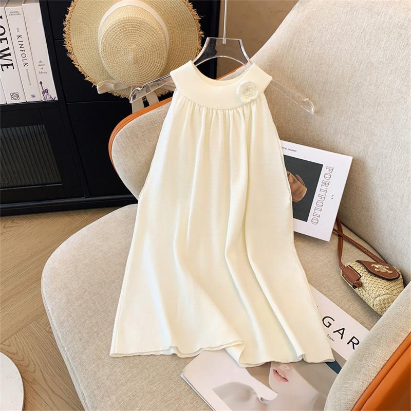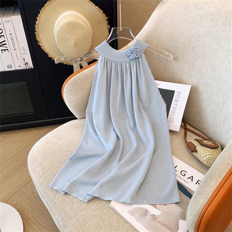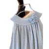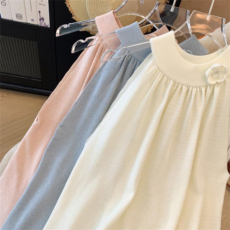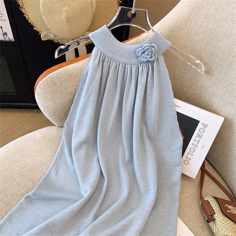 Sentido del Diseño Flor Tridimensional Sin Mangas Cuello Chaleco Tejido para Mujer Verano Nuevo Holgado Casual Conjunto Hombro Top