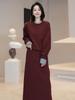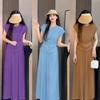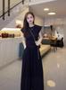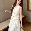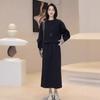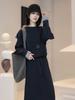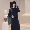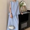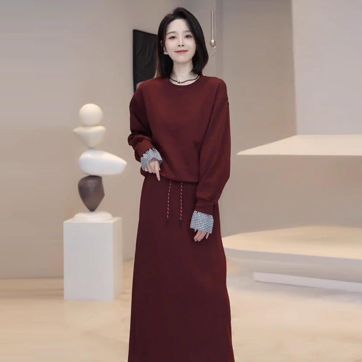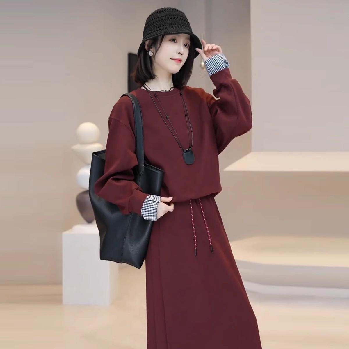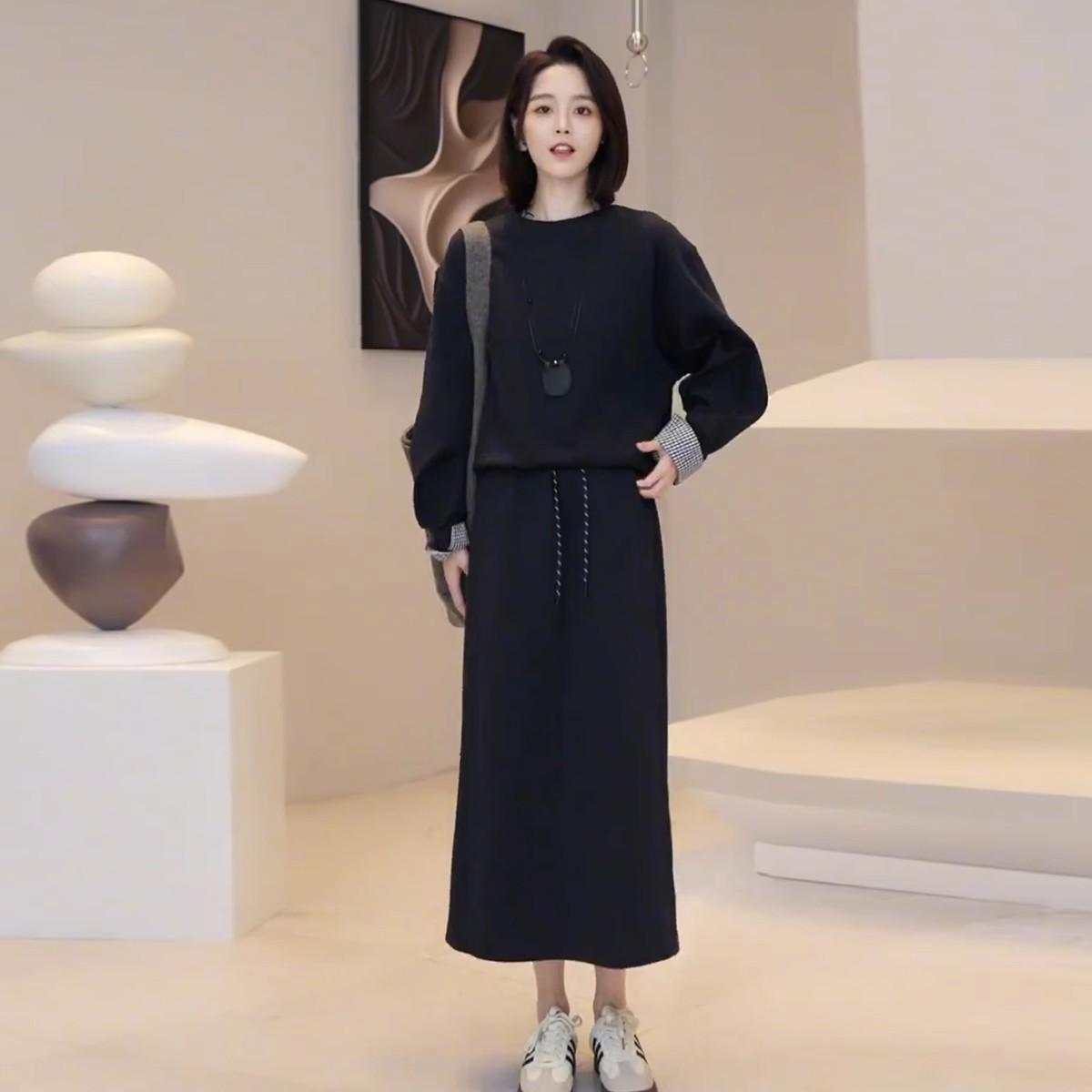 Cintura Alta Adelgazante Estilo Casual Pequeño Recién Llegado Costuras Azul Xizang Estilo Occidental Cuello Redondo Falda Línea A Conjunto de Dos Piezas para Mujer
