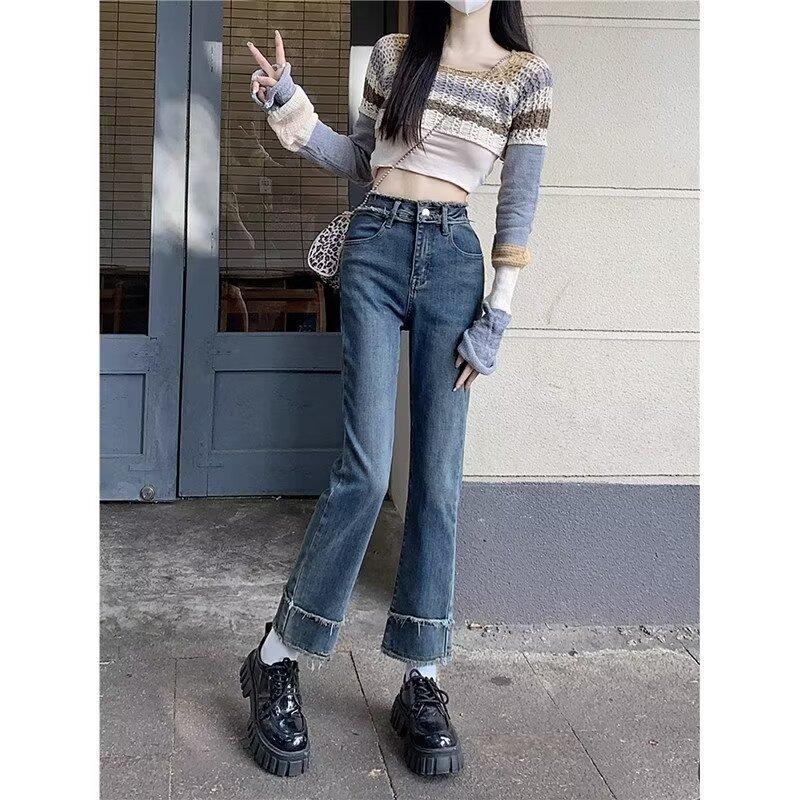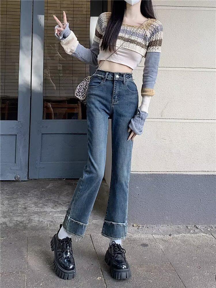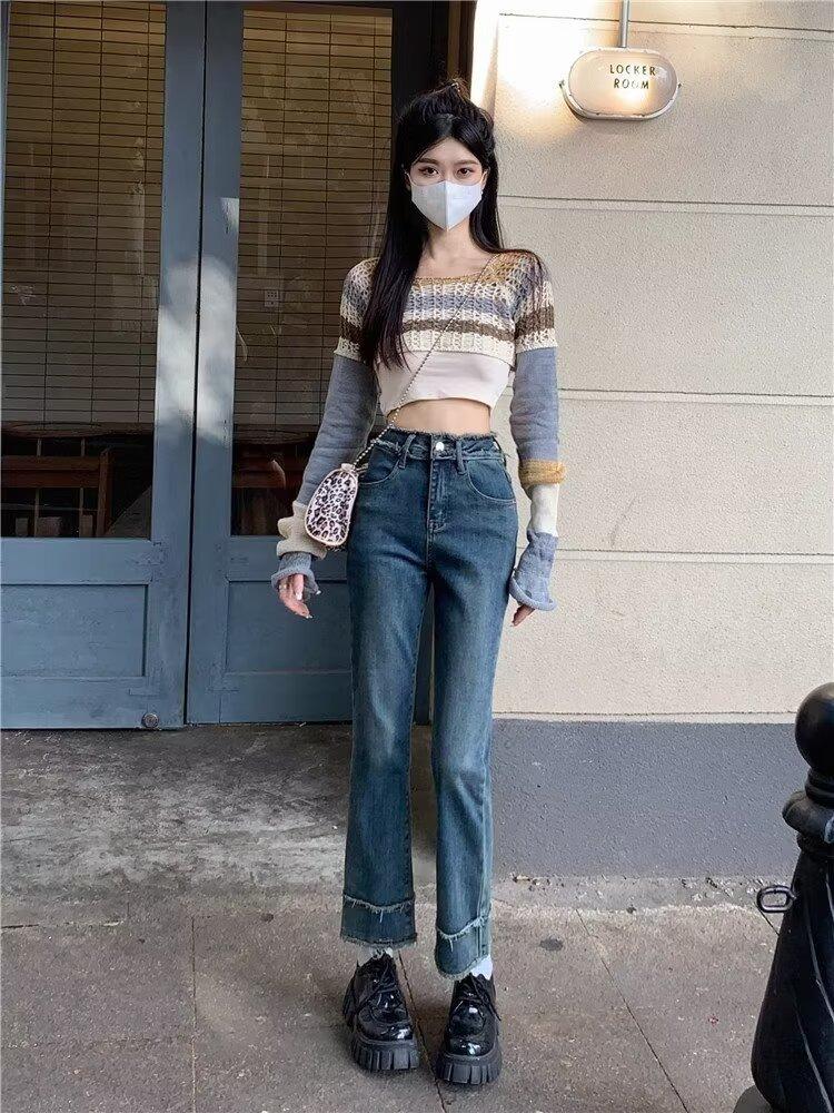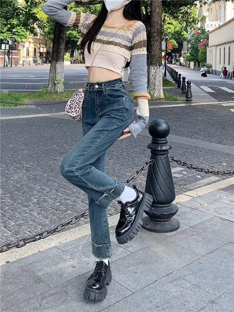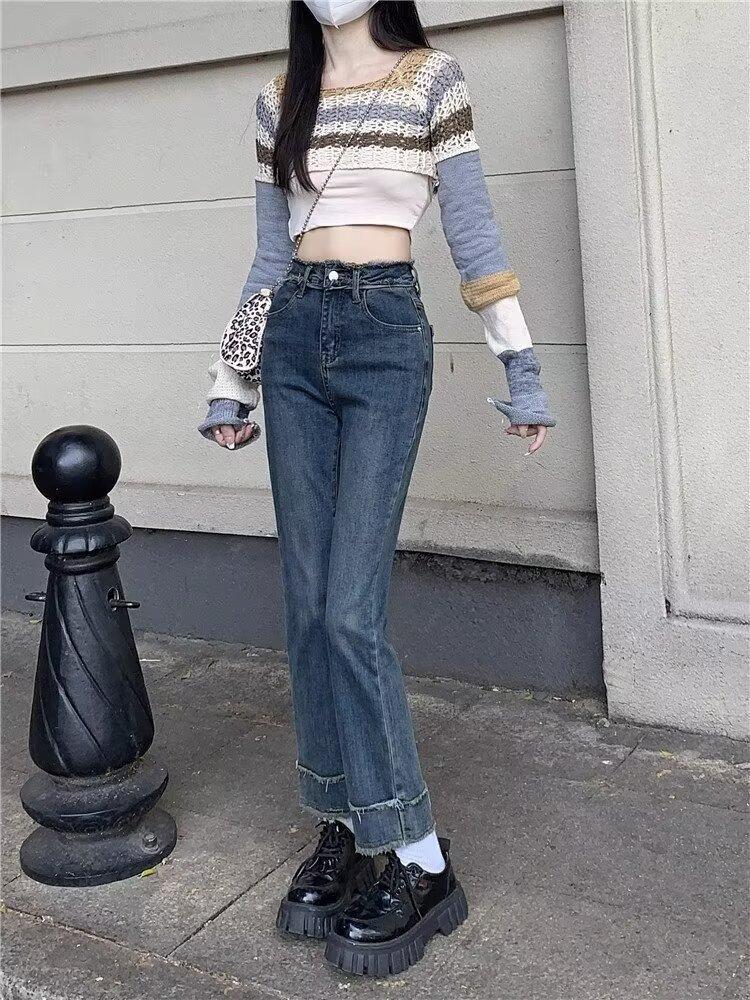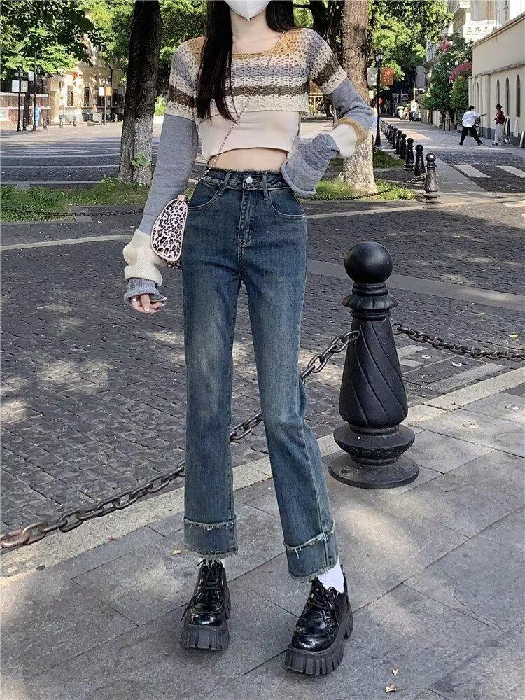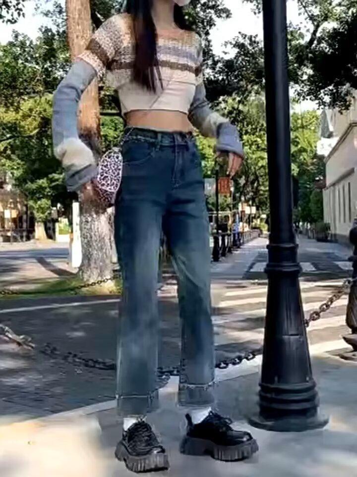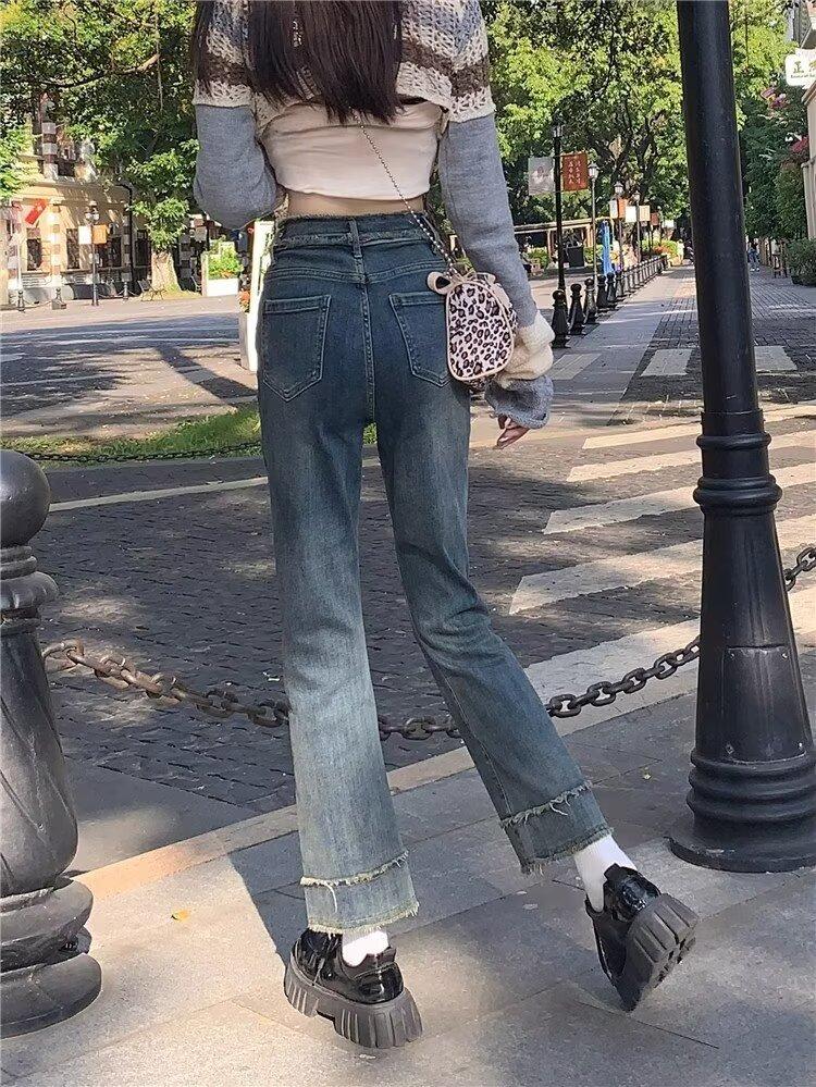 Vaqueros rectos microelásticos adelgazantes para mujer, holgados, estilo americano, estilo retro, informales, de calle, 2024