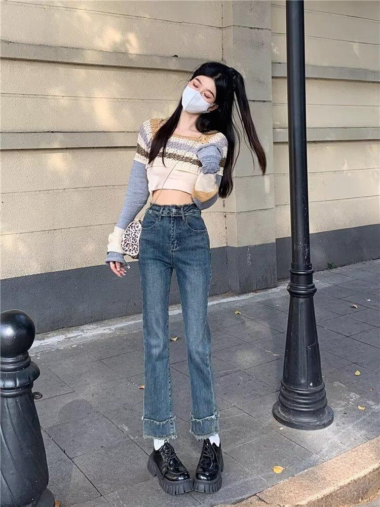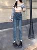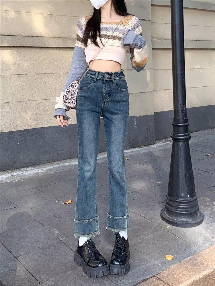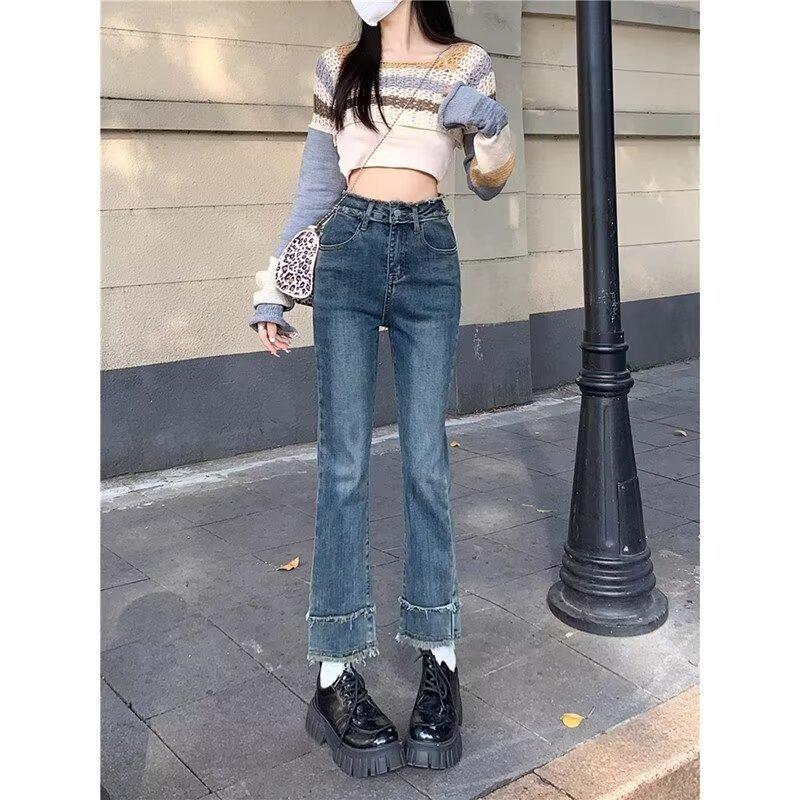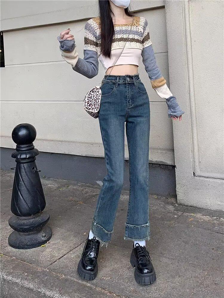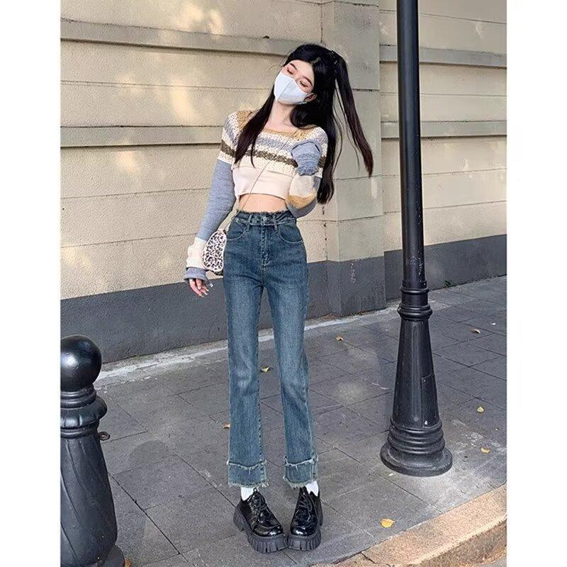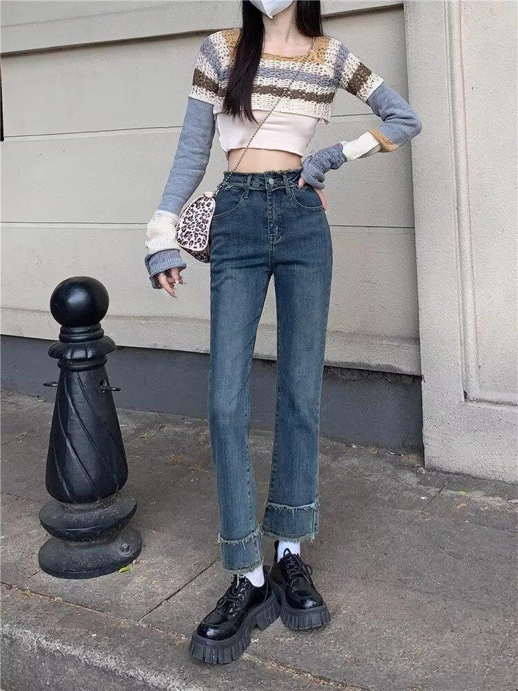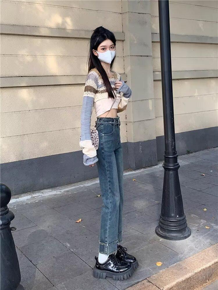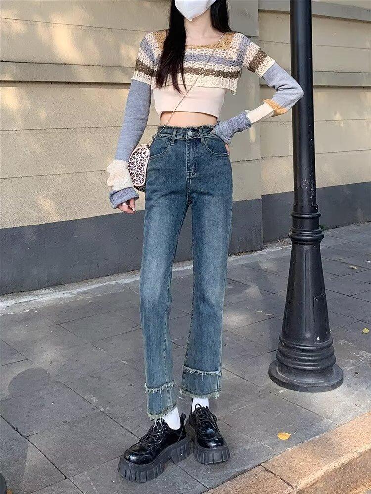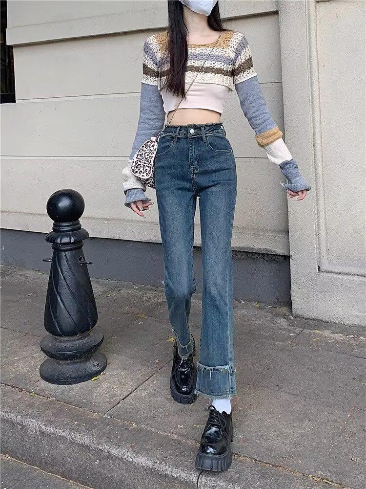 Vaqueros rectos microelásticos adelgazantes para mujer, holgados, estilo americano, estilo retro, informales, de calle, 2024