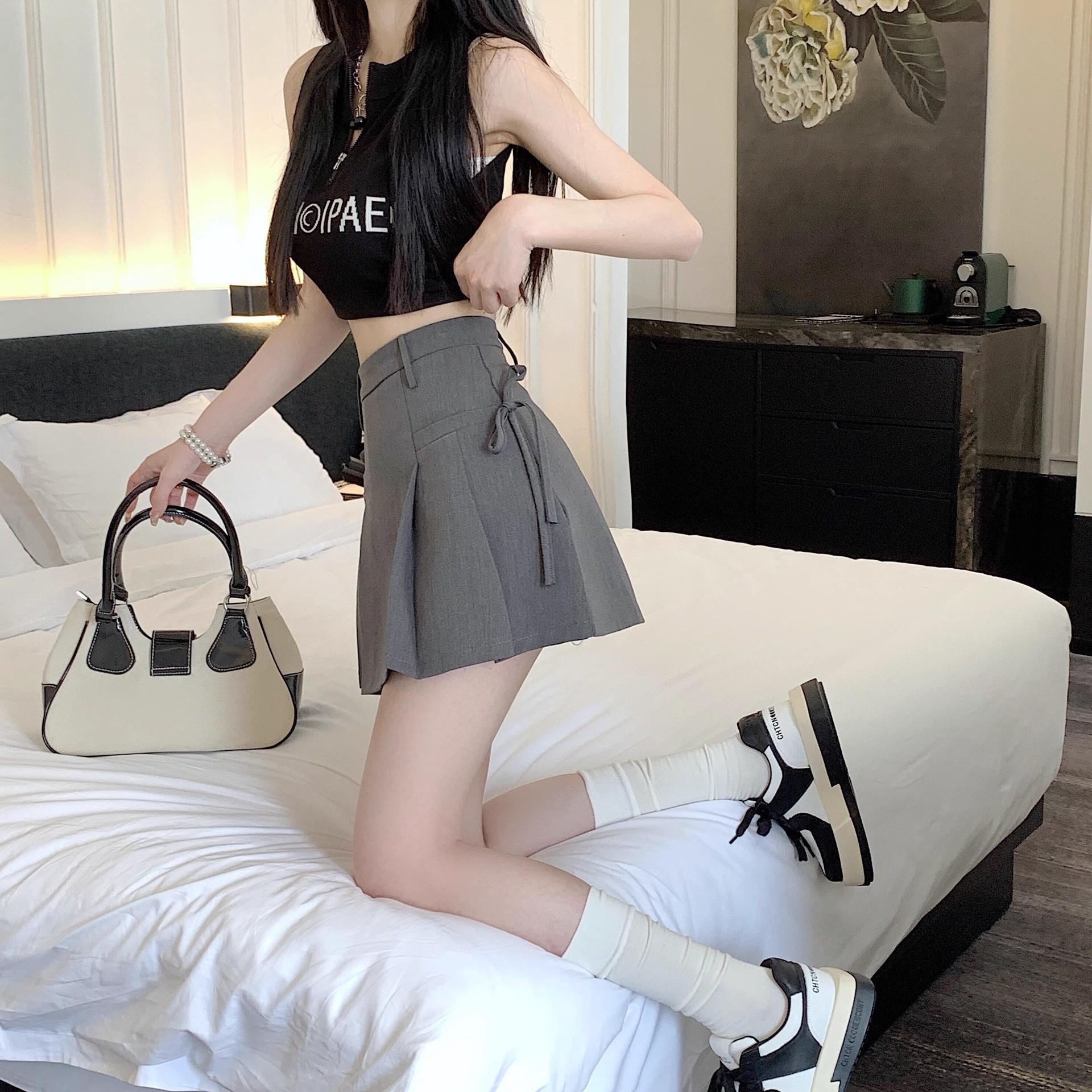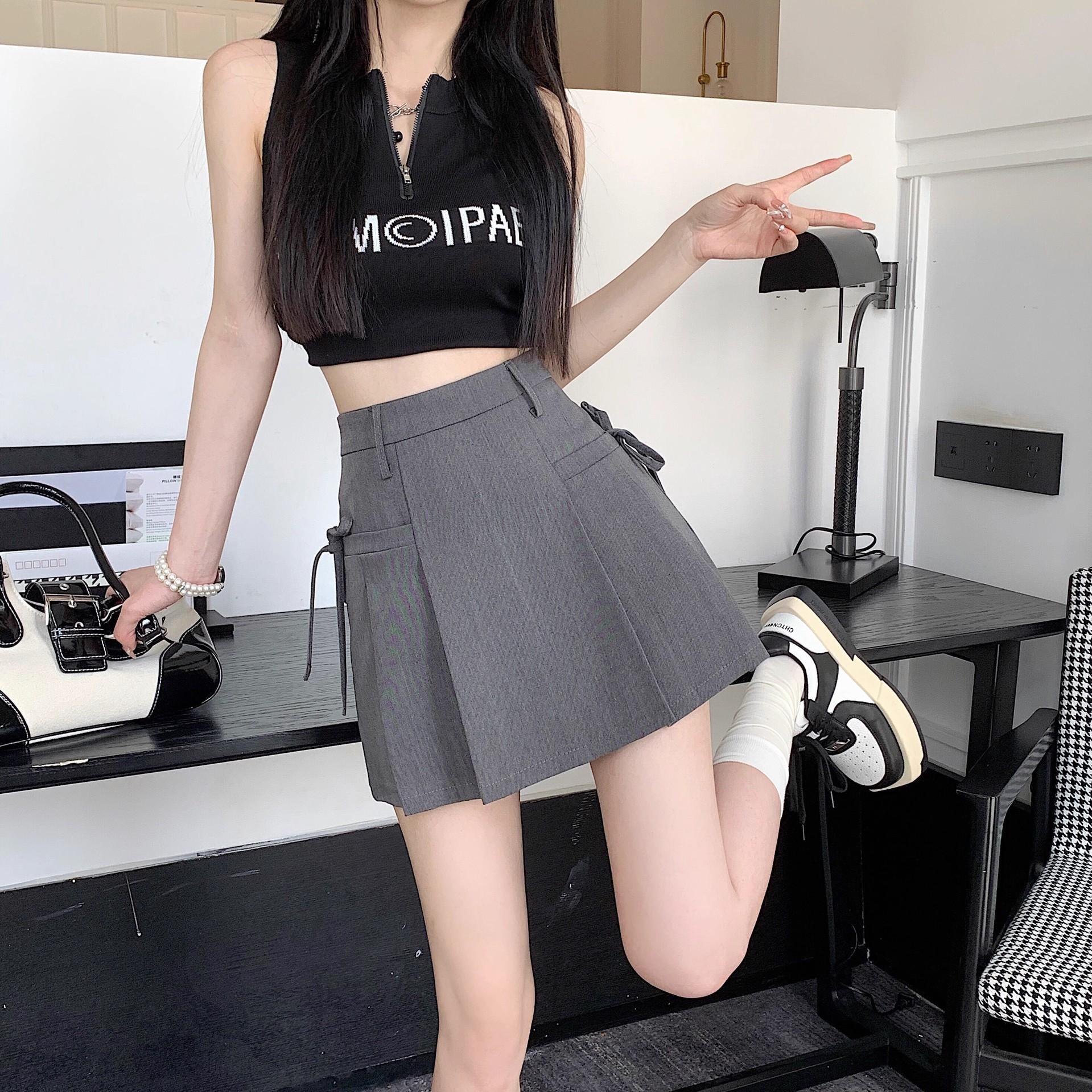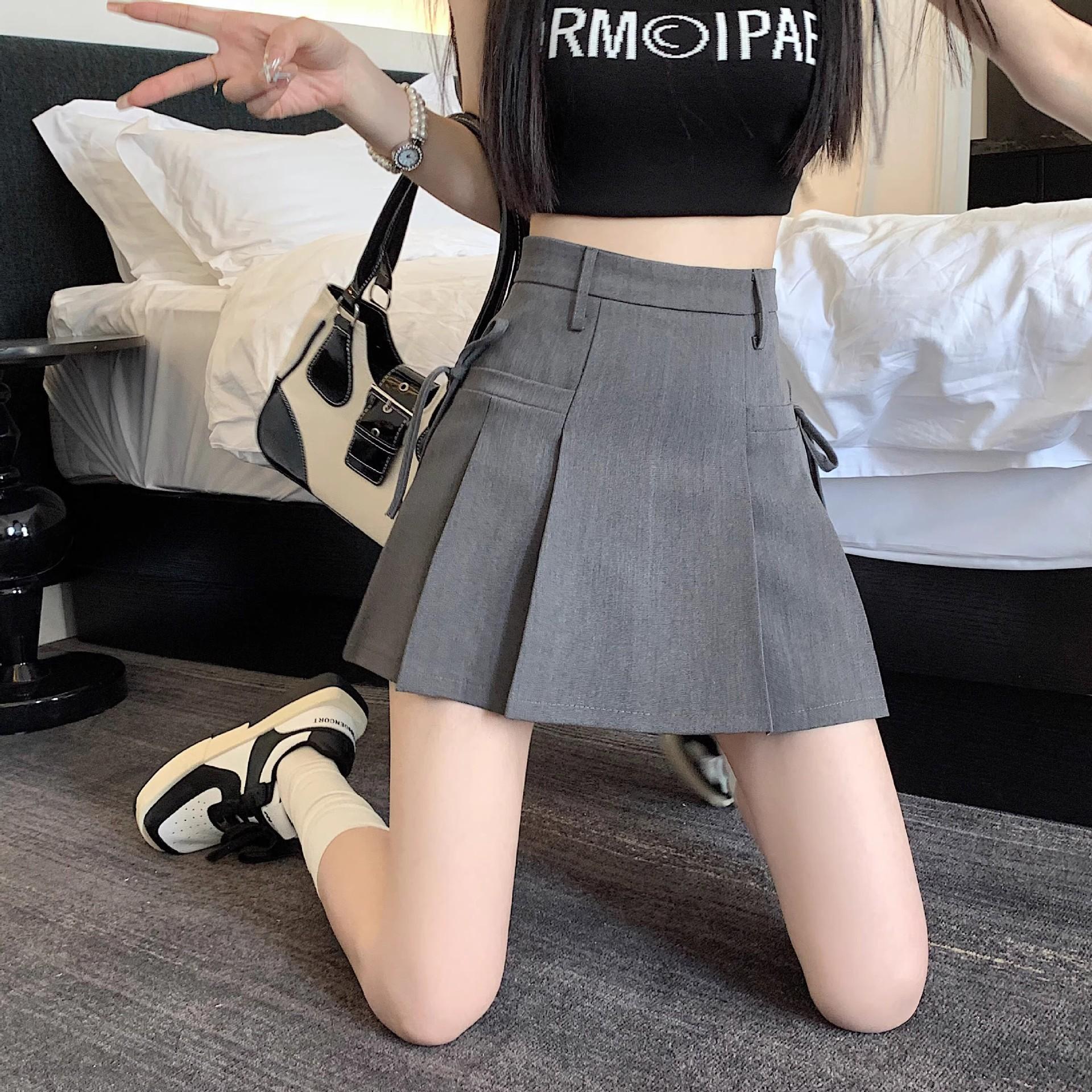 Falda irregular gris de verano 2024, nueva llegada, para mujer, de cintura alta, a la moda, adelgazante, plisada, corta, de corte A
