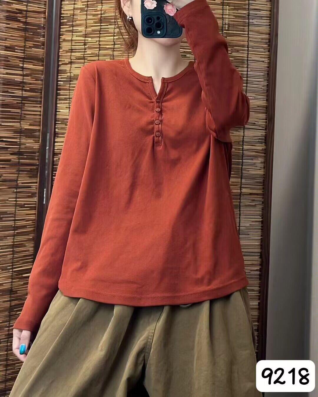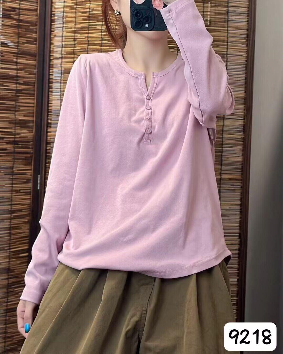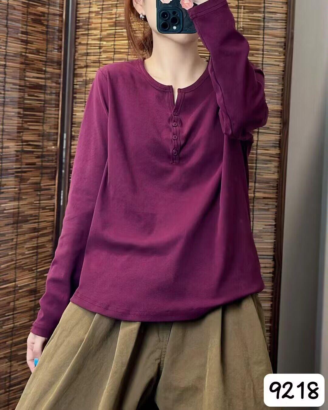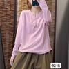 Camiseta de manga larga de color liso para mujer, otoño 2024, estilo coreano sencillo, combinable, holgada, con diseño de nicho, 9218