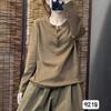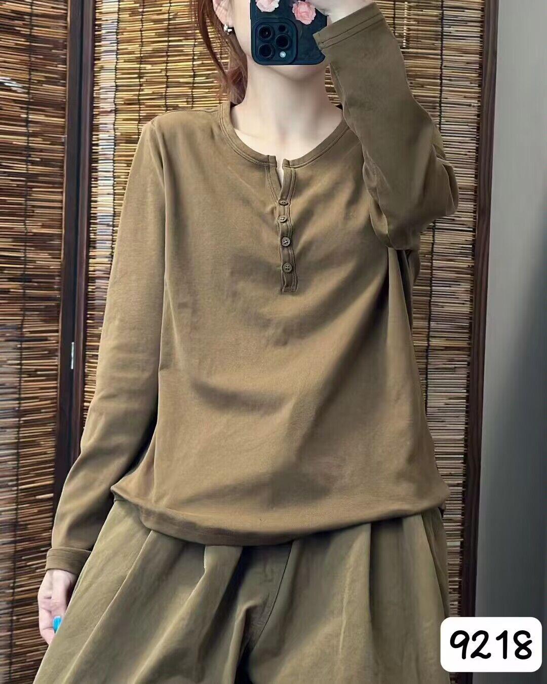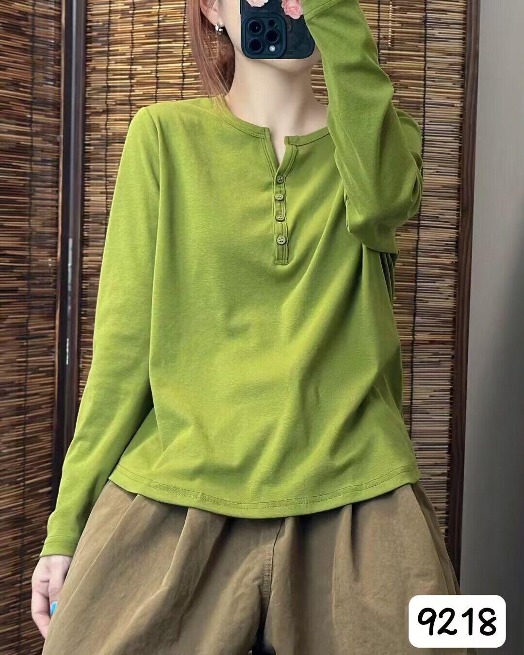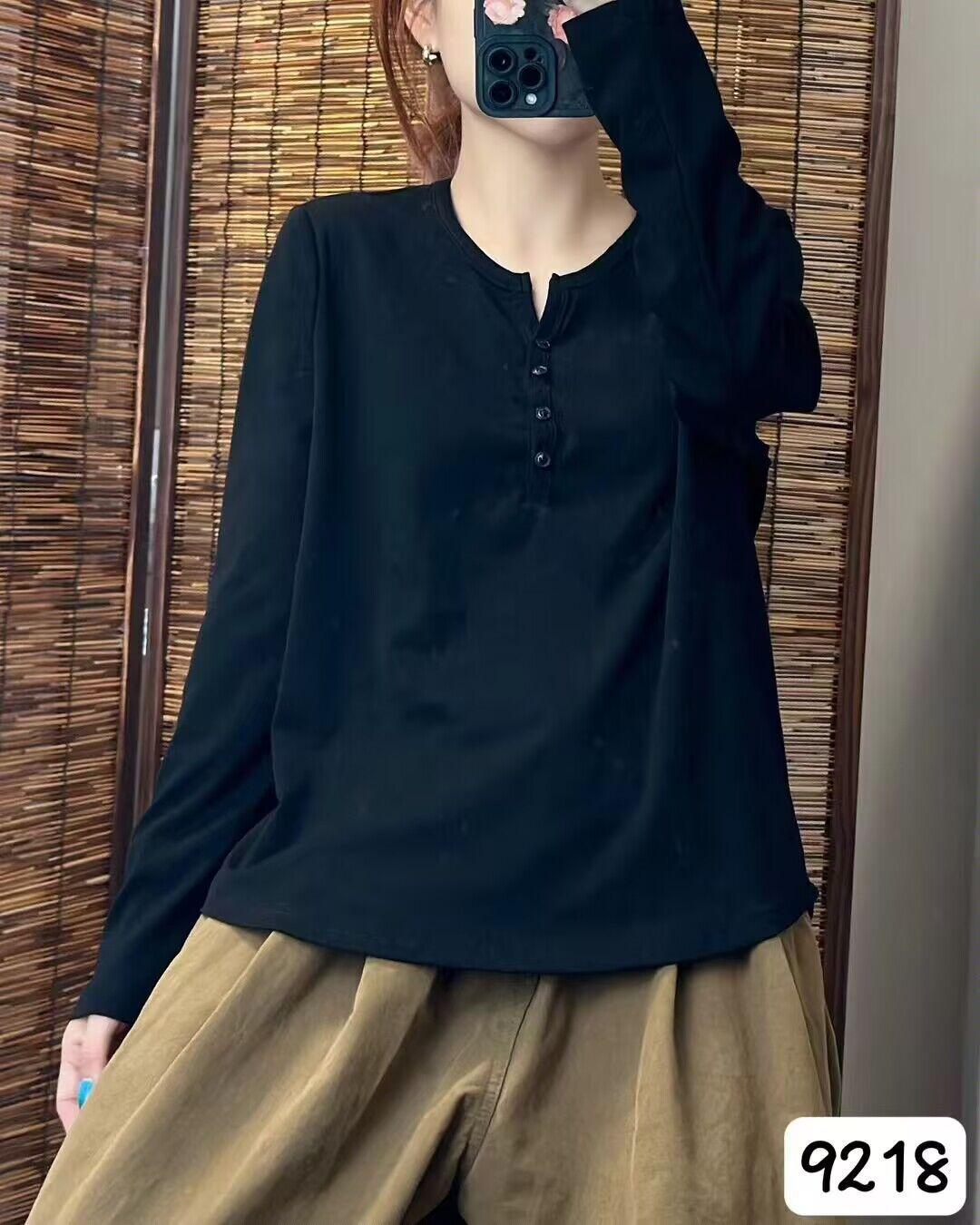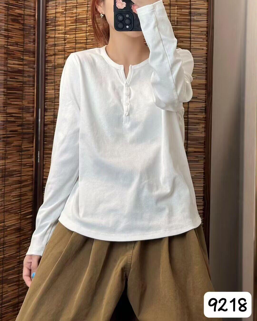 Camiseta de manga larga de color liso para mujer, otoño 2024, estilo coreano sencillo, combinable, holgada, con diseño de nicho, 9218