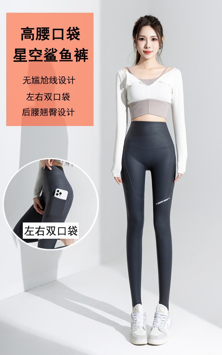 Pantalones de Tiburón Cielo Estrellado para Mujer Primavera y Otoño Cintura Alta Control de Abdomen Doble Bolsillo Pantalones de Yoga Talla Grande Nueve Puntos Se Pueden Usar Afuera Leggings Transfronterizo
